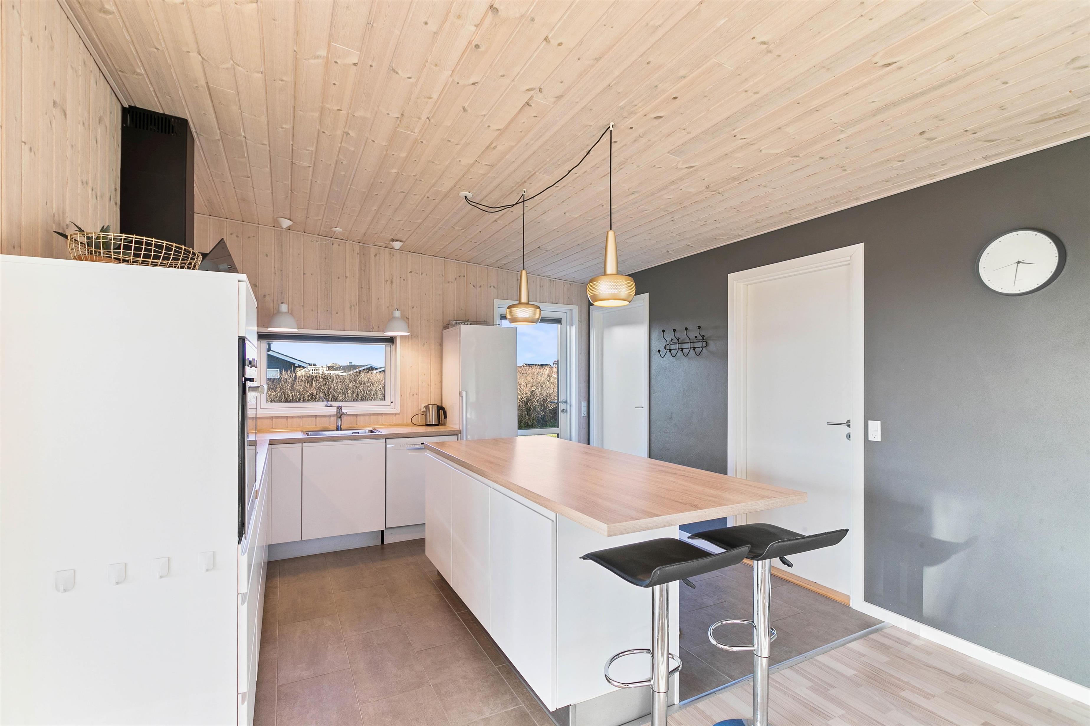 Velkommen i et lækkert og stilfuldt indrettet feriehus med den helt rigtige stemning. I det moderne hus med det lyse træværk og naturfarverne, vil I straks føle jer godt tilpas og komme i feriestemning. Her er der tænkt på det hele og ikke sparet på noget, I har både vaskemaskine og tørretumbler, og i det moderne smarte køkken koges der på induktionskomfur - opvasken klarer maskinen naturligvis.