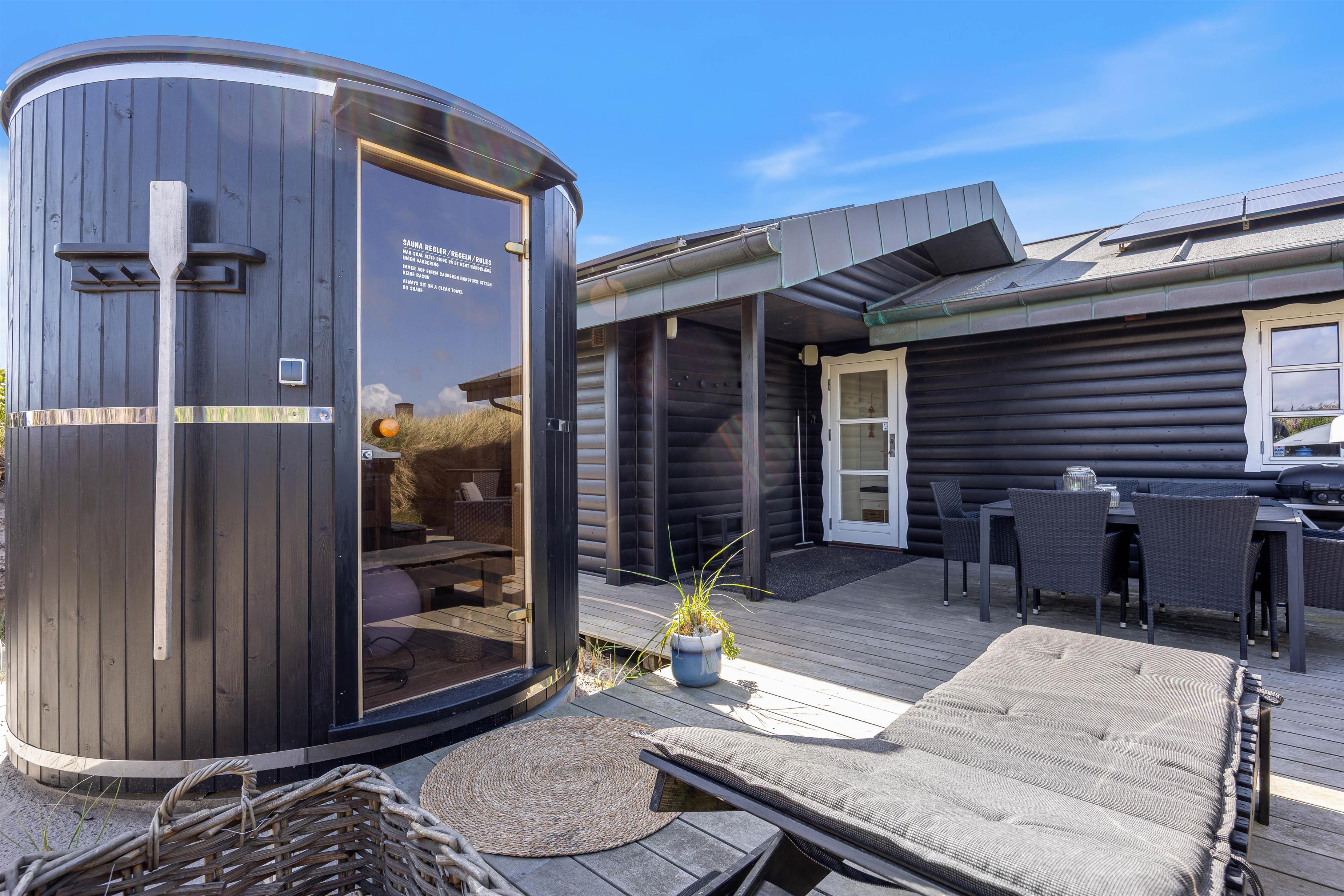Huset rummer plads til 4 personer, som alle vil kunne nyde godt af husets lækre faciliteter. Feriehuset råder blandt andet over både en udesauna og brændeovn, som kan give jer varme i kinderne på de kølige dage. Ude finder i også en praktisk udebruser, hvor i kan skylle det værste sand af kroppen efter en tur på stranden, eller efter en varm tur i saunaen.