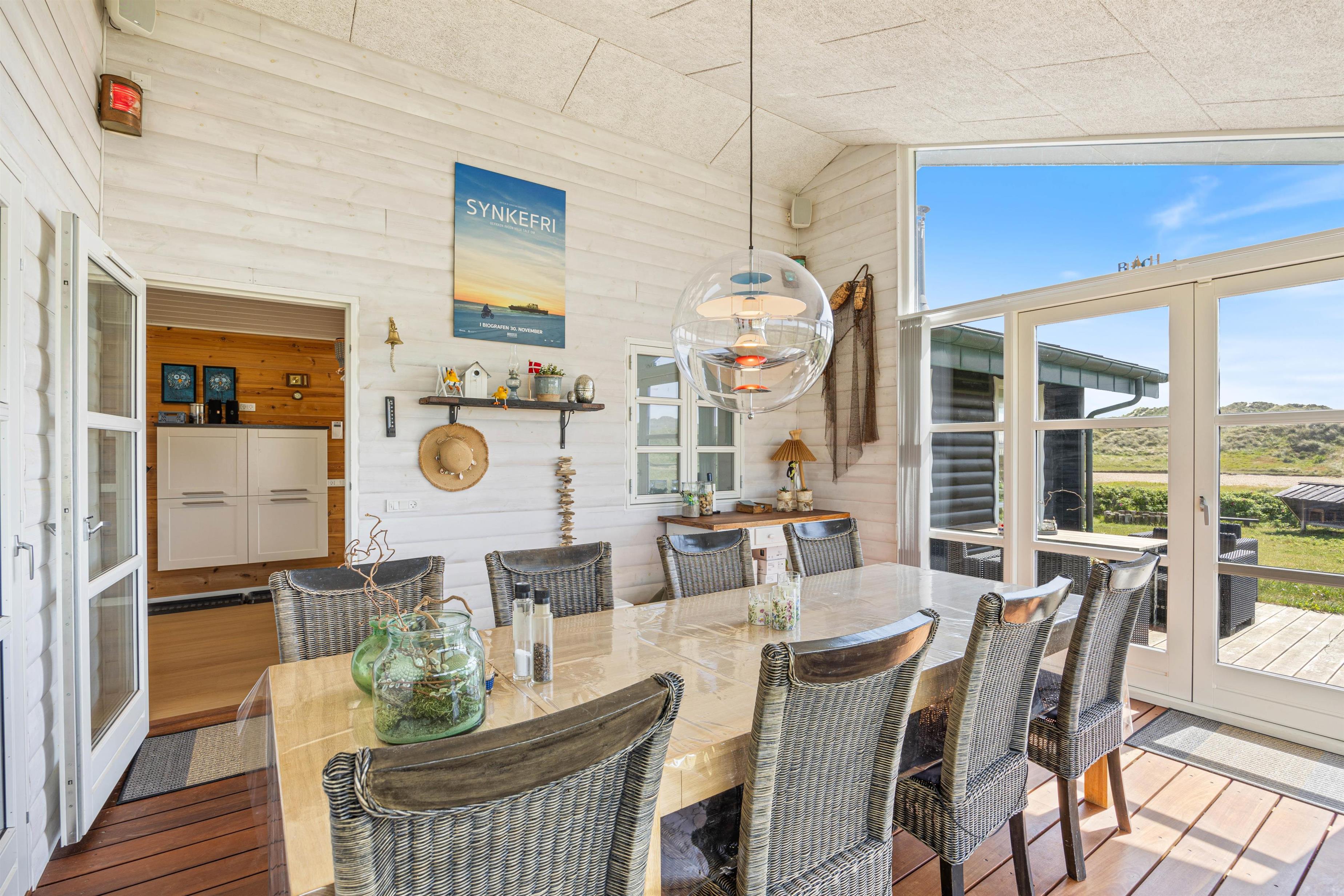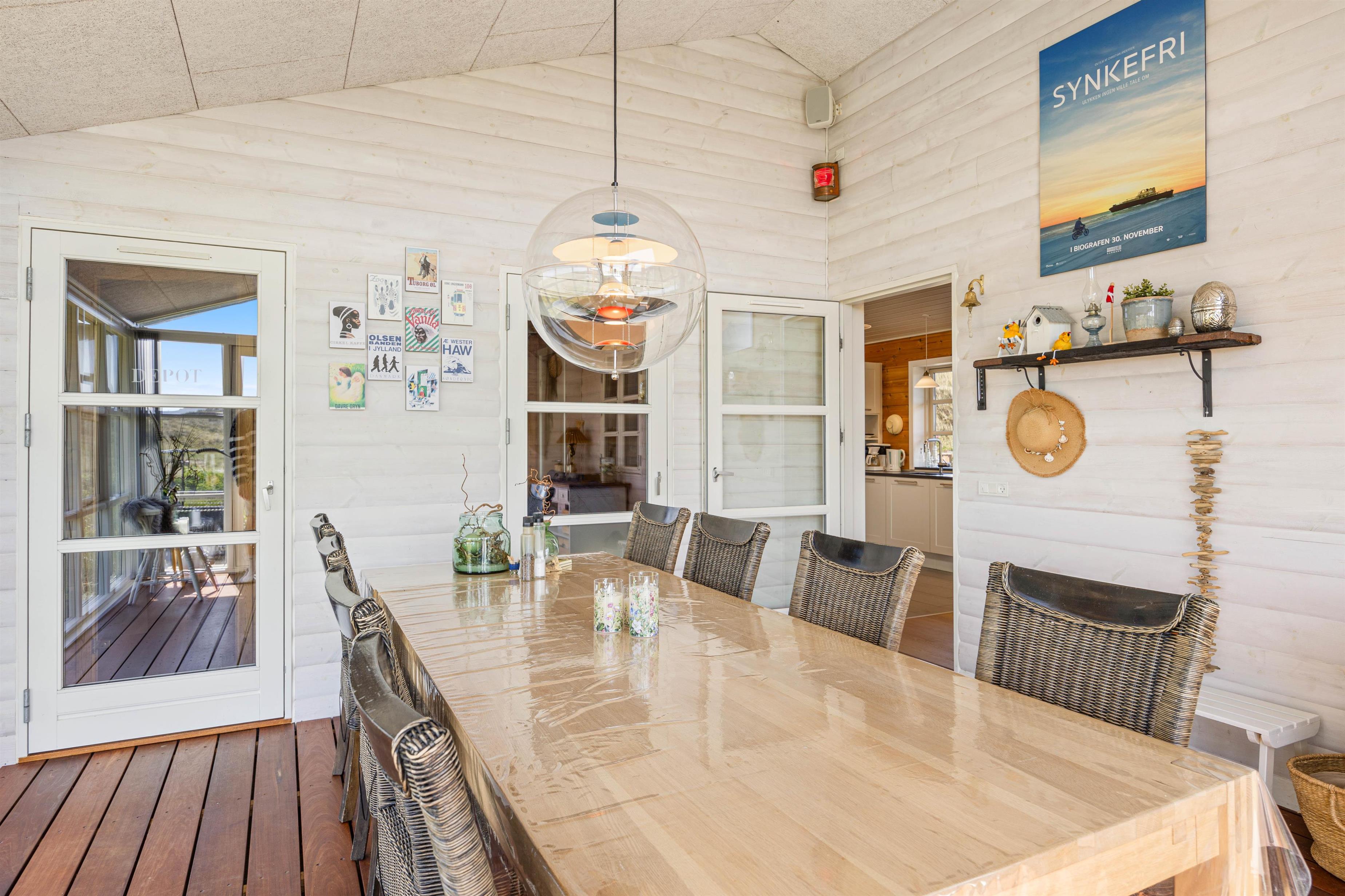 Efter en strandtur vil feriehusets terrasse helt sikkert kunne indbyde jer til afslapning. Nyd de solrige dage i liggestolene og flyt frokosten og roseéen med ud på terrassen og nyd de smukke omgivelser.