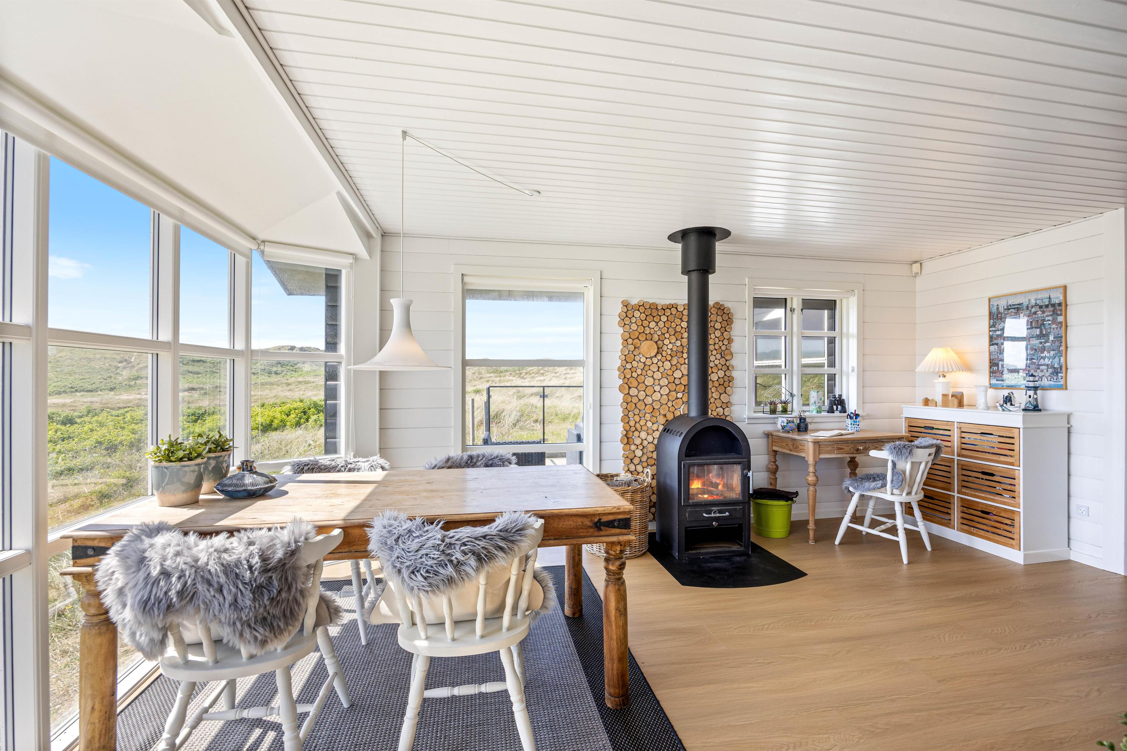 Feriehuset har en meget attraktiv placering – kun 200 meter fra stranden. Dette betyder, at I har rig mulighed for at gå ture langs strandkanten, nyde en flot solnedgang, eller bare nyde Vesterhavets brusende bølger, der uanset årstiden altid er et besøg værd.