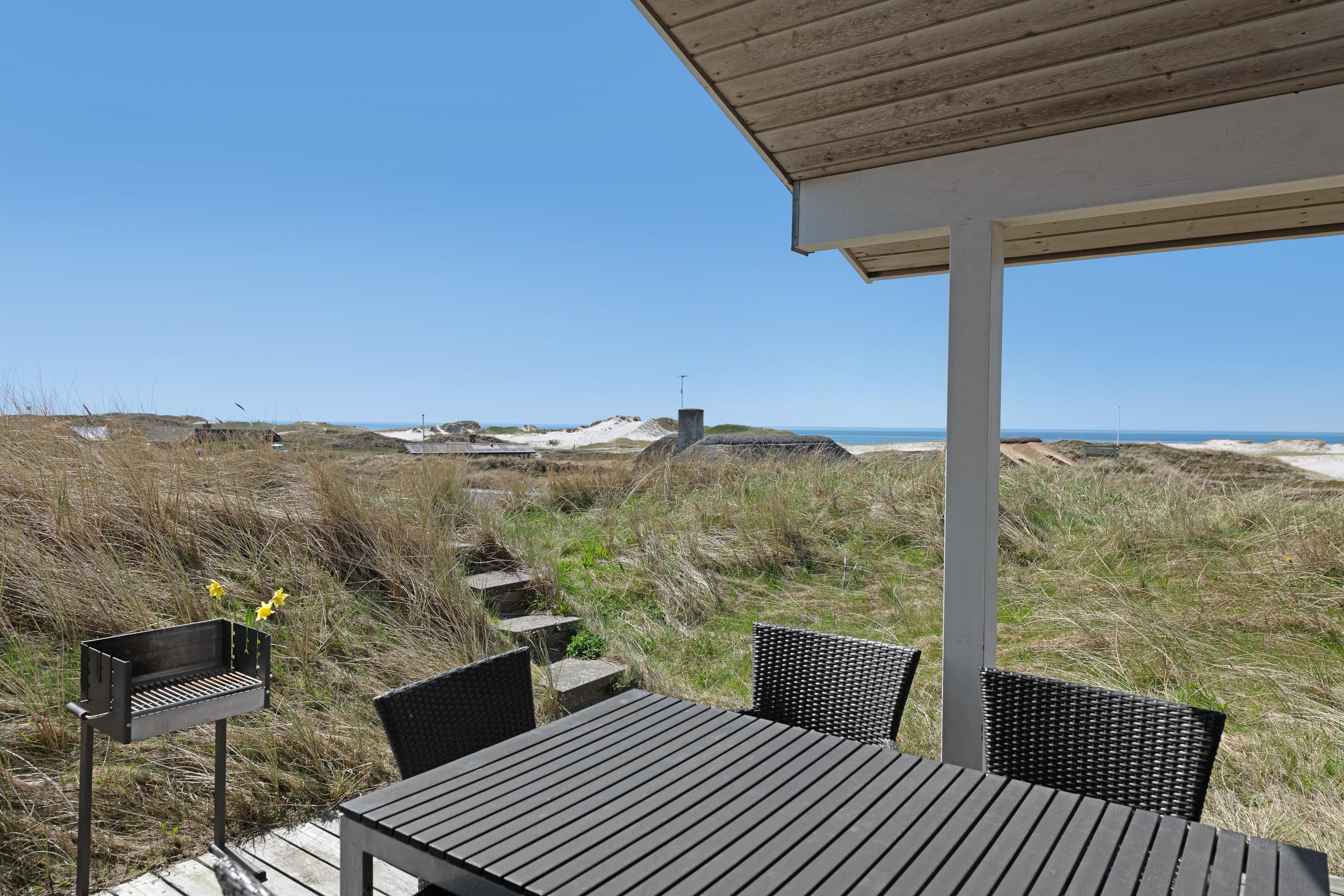Den delvist overdækkede terrasse har flere gode kroge, hvor I kan sidde i ro og fred, mens I tanker ny energi i den friske, salte havluft. På de varme solskinsdage kan I slappe af i liggestolene og havemøblerne med lidt koldt at drikke, mens I nyder den fantastiske udsigt hele vejen til havet.