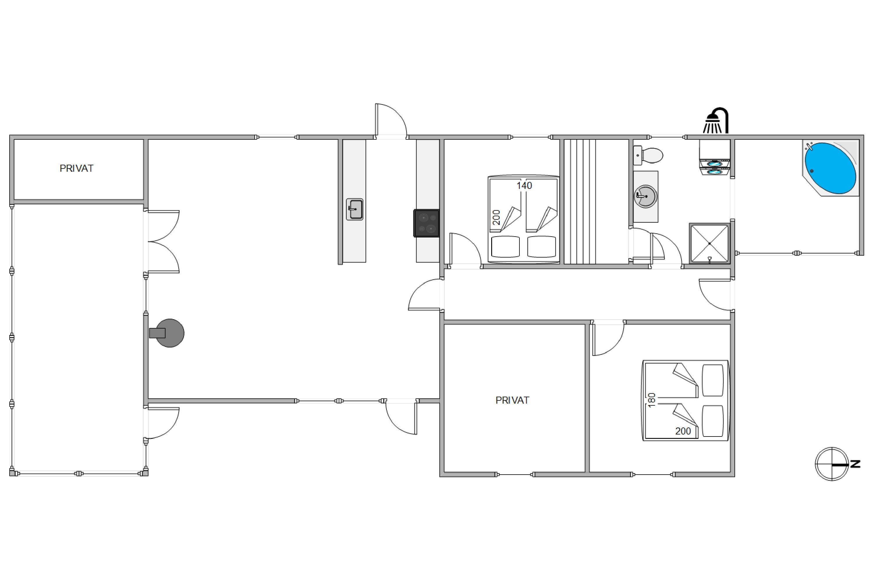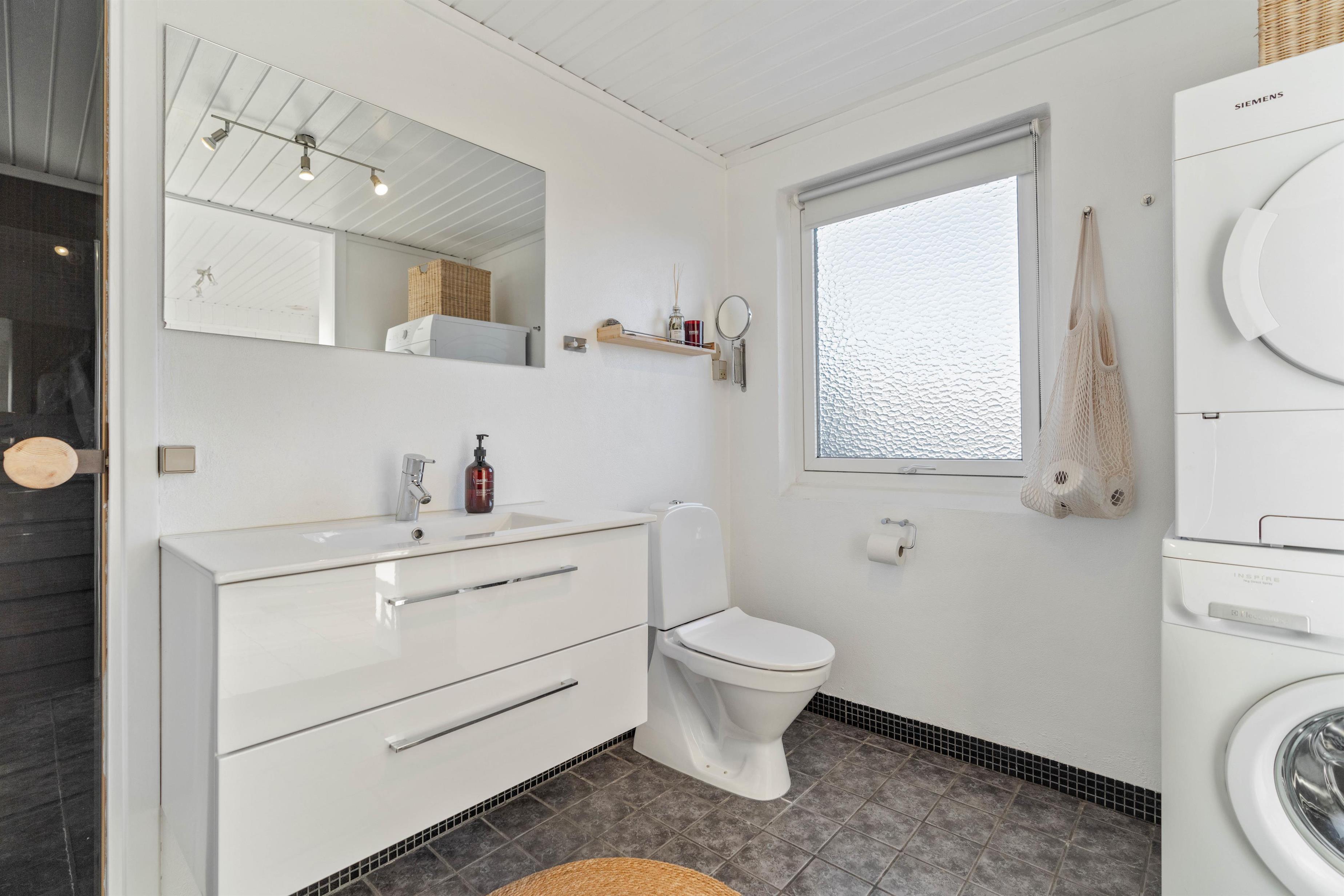 Husets badeværelse er med både sauna og spa. Her kan du sidde i det varme vand, mens du nyder udsigten gennem det store vinduer, der går fra gulv til loft. Det giver ro til både krop og sjæl. Saunaen garanterer også, at I kan slappe helt af og slippe væk fra hverdagens stress og jag.