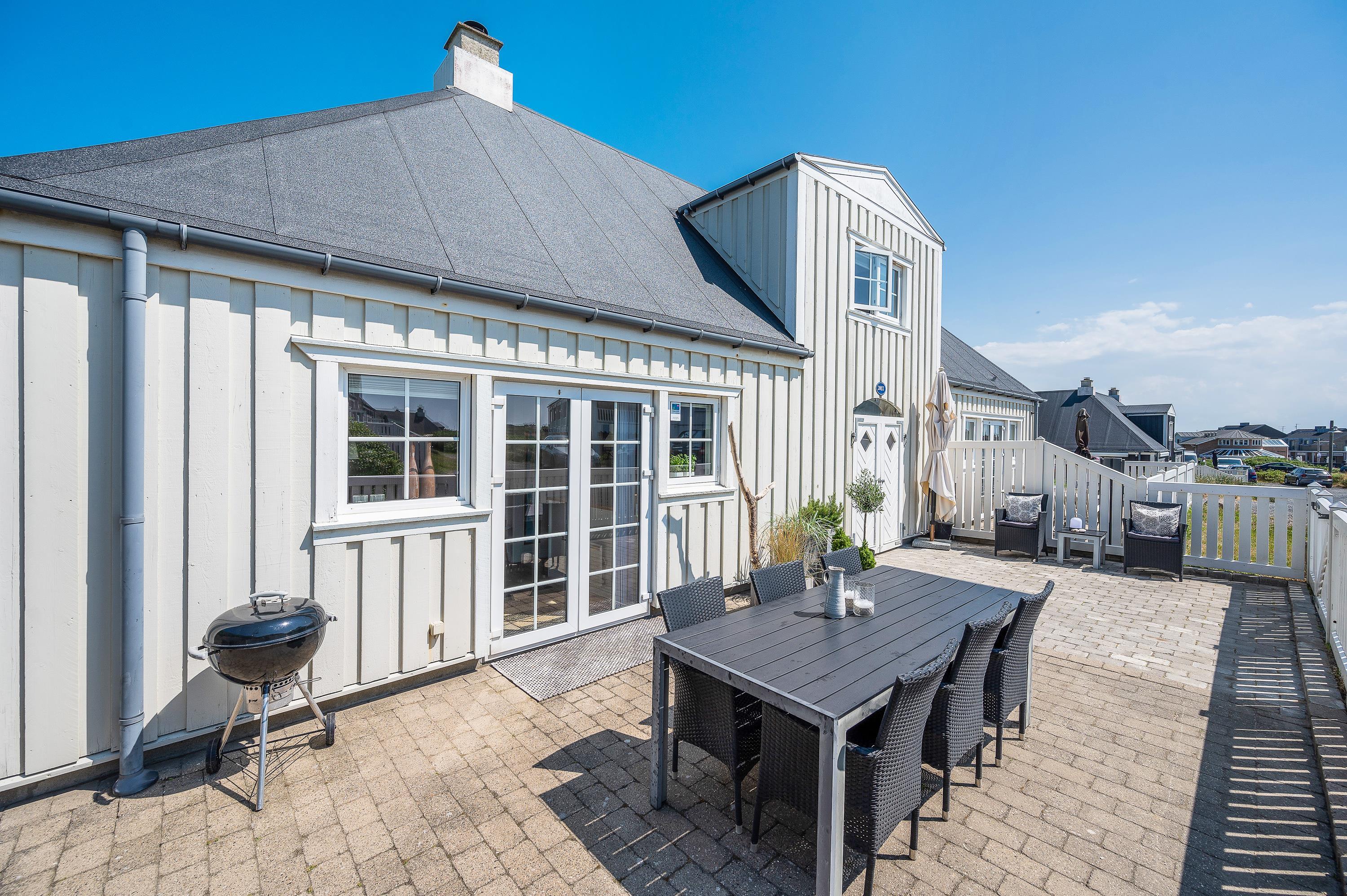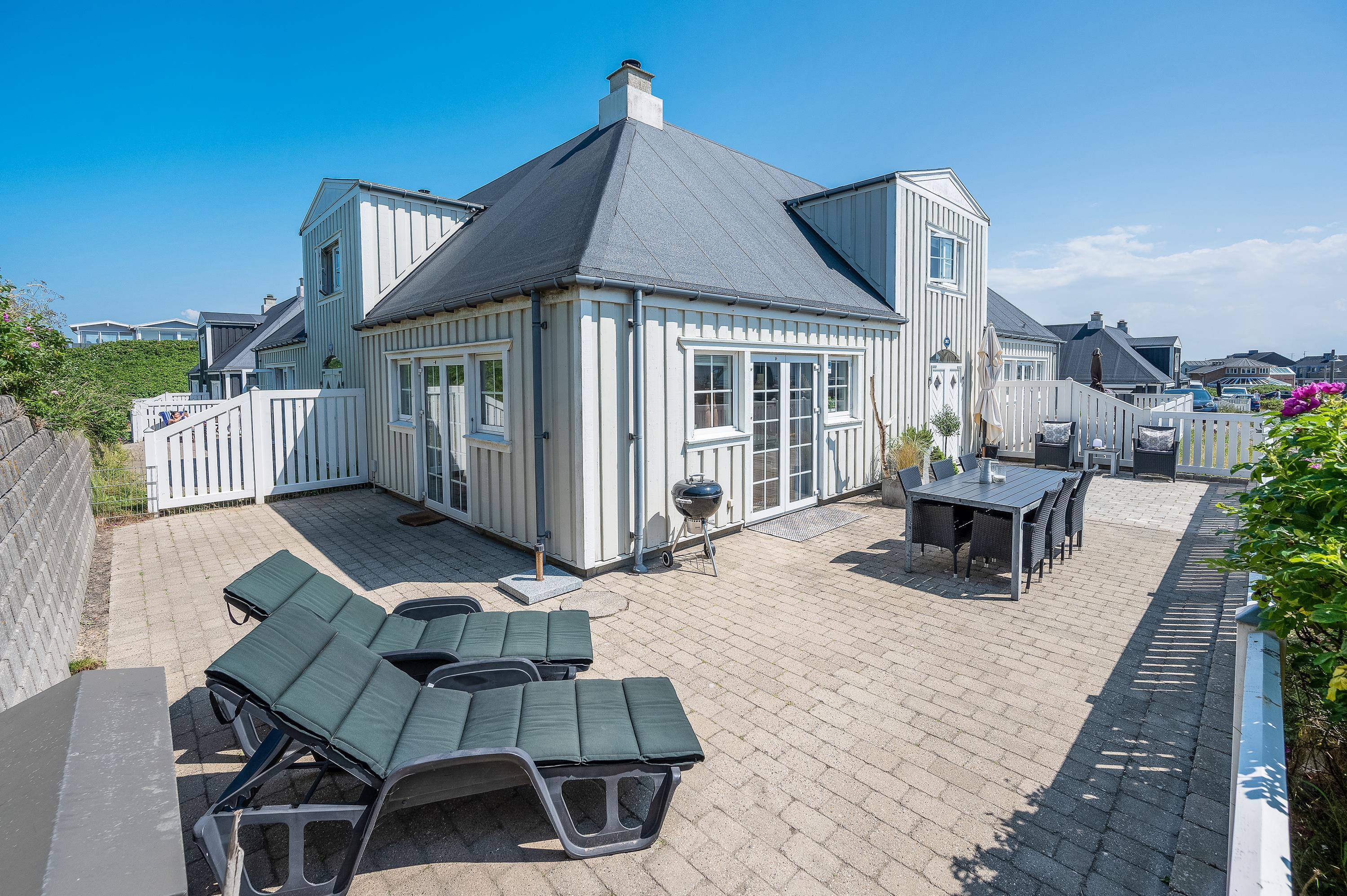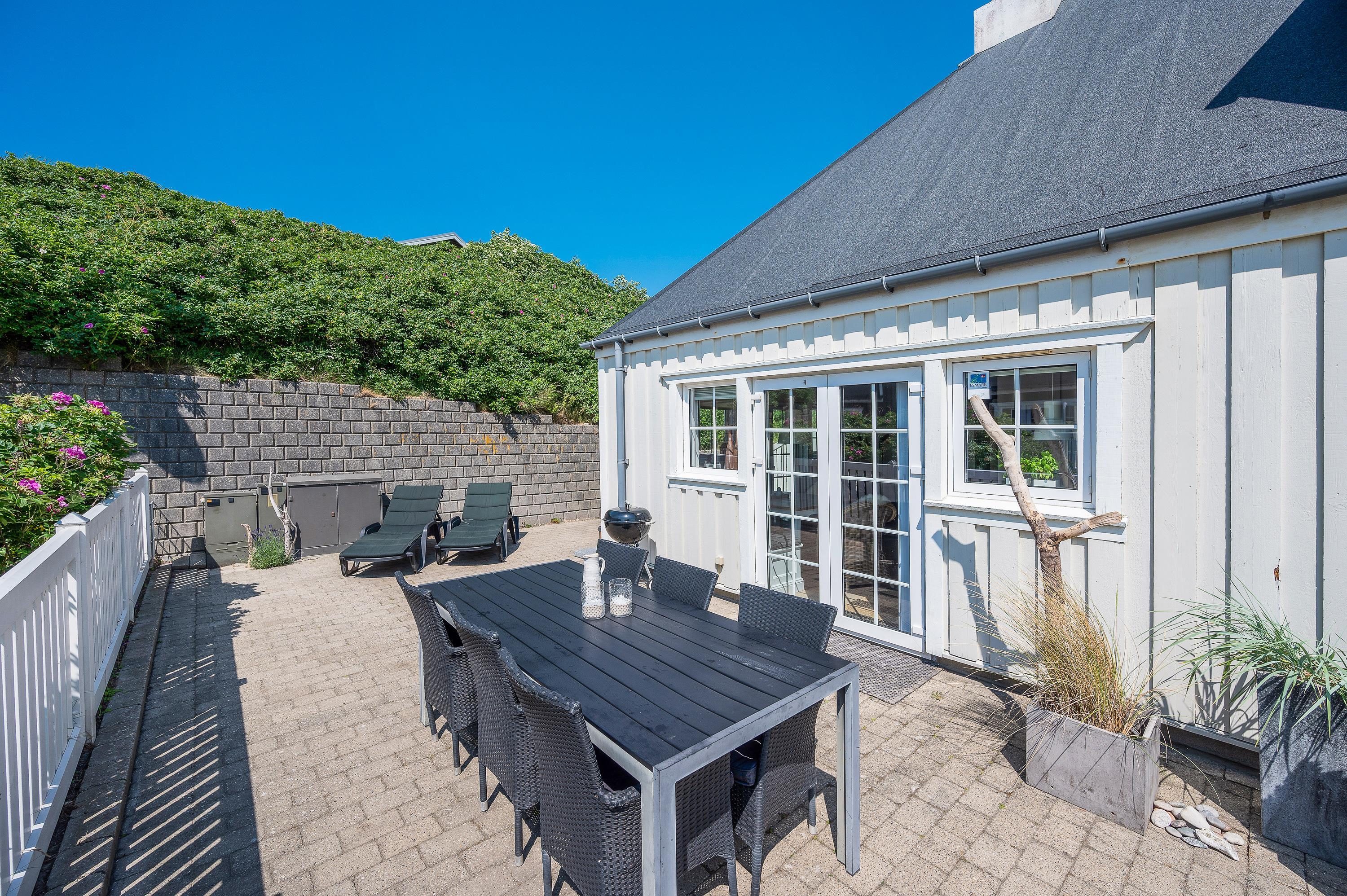 Fra terrassen kan I høre det brusende Vesterhav kalde på jer, og på få minutters gang kommer I til den kilometerlange sandstrand, som i øvrigt er let tilgængelig for alle med den gode strandovergang. Her kan både store og små følge med, og de modige og badeglade feriegæster kan hoppe en tur i bølgerne.