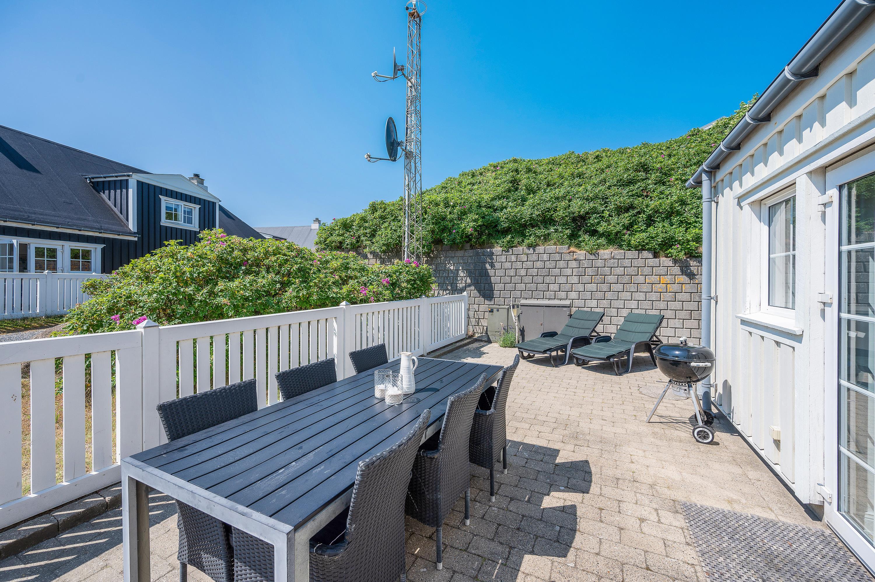 På den afskærmede og lukkede terrasse er der gjort klar til, at I kan nyde de varme solskinsdage i liggestolene eller havemøblerne, og om aftenen kan der tændes op i ferielejlighedens grill, hvis I skal have en ekstra hyggelig feriemiddag.