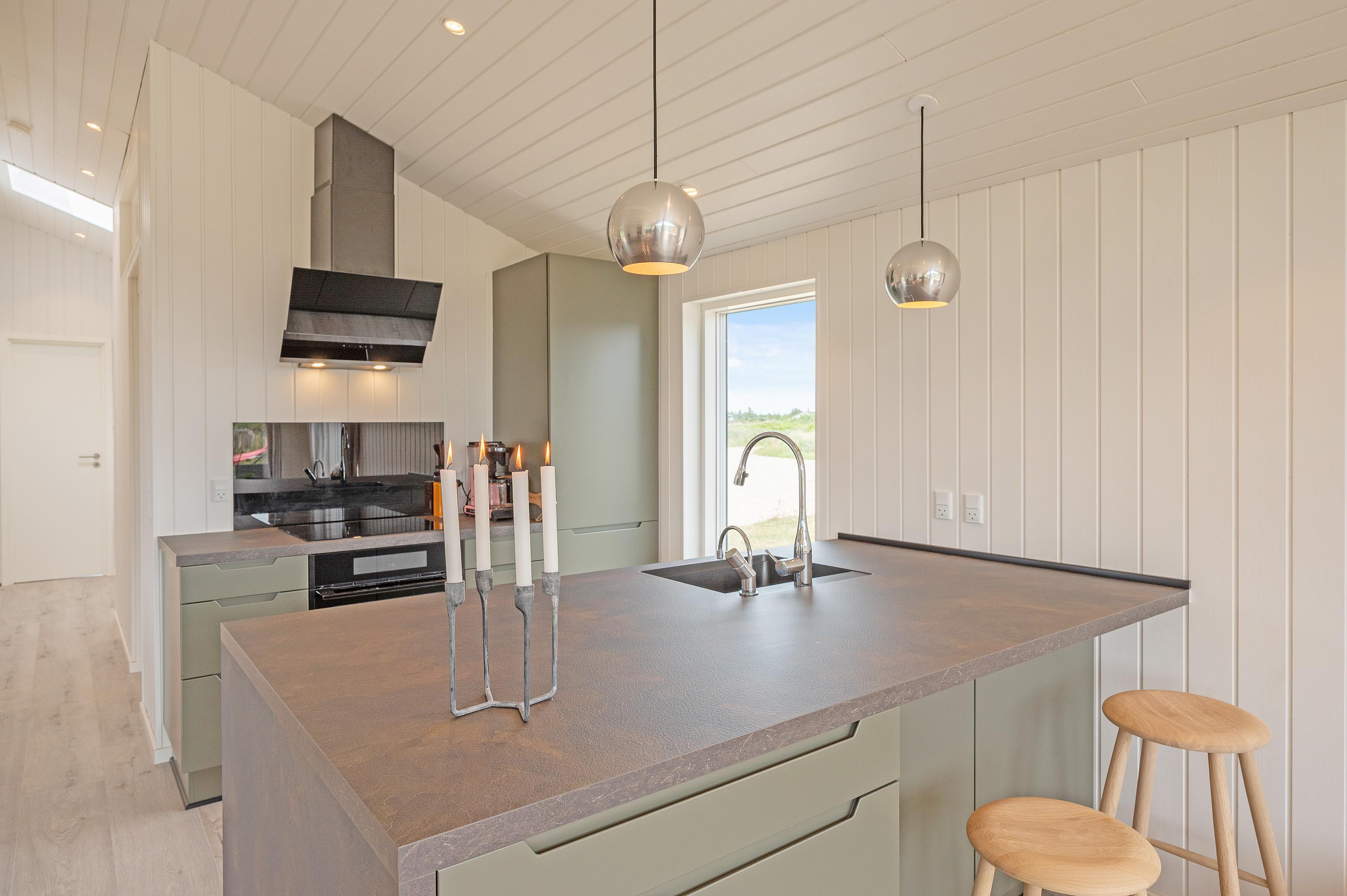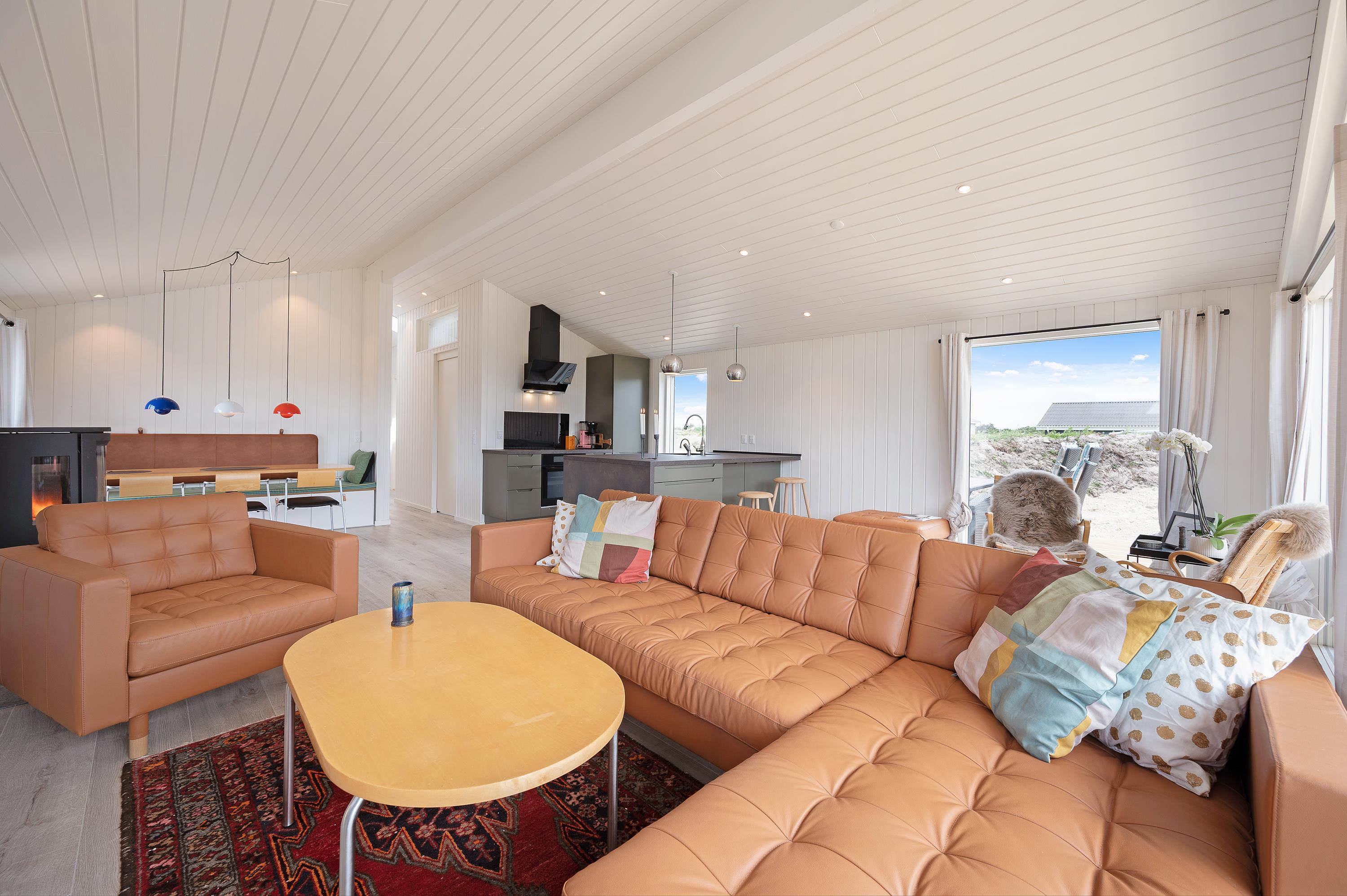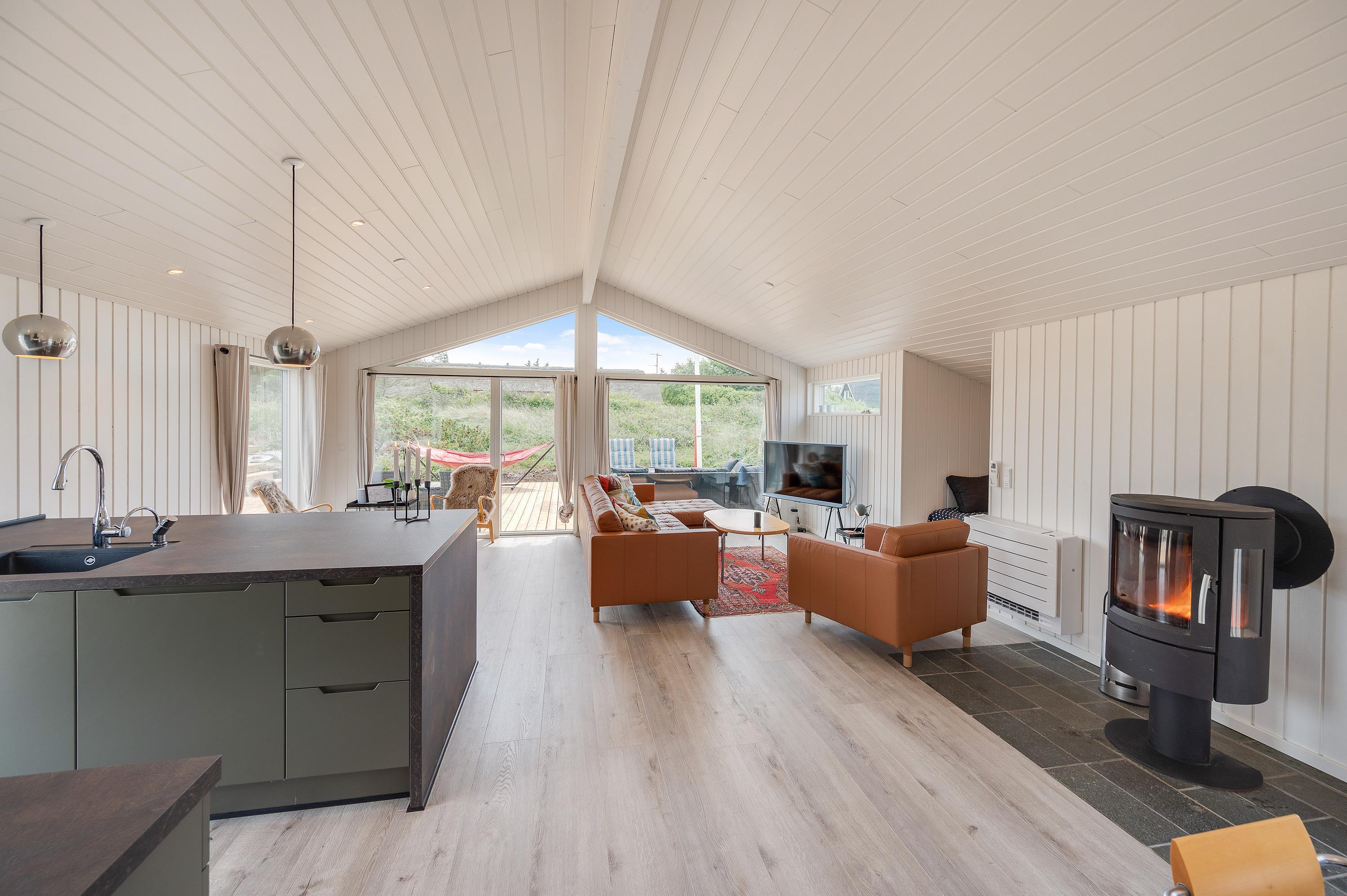 I feriehuset sørger en energivenlig varmepumpe for, at I har et godt indeklima til lave omkostninger. Vil I skrue ekstra op for varmen og den hyggelige feriestemning på de kølige ferieaftener, kan I tænde op i brændeovnen i stuen. På sommerhusets badeværelse er der også gulvvarme, så ingen fryser fødderne.