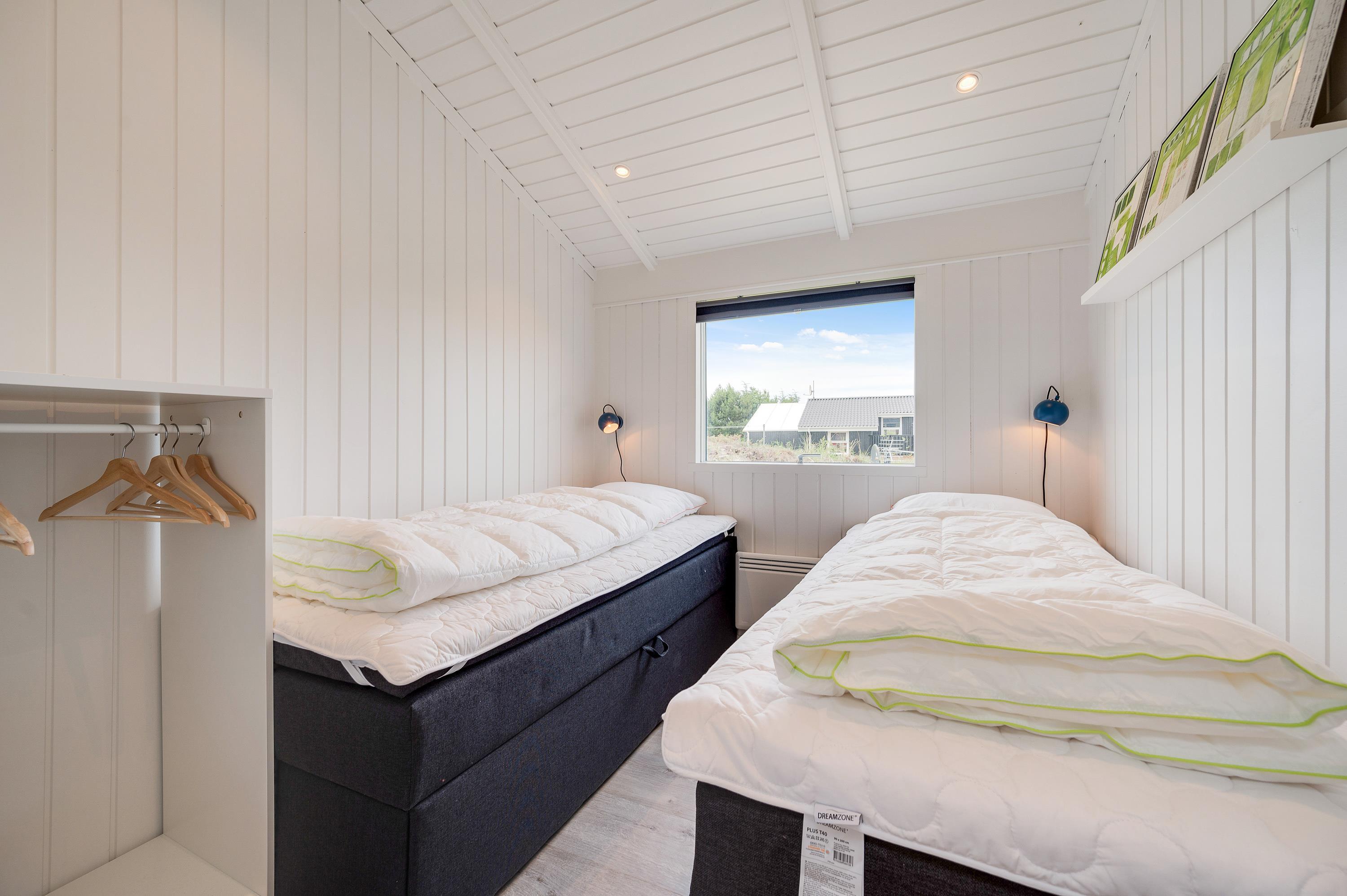 Sommerhuset byder på gode praktiske faciliteter, som hjælper jer med det praktiske husarbejde. Opvaskemaskinen står klar til at tage opvasken efter madlavningen, og vaskemaskinen og tørretumbleren hjælper til med tøjvasken. I det ene værelse er en foldudseng som måler 2x80x200 m og som kan bruges både som enkelt eller dobbeltseng. Sommerhuset har desuden en alkove, hvor du f.eks. kan trække dig tilbage med en spændende bog i hånden.