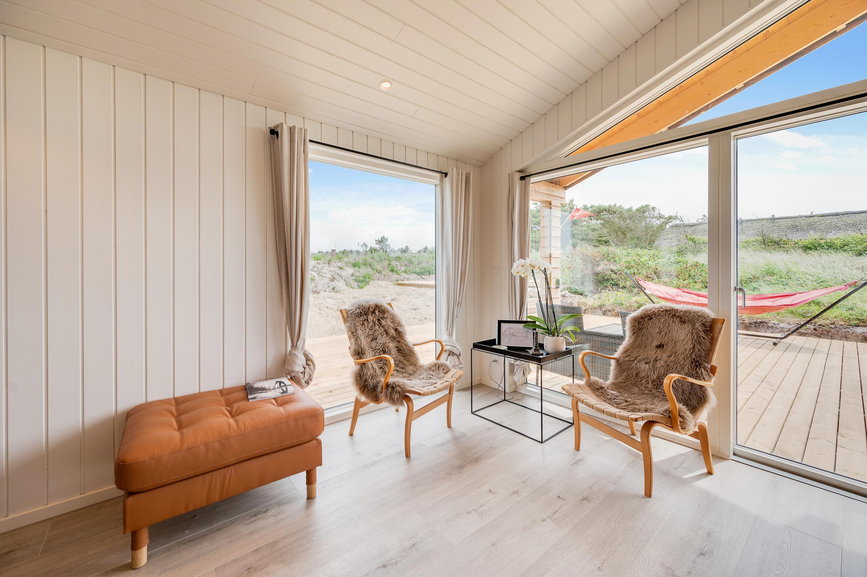 Omkring 800 meter fra Vesterhavet ligger dette dejlige sommerhus med udebruser på Wolle Friks Vej 35 i Søndervig. Sommerhuset, der er renoveret i 2021, rummer plads til 6 personer og er derfor en oplagt feriematrikel for familien og jeres hund.
