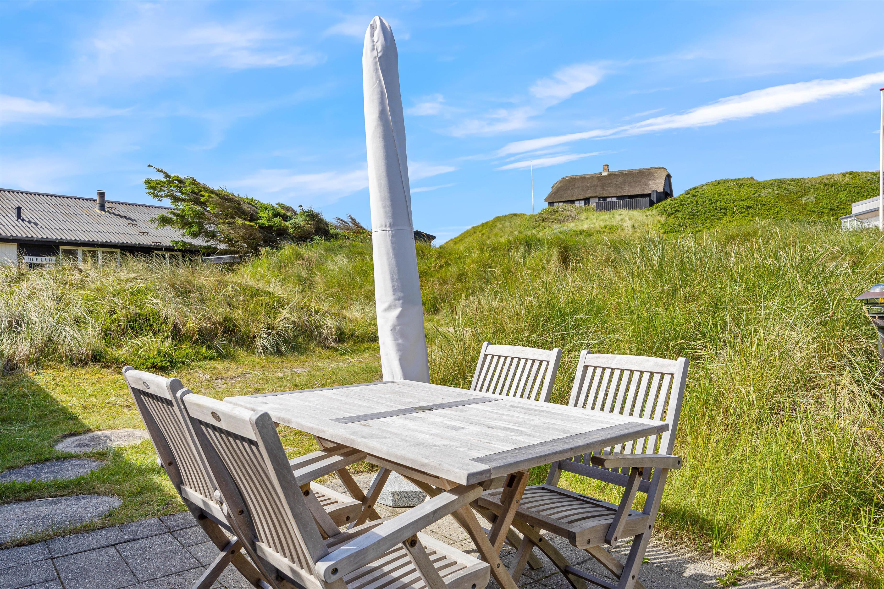 Den anden terrasse finder I mod vest. Her har I masser af sol om eftermiddagen og om aftenen, så I må ikke snyde jer selv for et godt aftensmåltid tilberedt på sommerhusets grill – det kunne jo nydes til den flotte solnedgang med et godt glas vin?