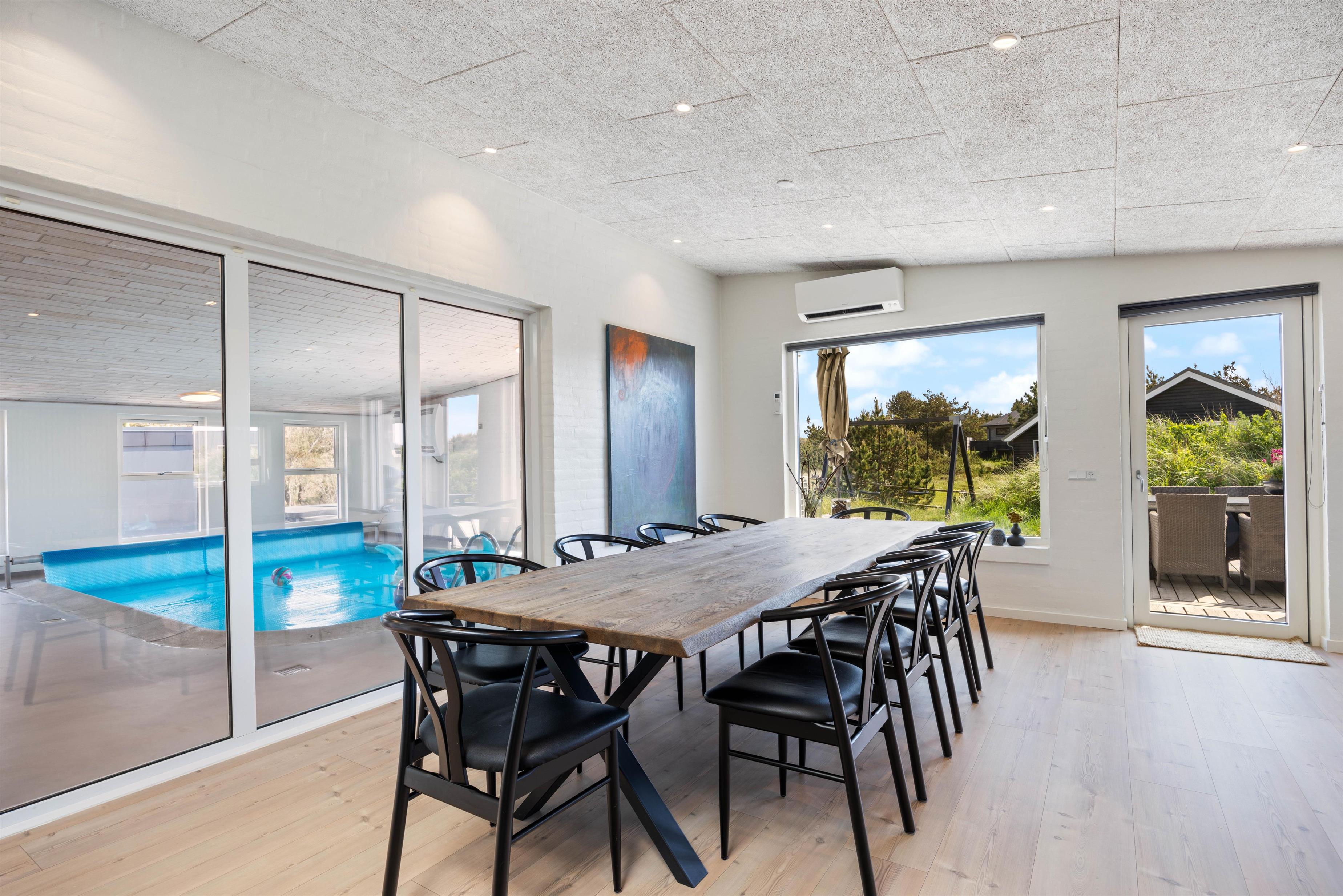 Trænger I til et afslappende afbræk fra hverdagen, hvor komfort og wellness er kodeordene for jeres ferie? Så er I landet det helt rigtige sted. For i det lækre poolhus på Marehalmen 27 i Søndervig får I både pool, udendørs spabad, naturgrund og hyggelige omgivelser. Sommerhuset har plads til 10 overnattende ferigæster samt op til 2 hunde.