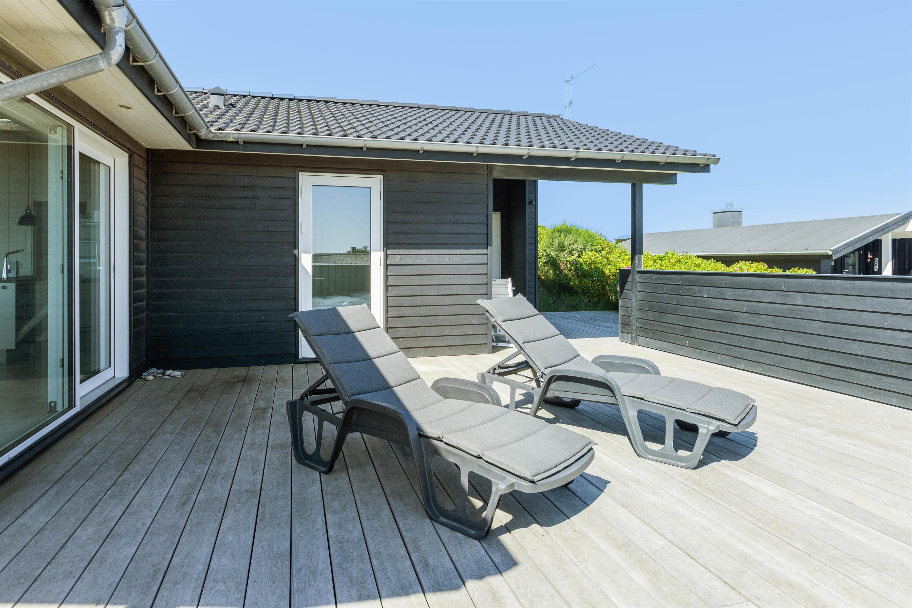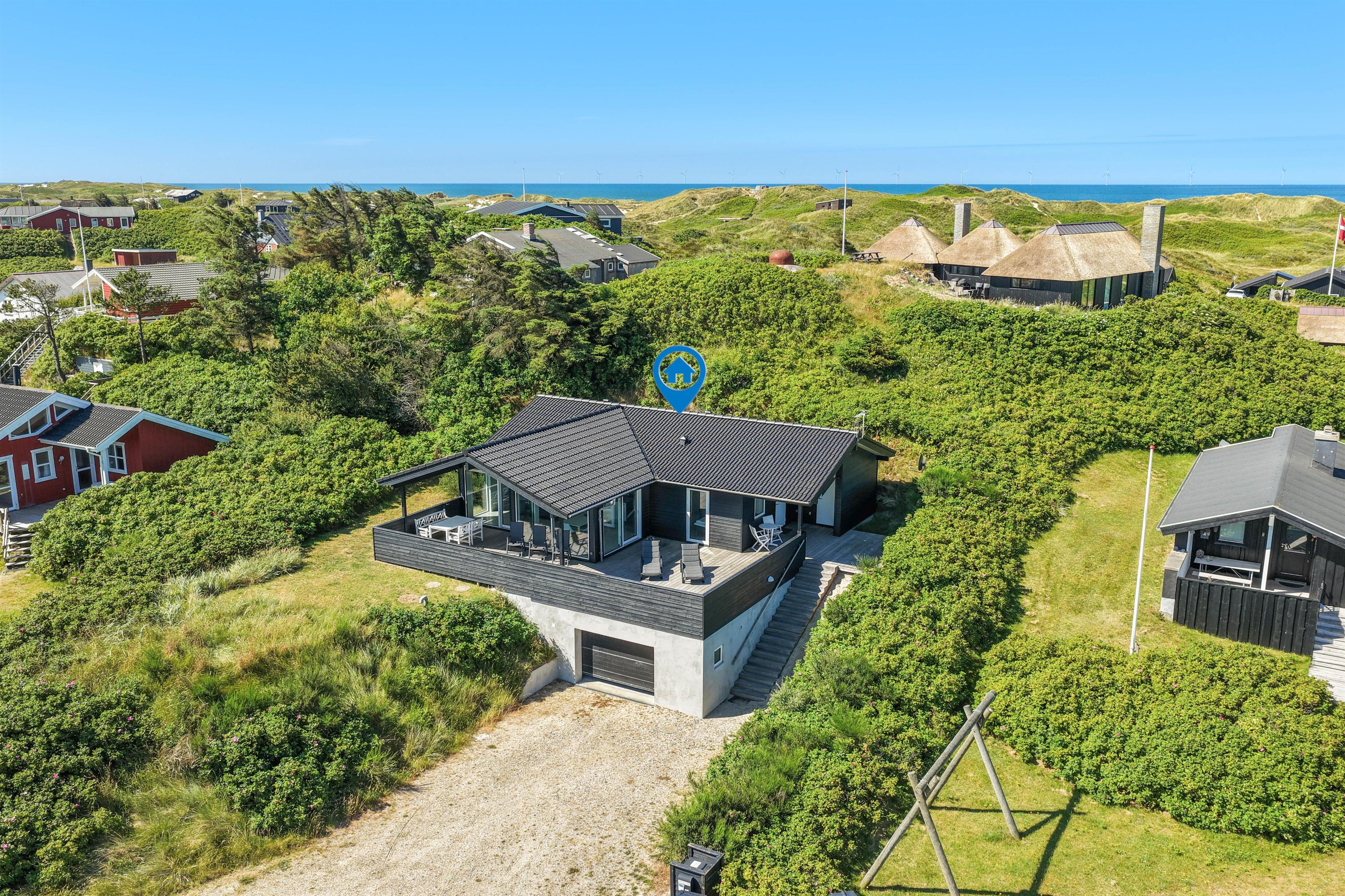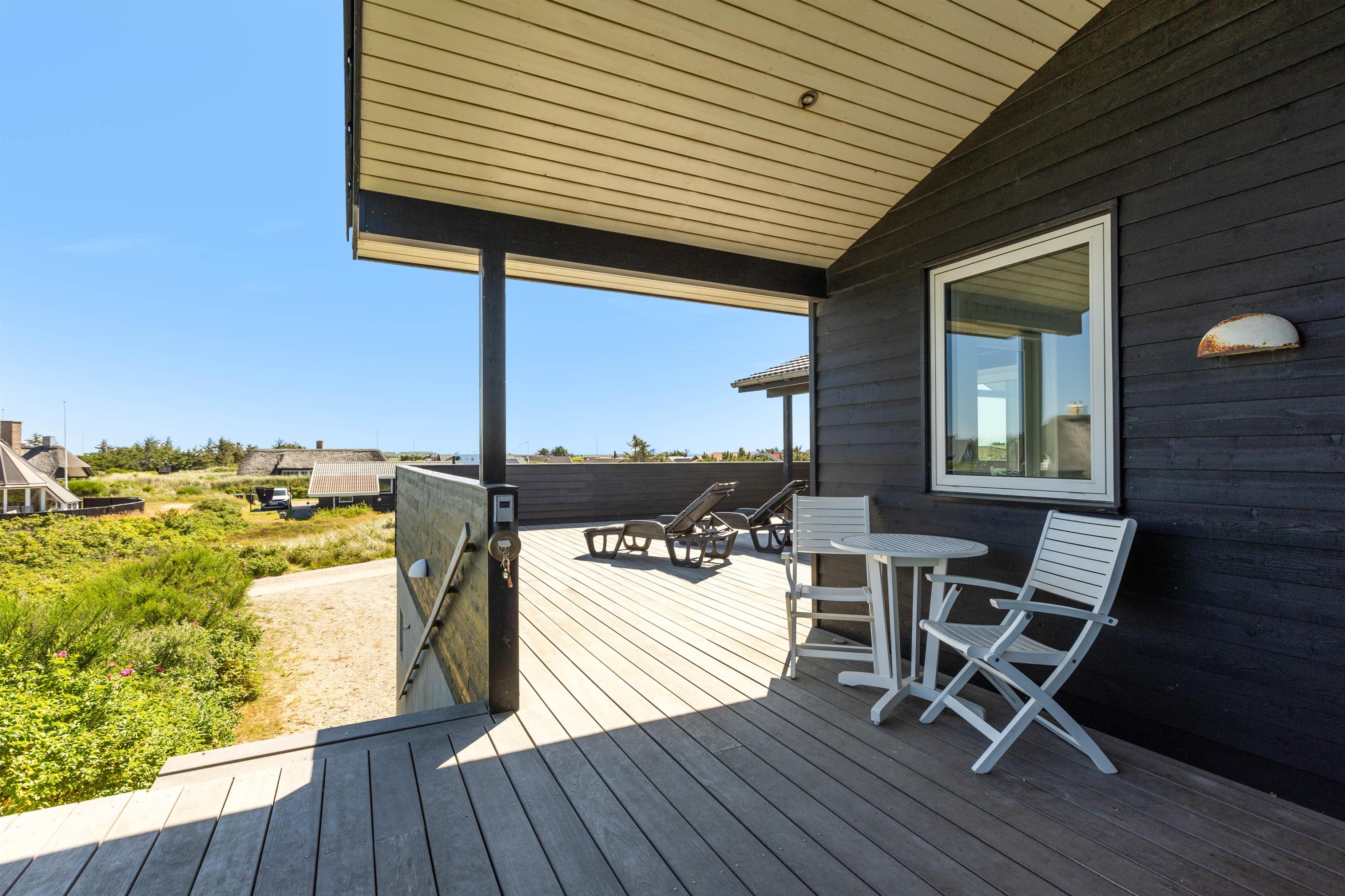 Feriehuset har en helt fantastisk beliggenhed, og få minutters gang bringer jer til det brusende Vesterhav, hvor I kan tage en frisk dukkert eller gå en tur langs vandet. De solrige dage kan også nydes på den skønne terrasse, og selv på regnfulde dage kan I sidde i ly og læ og nyde den vestjyske natur under den overdækkede del.