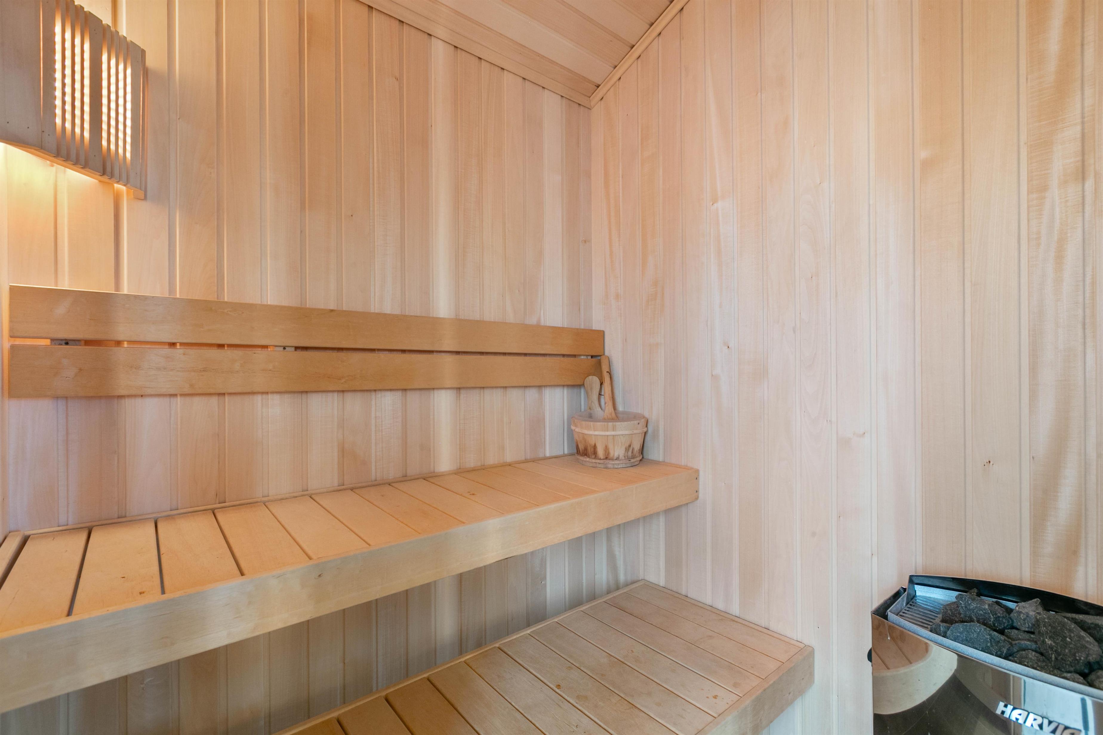 Det store badeværelse gemmer på en ekstra wellness-hemmelighed; I får nemlig jeres egen sauna, hvor I kan slappe af og forkæle jer selv lidt ud over det sædvanlige på ferien.