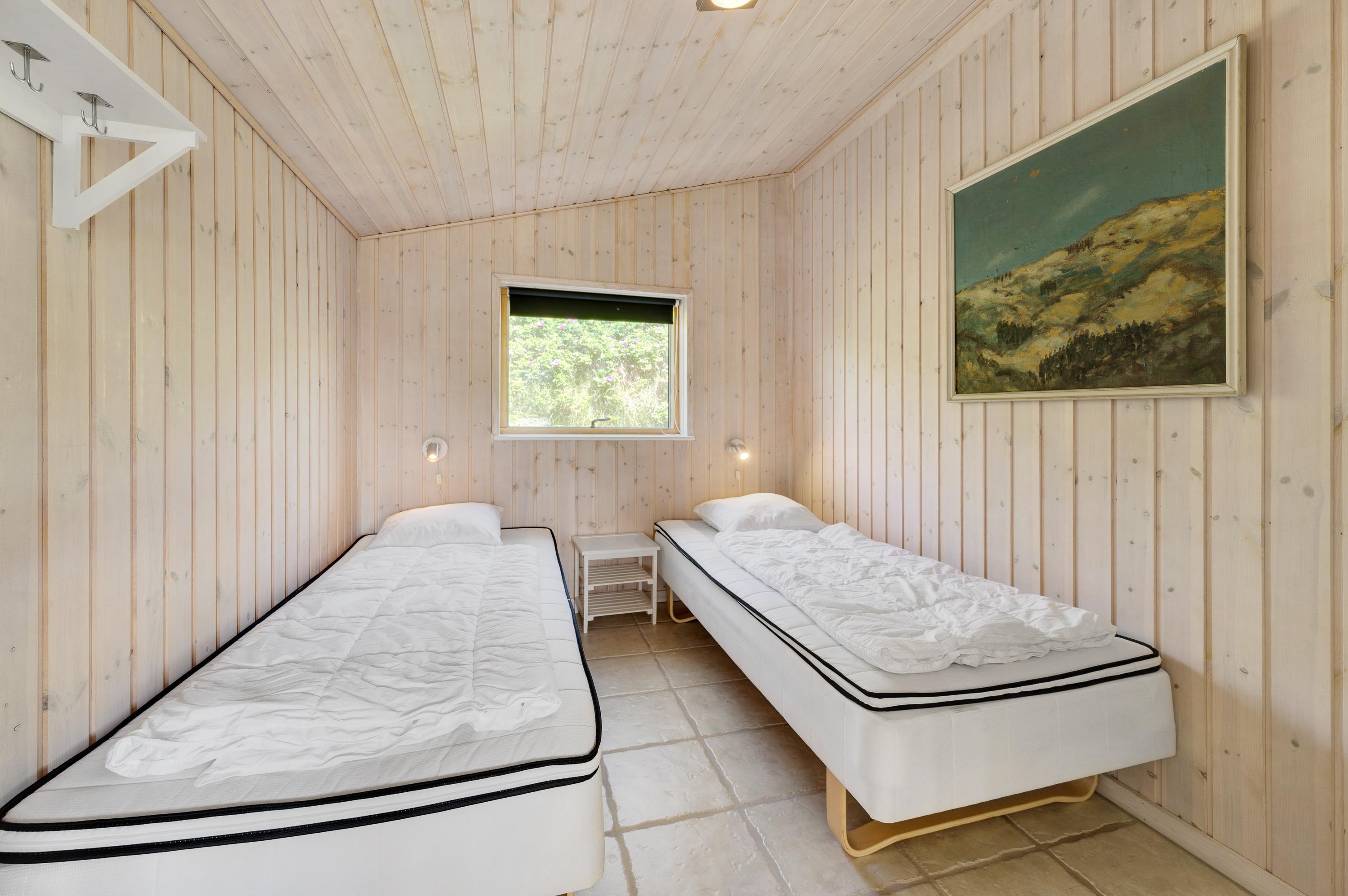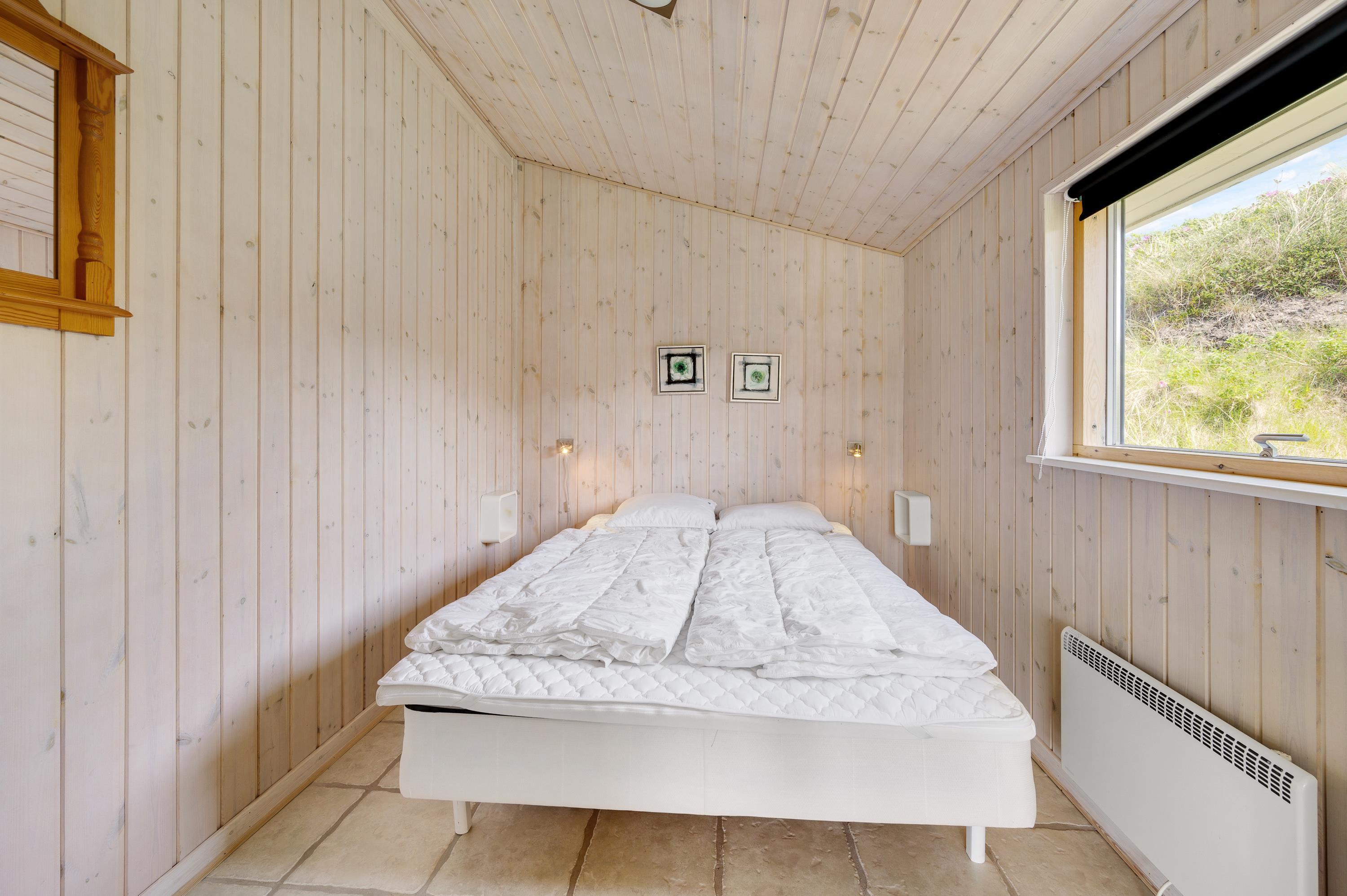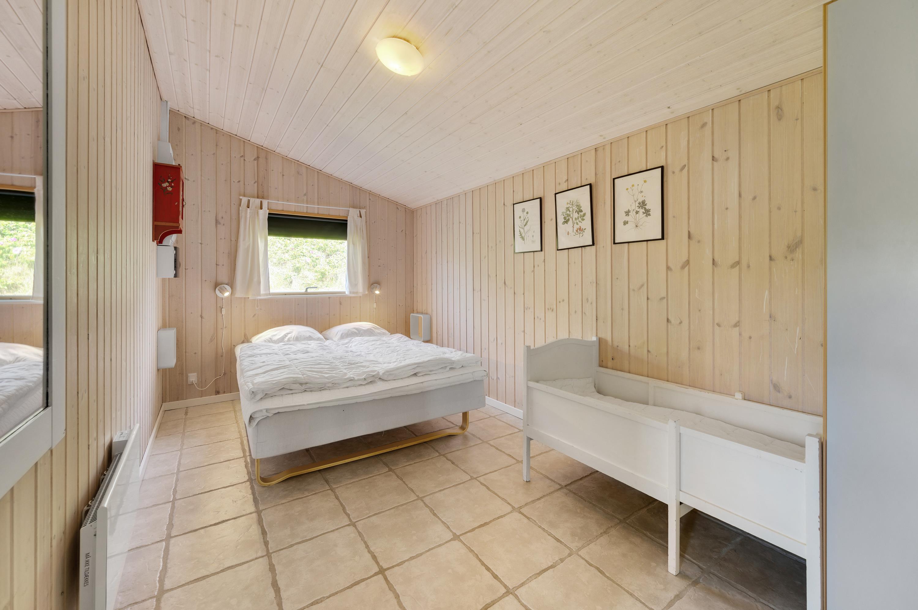 Sommerhuset har i alt tre soverum og er derfor velegnet til op til seks personer. Her kan I sove godt og vågne op til den beroligende lyd af bølgerne i de hyggelige soveværelser. Som en ekstra komfort er der desuden gulvvarme i det største soveværelse.