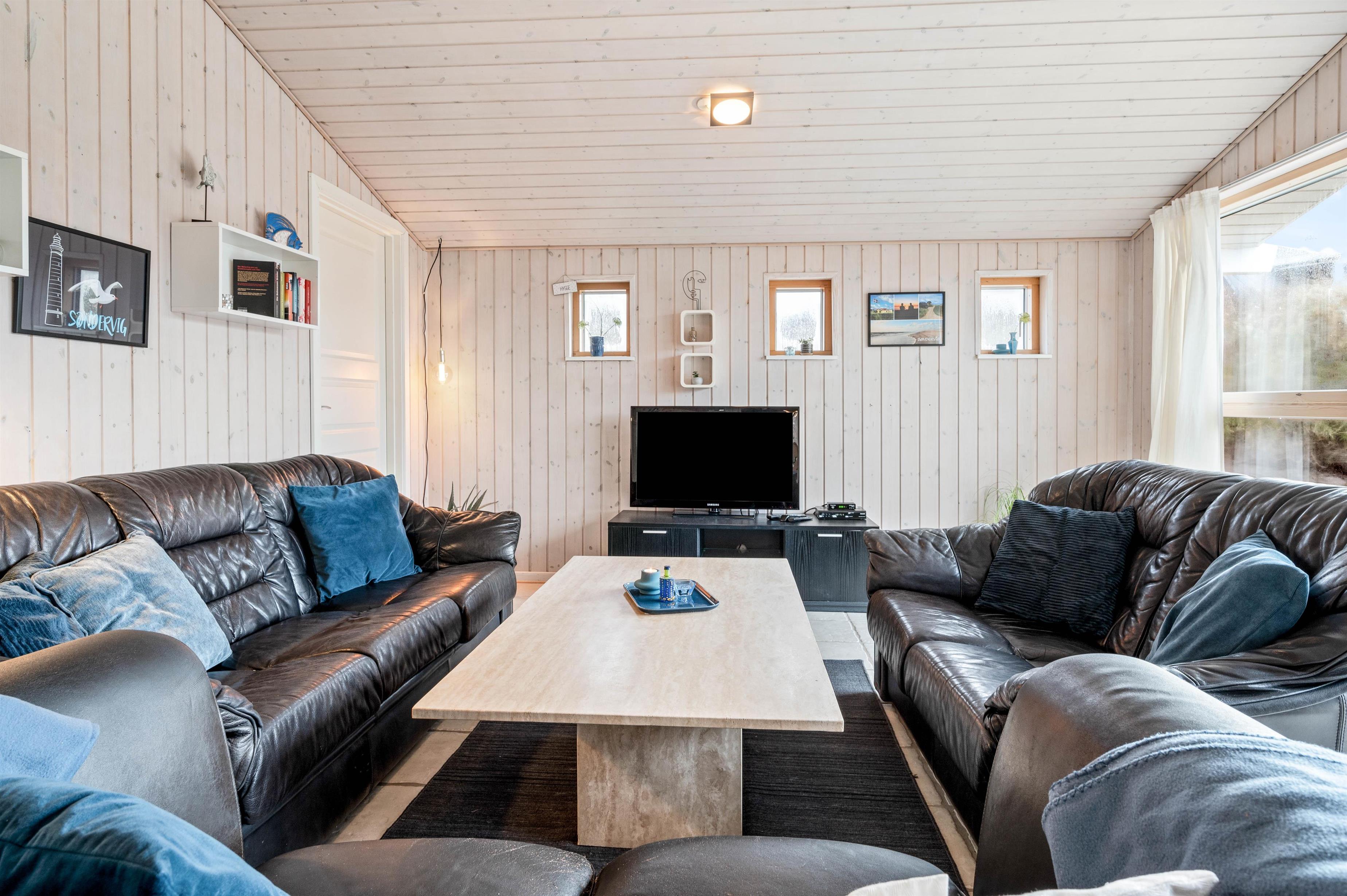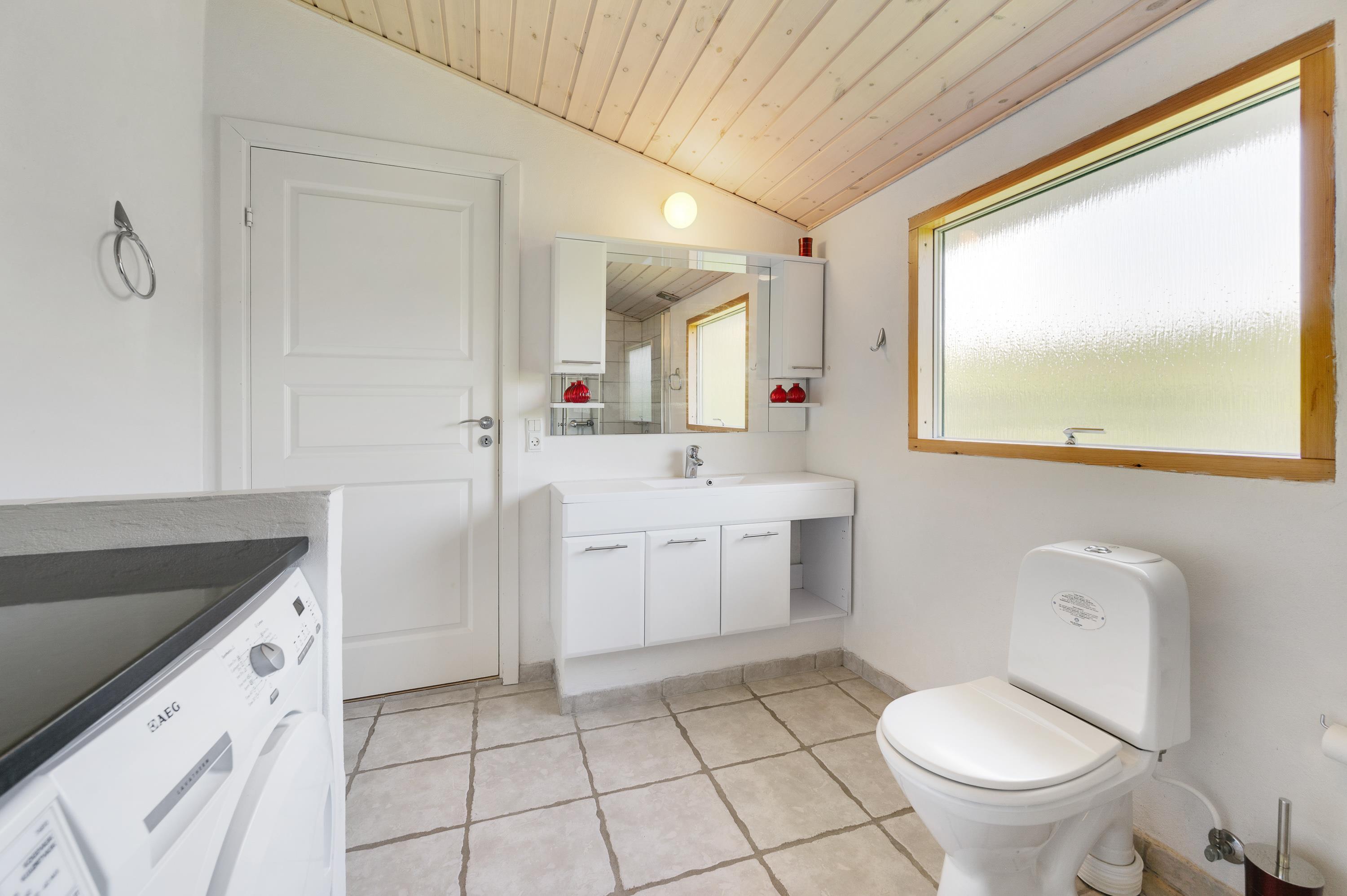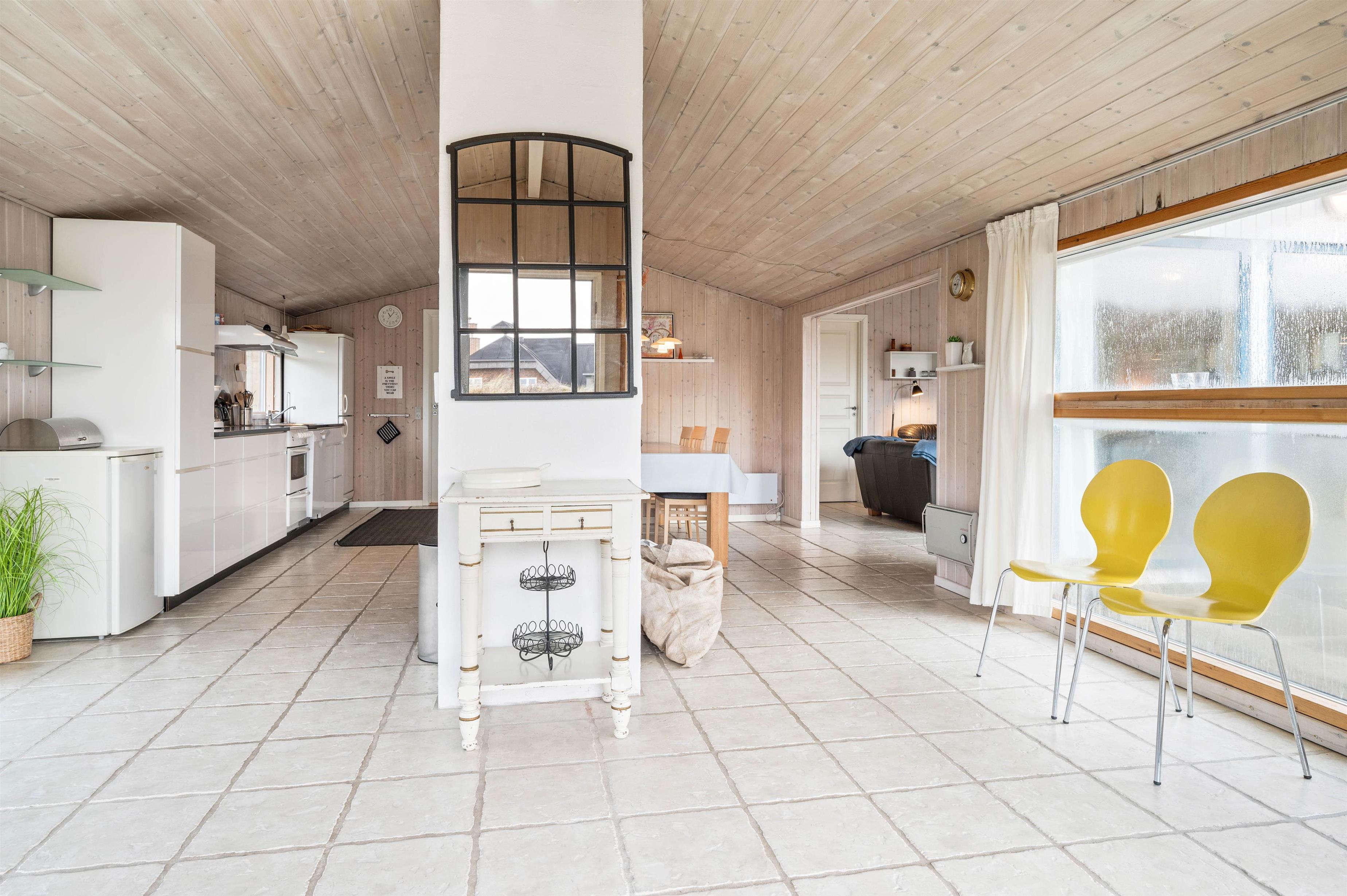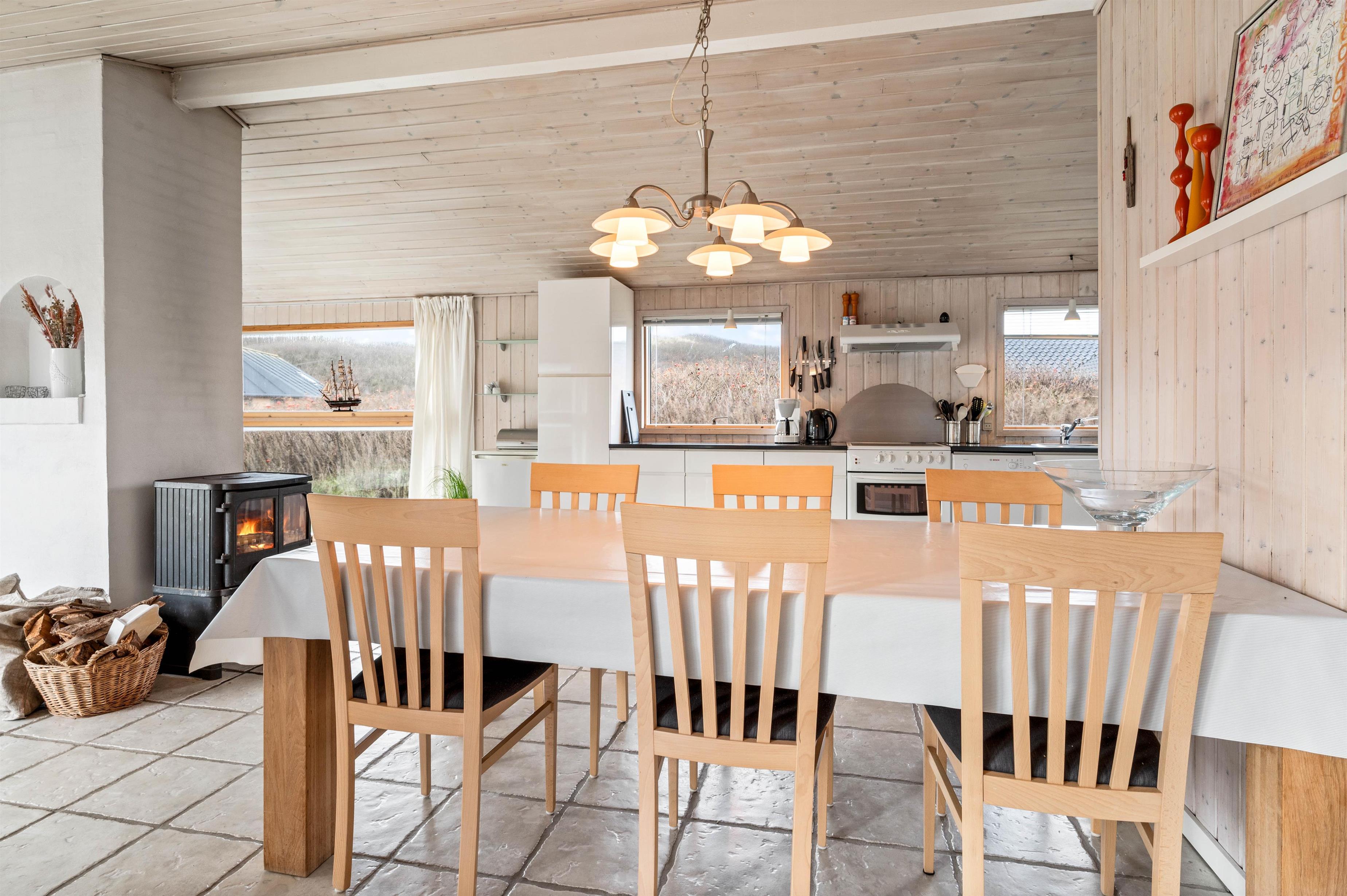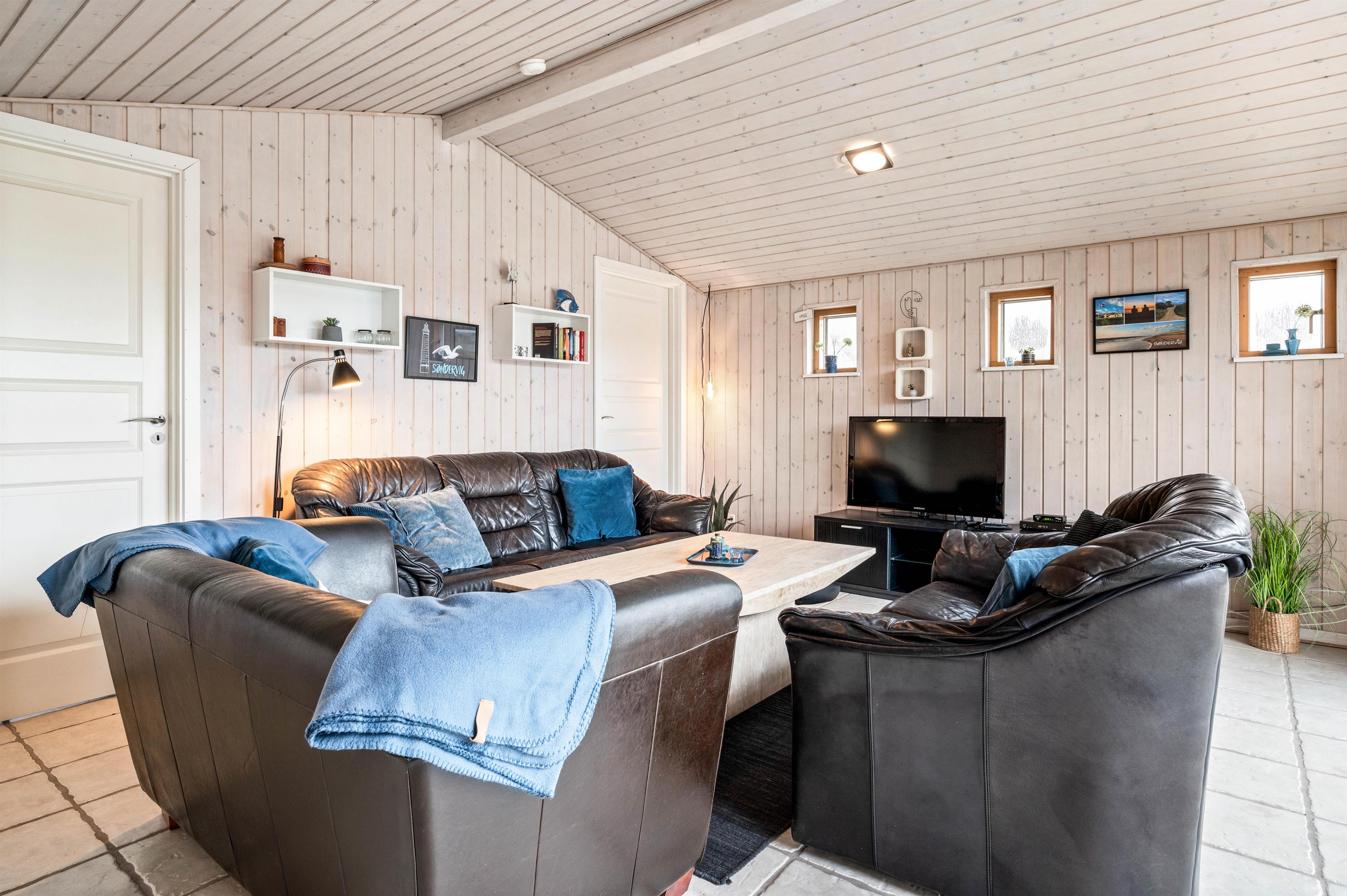 For jer, der elsker at kombinere hygge med funktionelle bekvemmeligheder, er dette sommerhus i Søndervig det ideelle valg. Køkkenet er fuldt udstyret med en opvaskemaskine, så I kan spare tid og nyde jeres ferie fuldt ud uden at skulle bekymre jer om opvasken. Det kombinerede spise- og opholdsområde inviterer til hyggelige måltider og afslappende aftener sammen. Desuden er der en vaskemaskine og tørretumbler, der giver ekstra bekvemmelighed under jeres ophold. Sommerhuset har også et redskabsrum, der kan aflåses, hvilket giver ekstra sikkerhed for jeres ejendele.