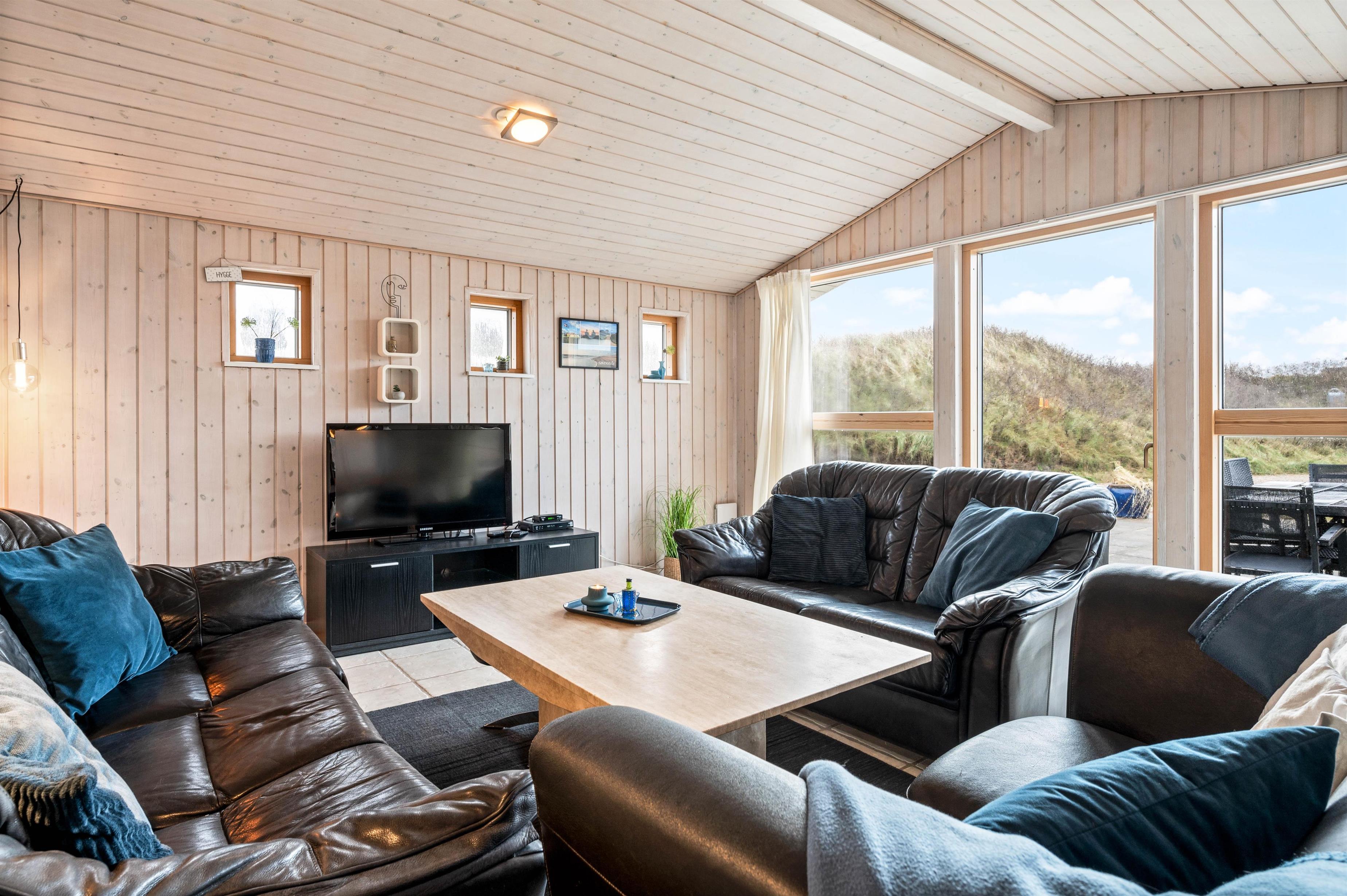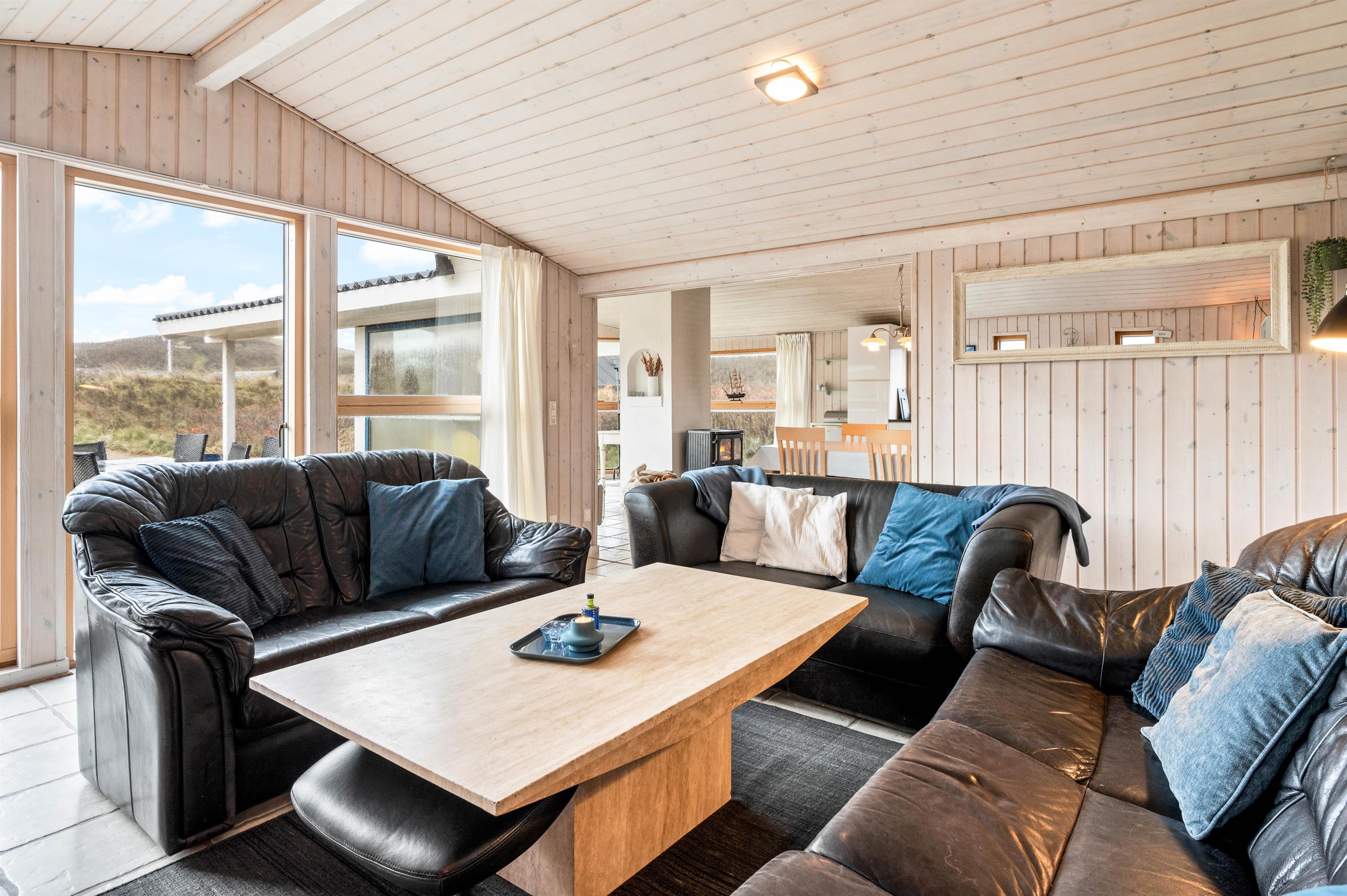 En af de bedste funktioner ved dette sommerhus er det store lysindfald, som gør det til en lys og indbydende oase. Store vinduer sikrer, at naturligt lys strømmer ind i rummene og skaber en behagelig atmosfære hele dagen. Det giver jer mulighed for at nyde den smukke udsigt og den friske luft. I kan nyde vejret ved at sætte jer godt til rette på terrassen og forberede et godt måltid på grillen.