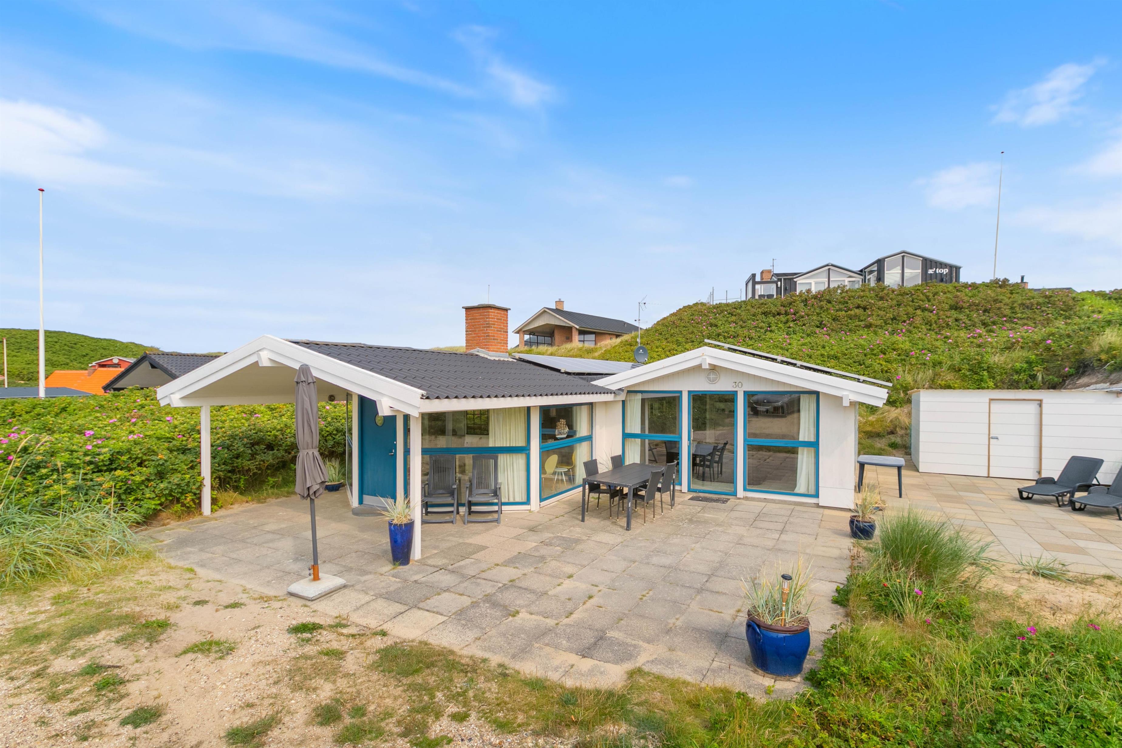 Dette charmerende 105 m2 store sommerhus i Søndervig er beliggende på Badevej 30. Sommerhuset har plads til 6 personer og jeres hund – Hvis I har sådan en. Med en afstand på blot 50 meter til havet kan I nemt nyde en dag på stranden eller tage en afslappende strandvandring når som helst. Når I har brug for at handle dagligvarer eller andre nødvendigheder, er indkøbsmulighederne bekvemt placeret kun 250 meter væk.