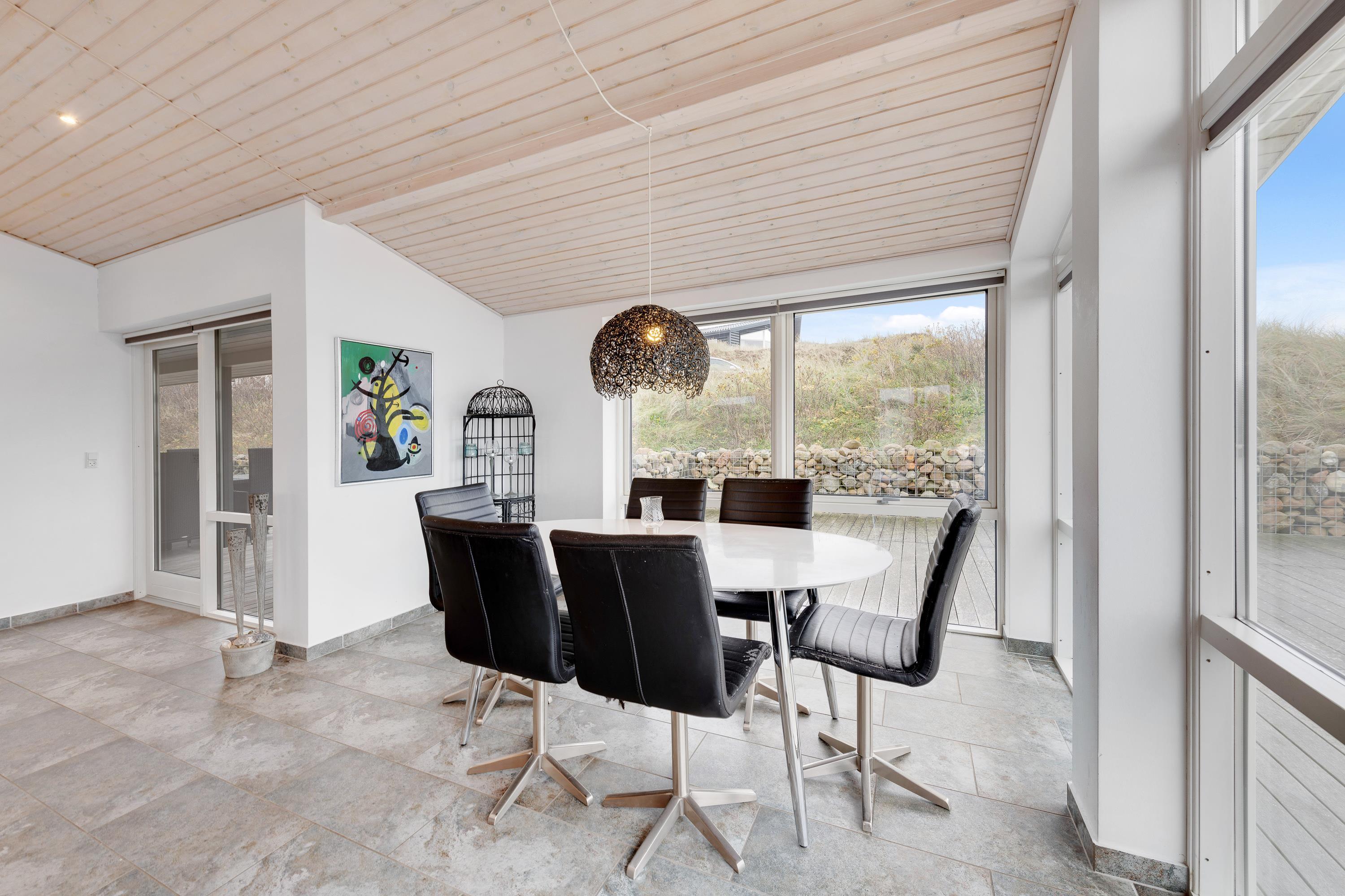 Sommerhuset ligger tæt på Vesterhavet og i et enestående naturområde, hvor en vandretur gennem det vilde, tørre hedelandskab med smukke lyngheder er en sand lise for sjælen. Eller hvad med en frisk dukkert i de brusende bølger, der er velvære for både store og små? Ved de skønne badestrande ved både fiskerbyen Hvide Sande og Søndervig er der plads til dig, der vil soppe, surfe eller bare ligge i solen og slappe af.
