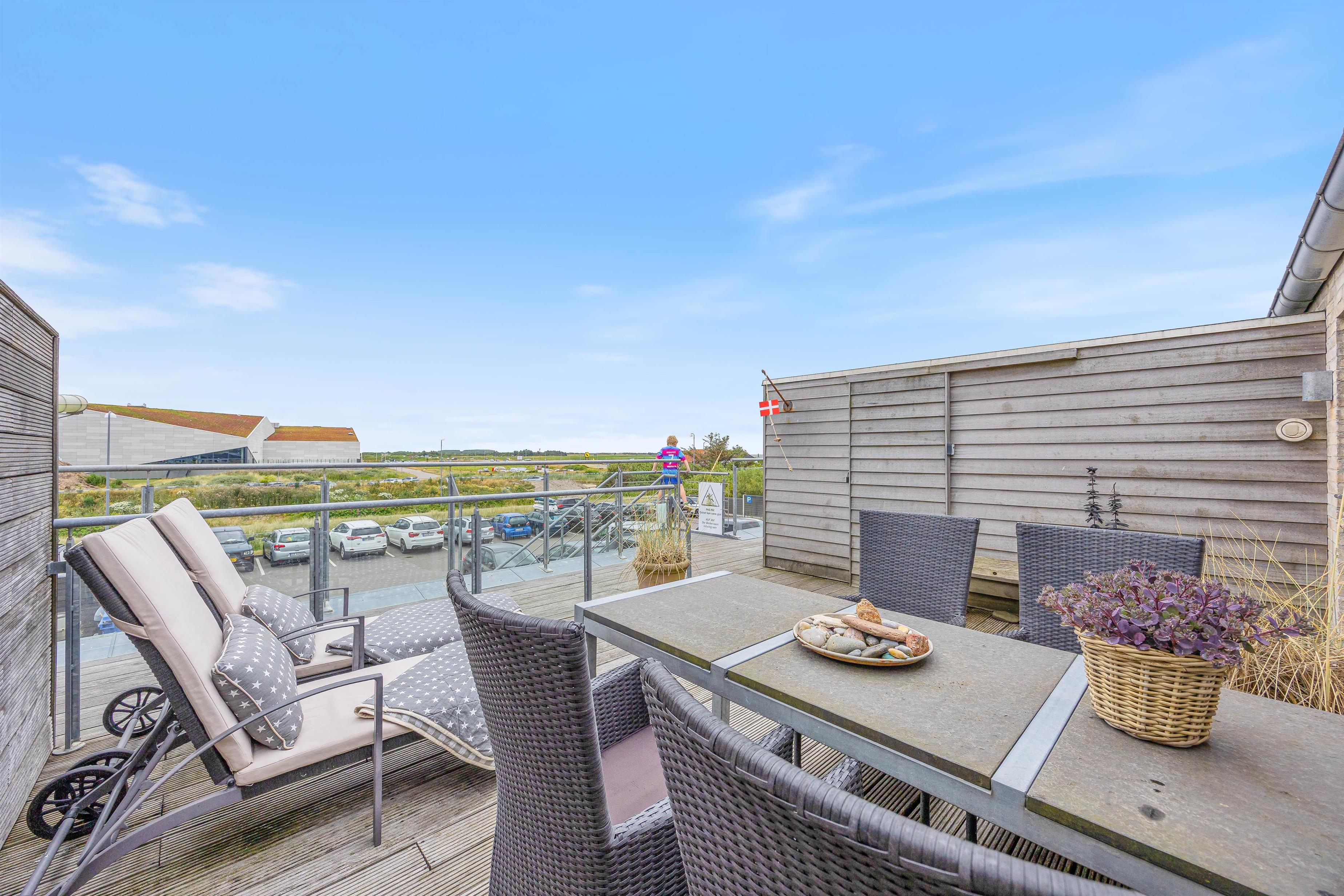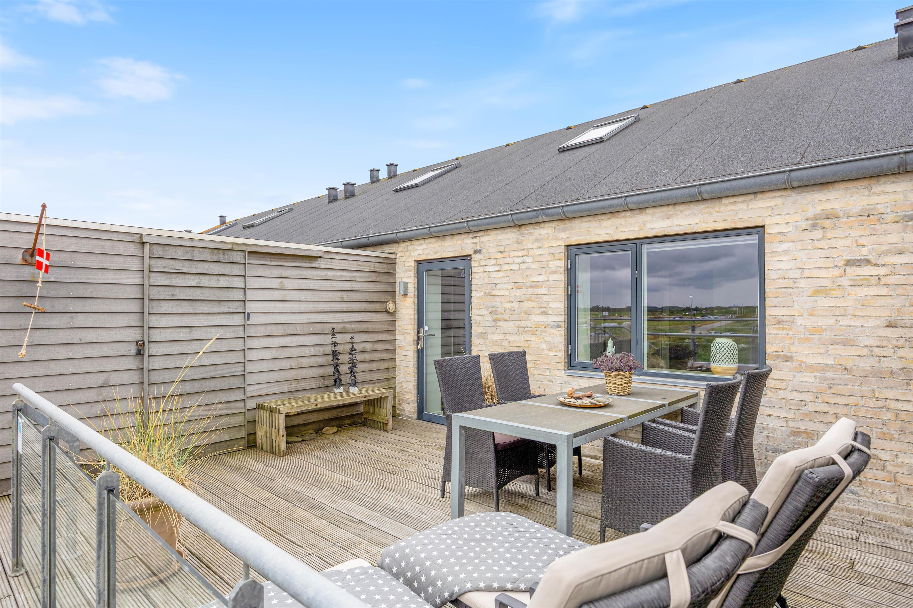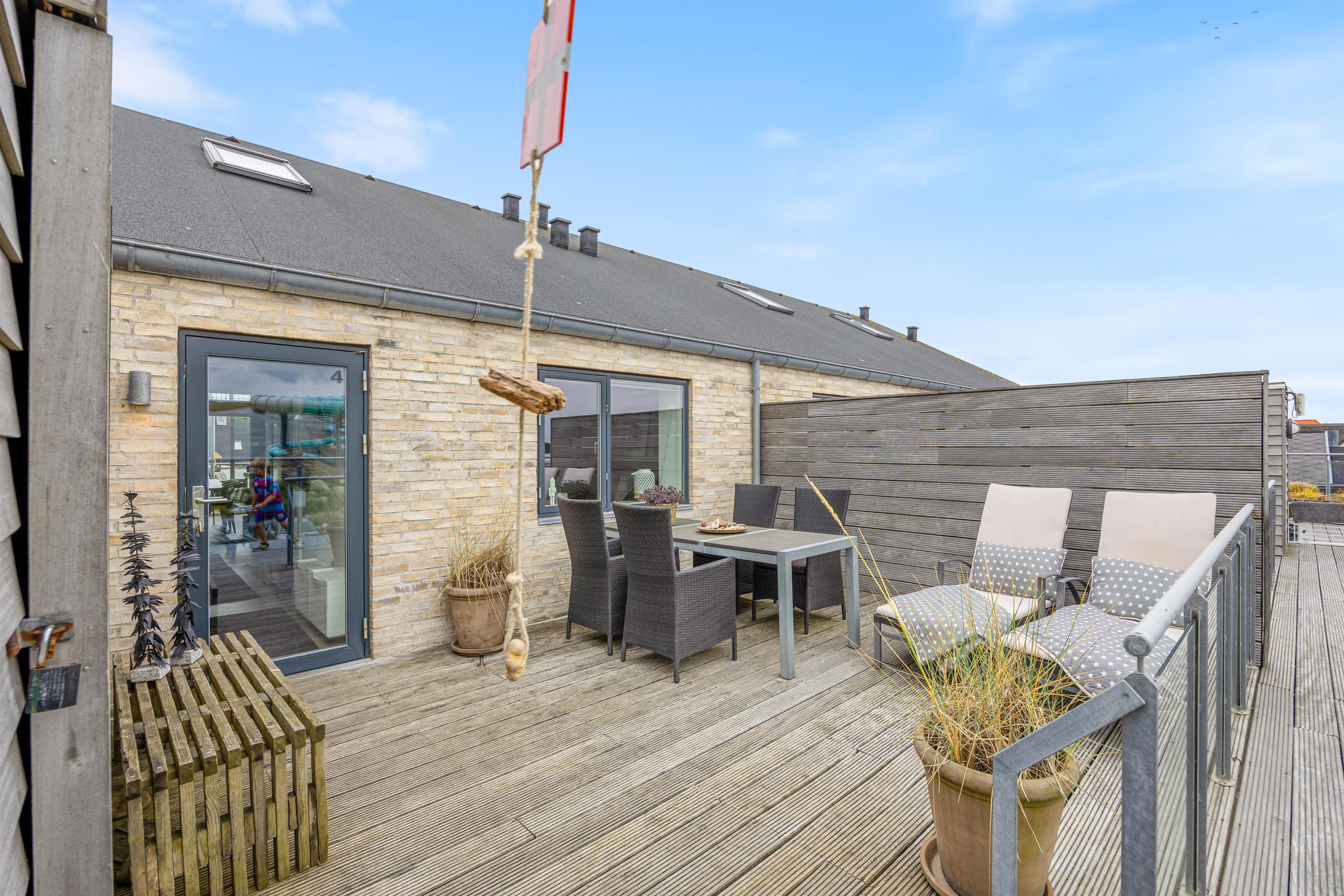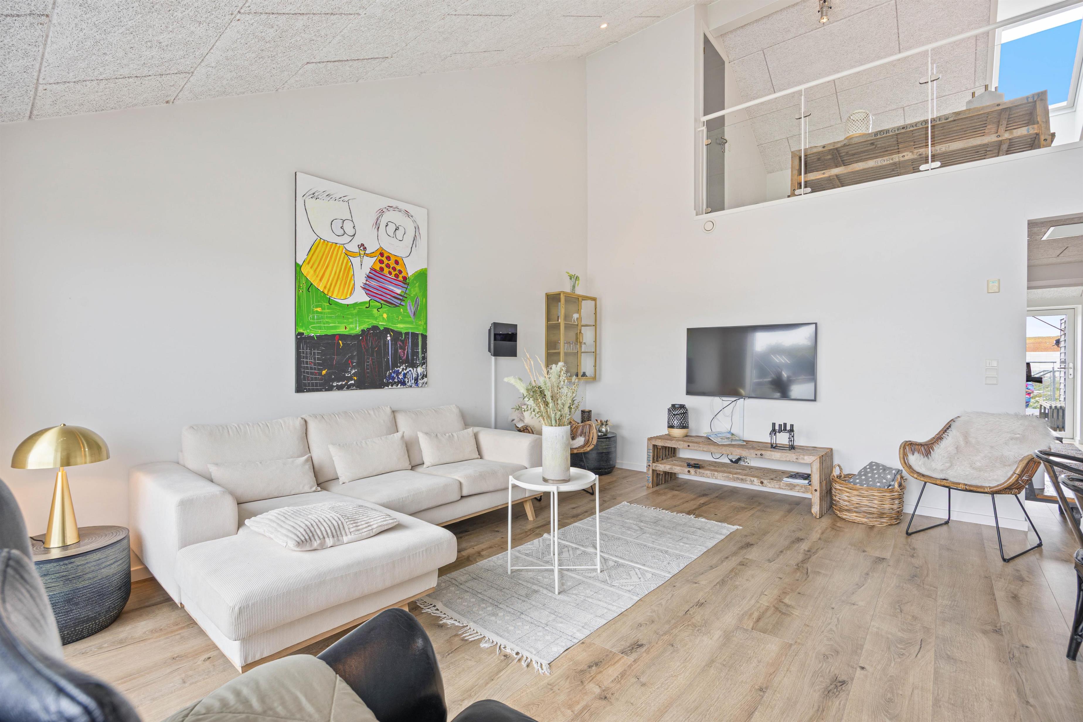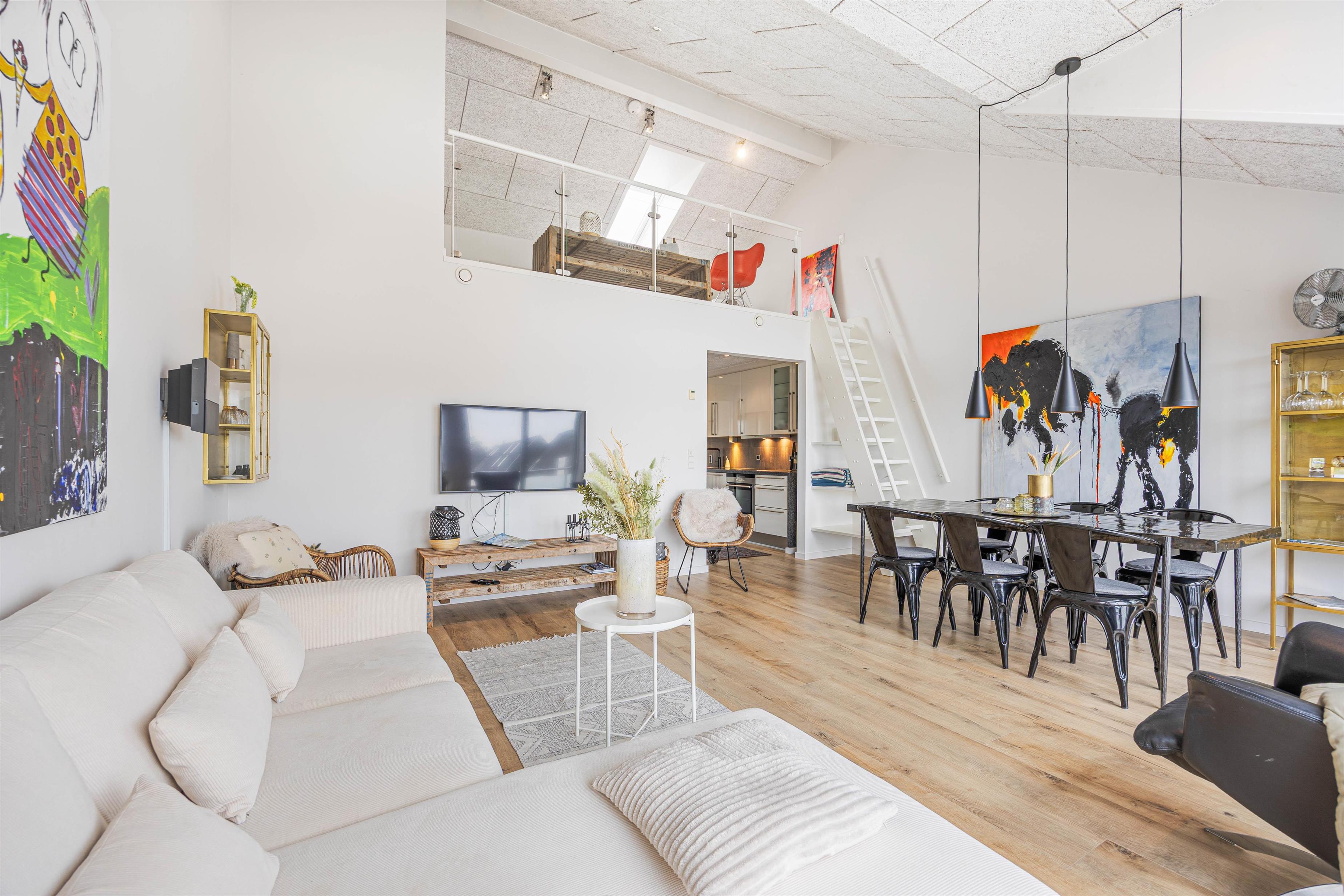 Fra det moderne køkken kan I nemt kommunikere med hinanden, mens I laver mad, og skabe dejlige ferieminder sammen. Ferielejligheden er badet i dejligt lysindfald takket være store vinduer. Loftet til kip tilføjer en fornemmelse af rummelighed og luftighed, hvilket kun forstærker den generelle feriestemning, der præger hver eneste krog af ferielejligheden. Ferielejligheden har også genvex-anlæg, så I er sikret et fantastisk indeklima under opholdet.