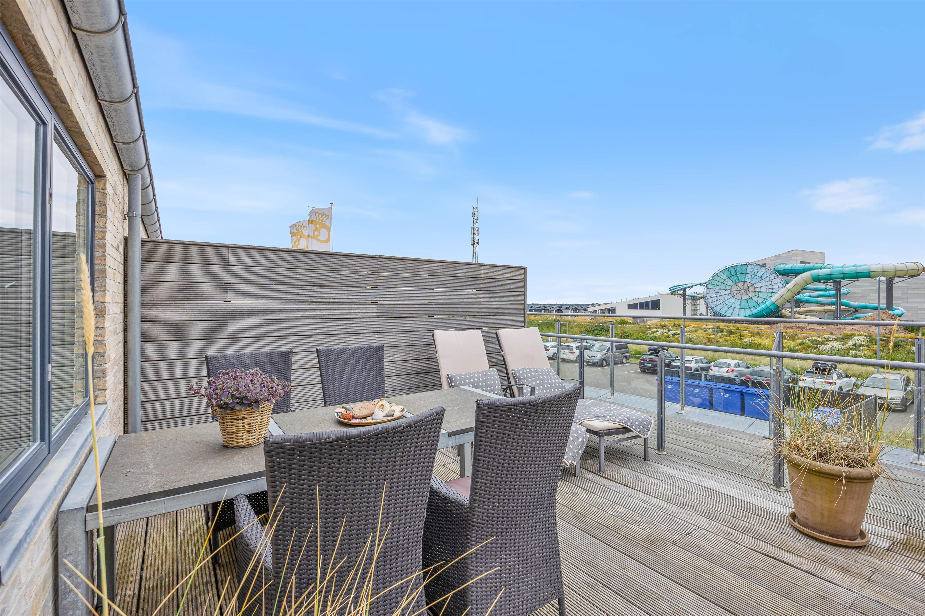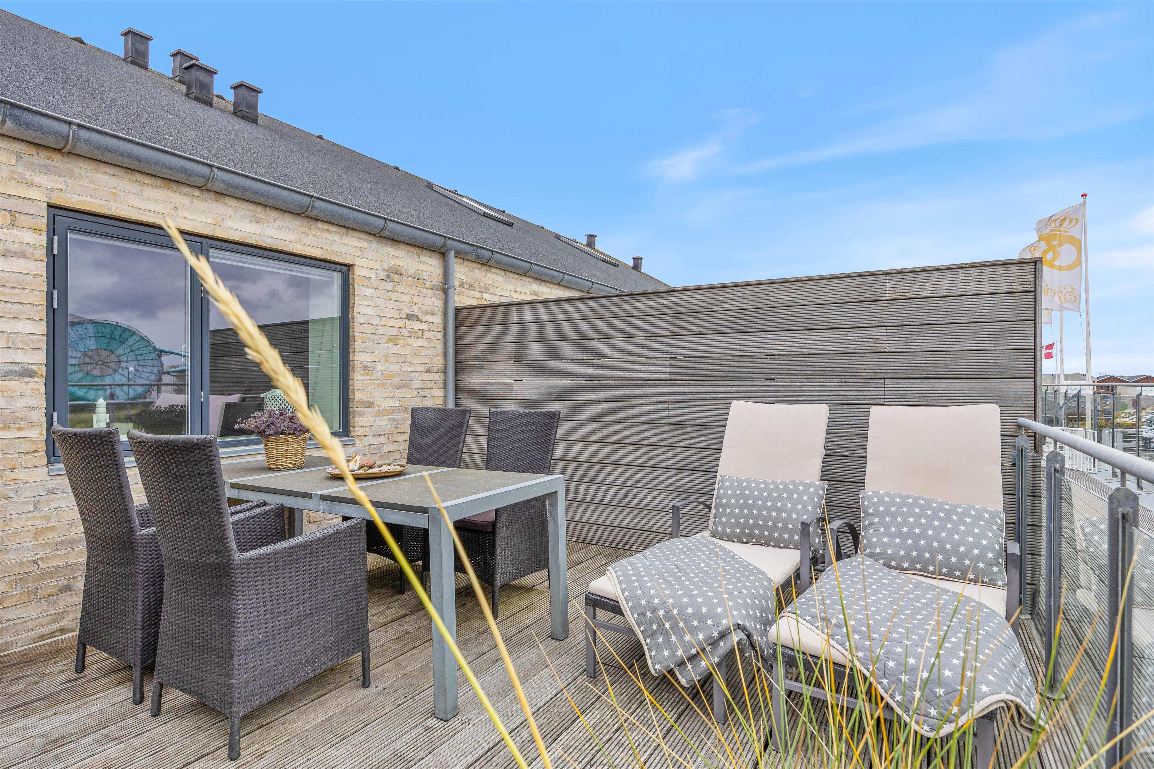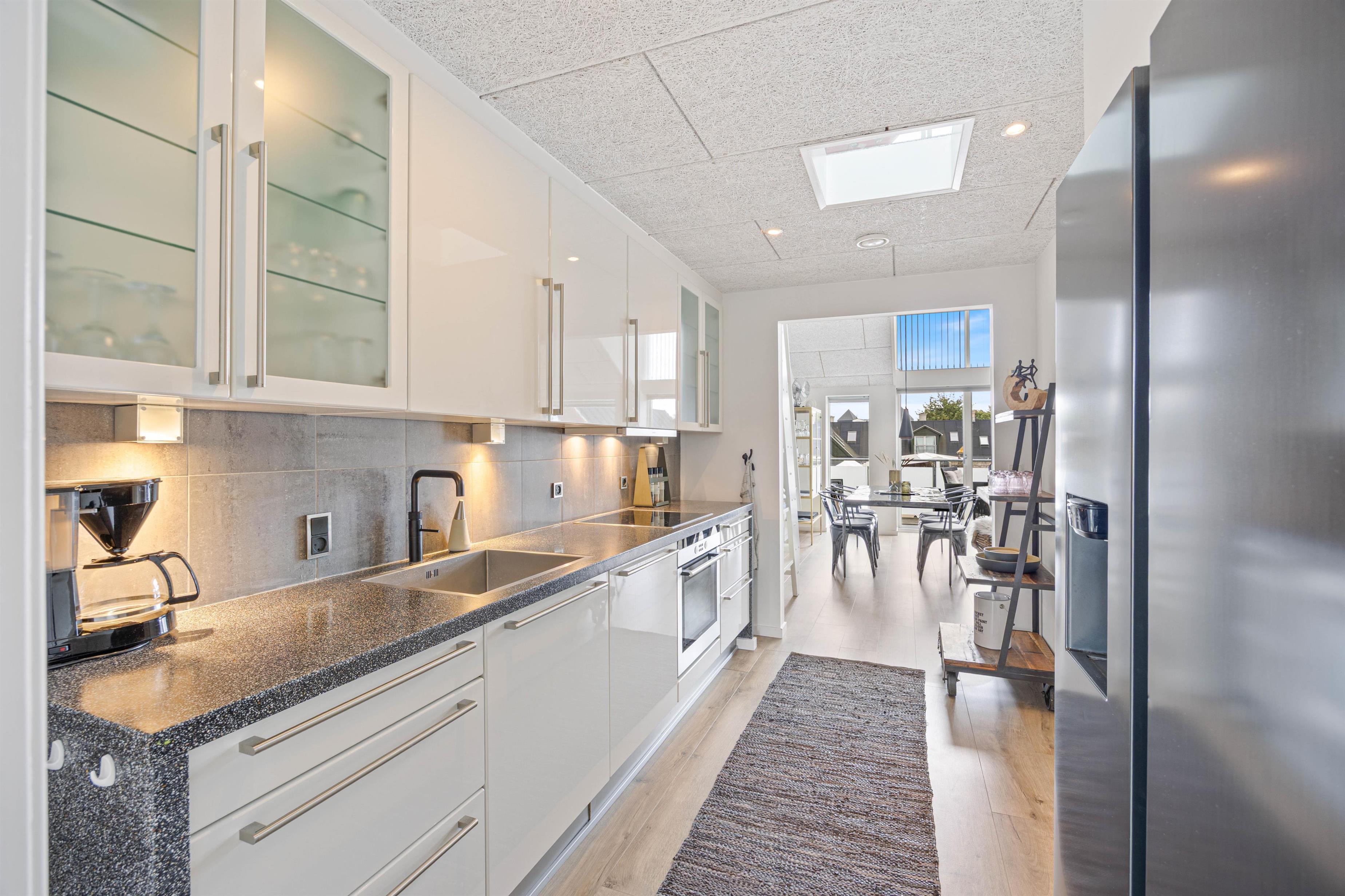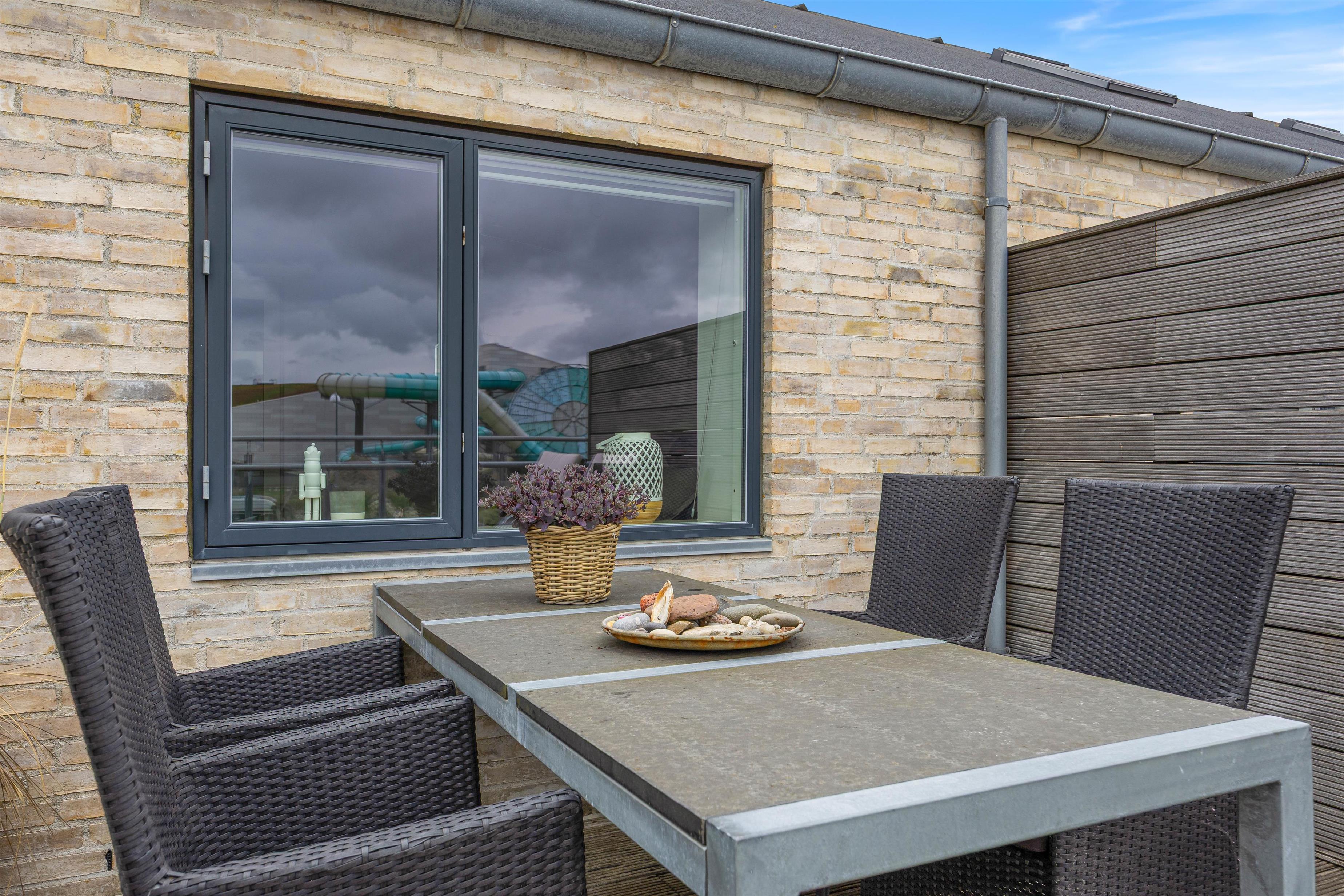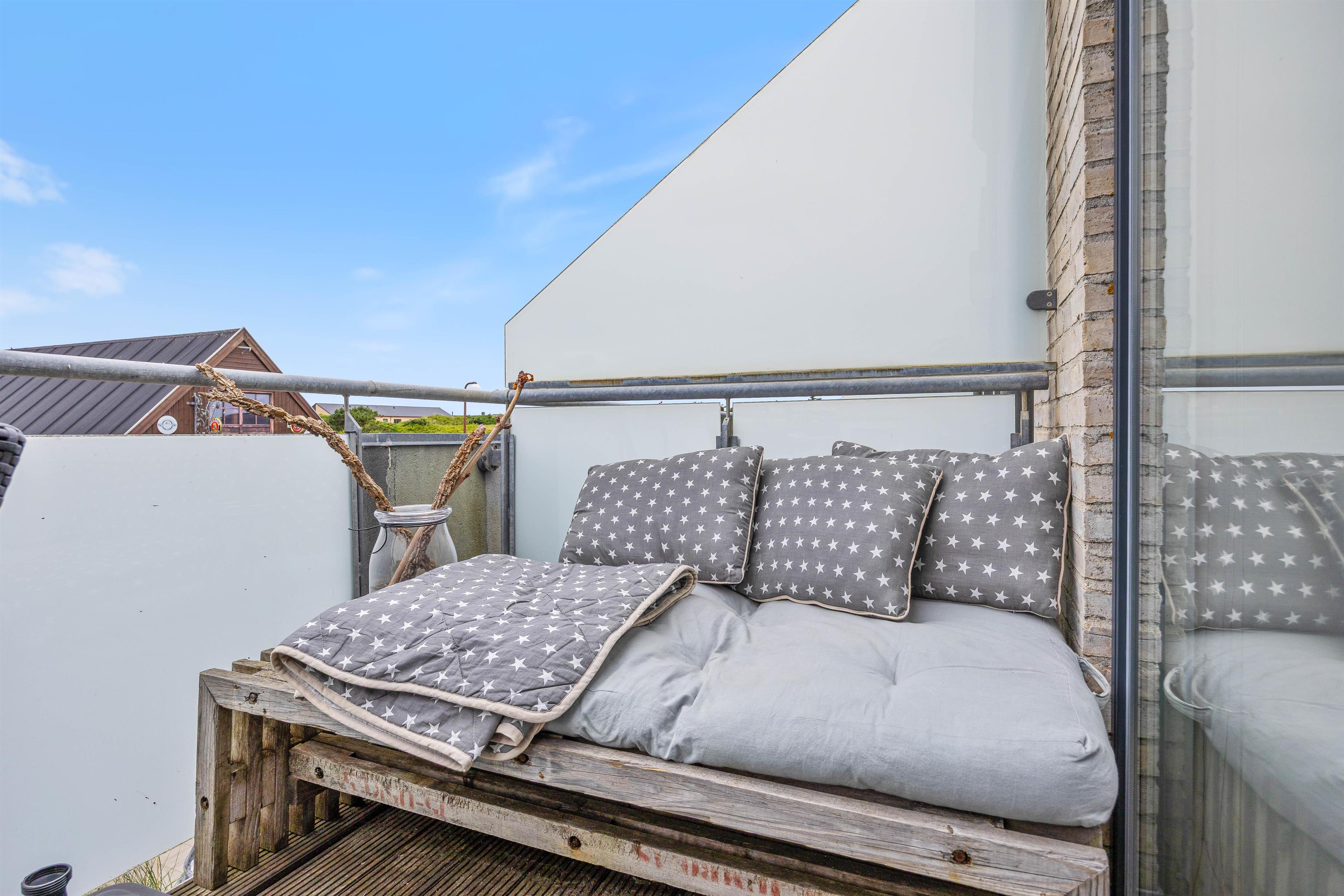 Fra det moderne køkken kan I nemt kommunikere med hinanden, mens I laver mad, og skabe dejlige ferieminder sammen. Ferielejligheden er badet i dejligt lysindfald takket være store vinduer. Loftet til kip tilføjer en fornemmelse af rummelighed og luftighed, hvilket kun forstærker den generelle feriestemning, der præger hver eneste krog af ferielejligheden. Ferielejligheden har også genvex-anlæg, så I er sikret et fantastisk indeklima under opholdet.