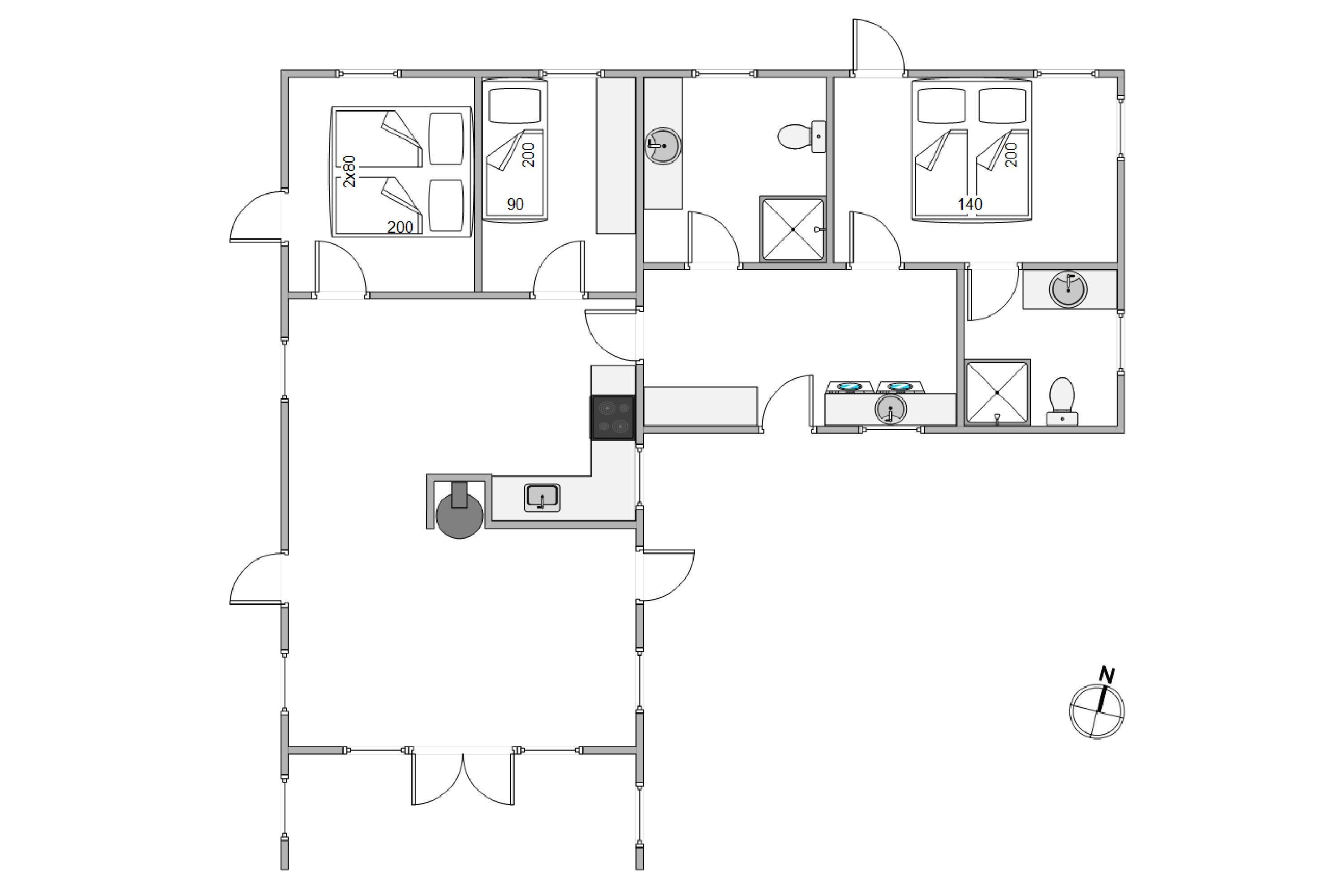 Et praktisk og energibesparende luft-til-vand- varmesystem sørger året rundt for den rigtige temperatur. Feriehuset er indrettet med tre soverum, to har dobbeltsenge og det sidste en enkeltseng. De to badeværelser har begge gulvvarme og med både vaskemaskine og tørretumbler, er det ingen sag at holde ferie på denne adresse.