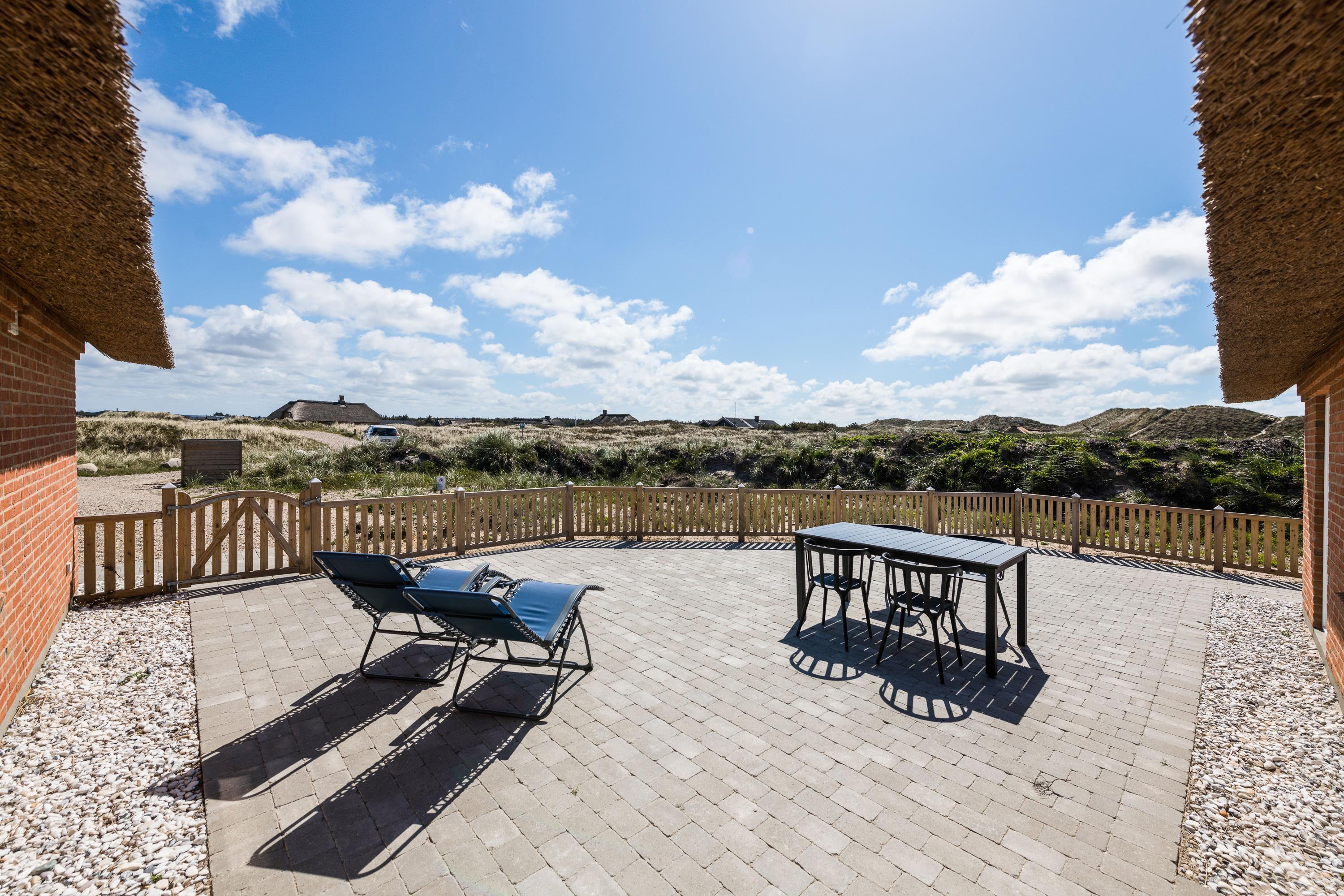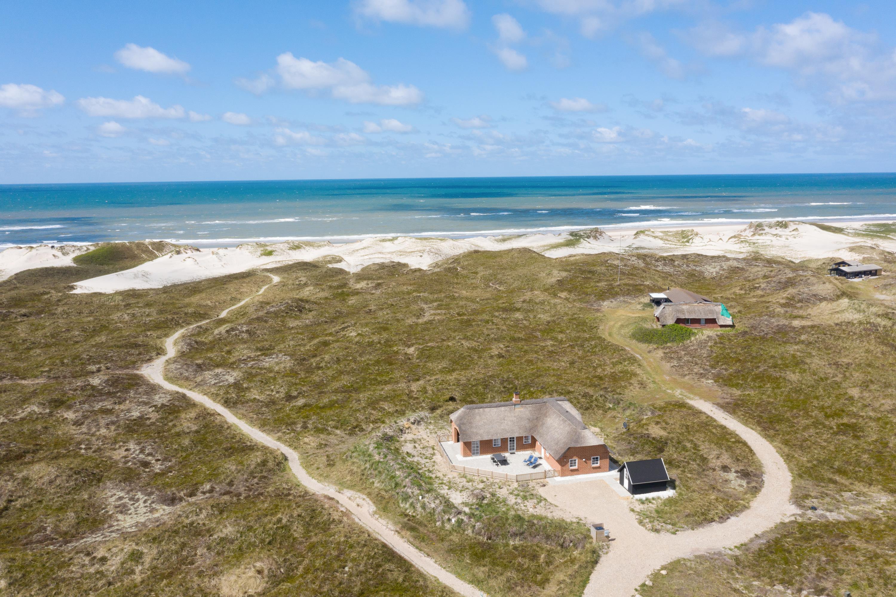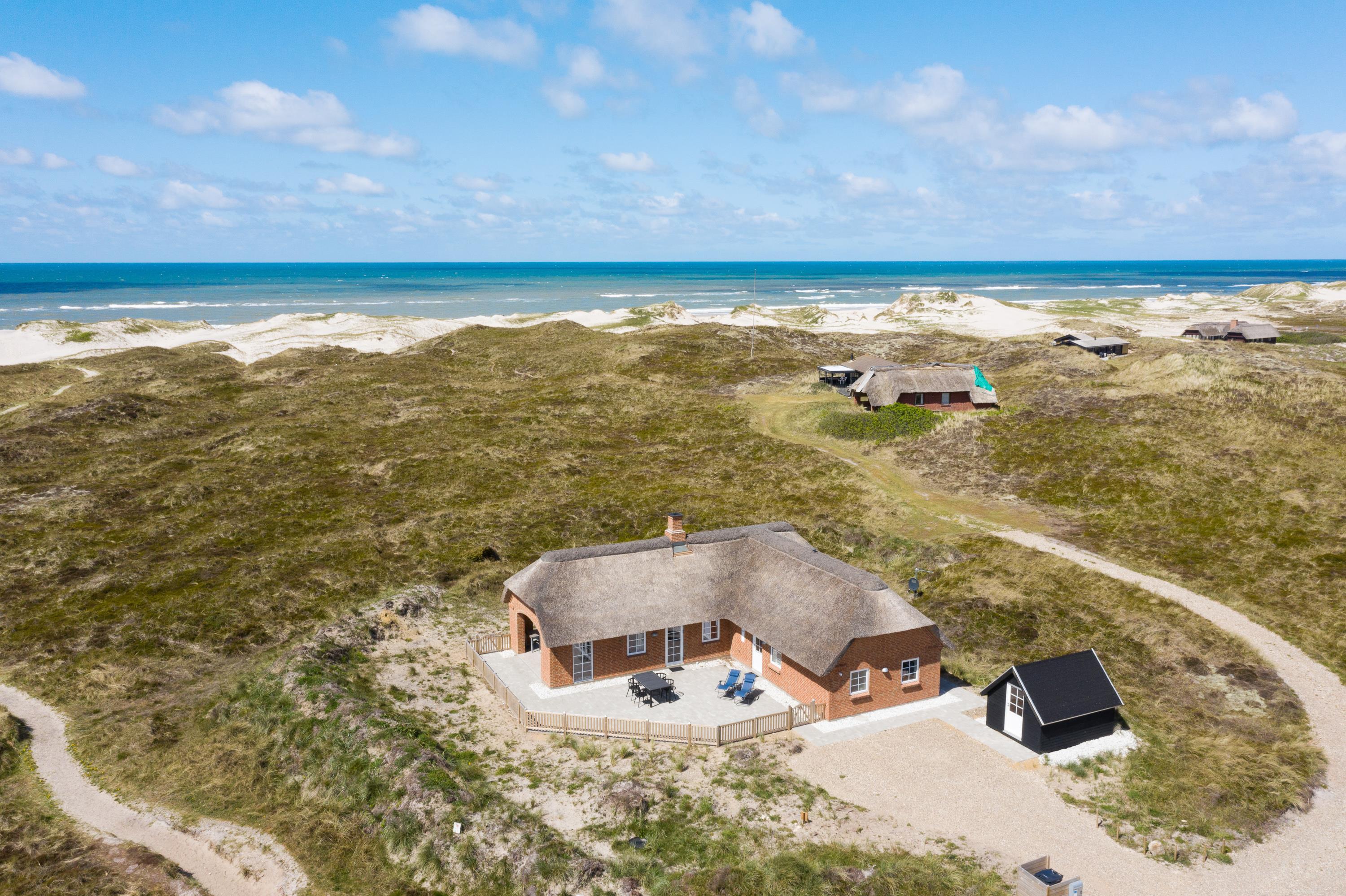 Udsigten taler for sig selv. Husets store terrasse ligger optimalt, så I både kan nyde solen, udsigten og har læ, og med et dejligt overdækket område foran stuen, er der ingen grund til at søge ind, når dagen går på hæld og duggen falder eller det drypper lidt. Beliggende i yderste klitrække med en grund helt ned til stranden er det ingen sag, lige at smutte ned og tage en afkølende dukkert engang imellem, men ellers bare slappe af på liggestolen i læ af huset. Rigtigt dejligt er det desuden, at terrassen er aflukket – så kan hundeejeren også slappe af.