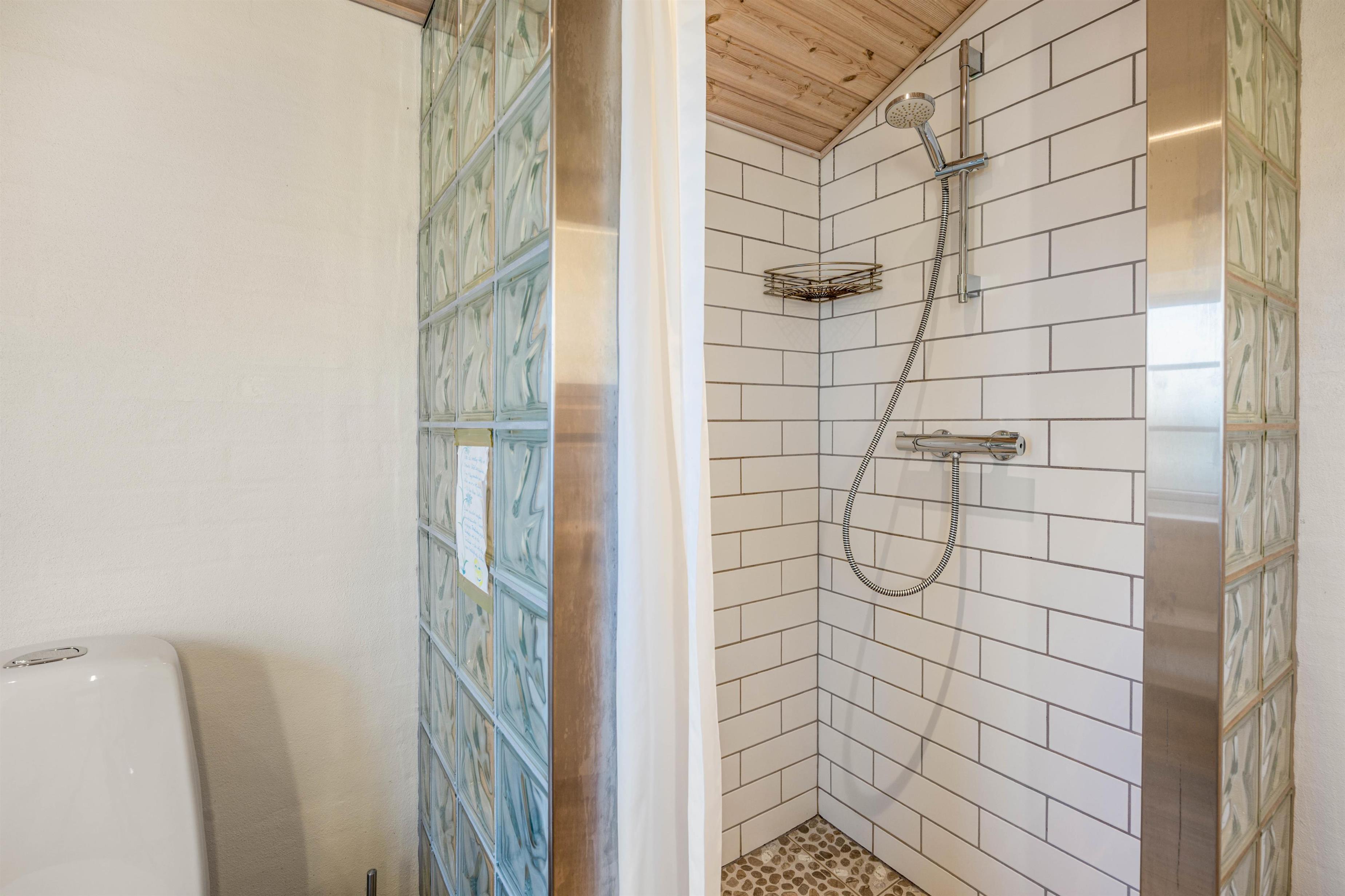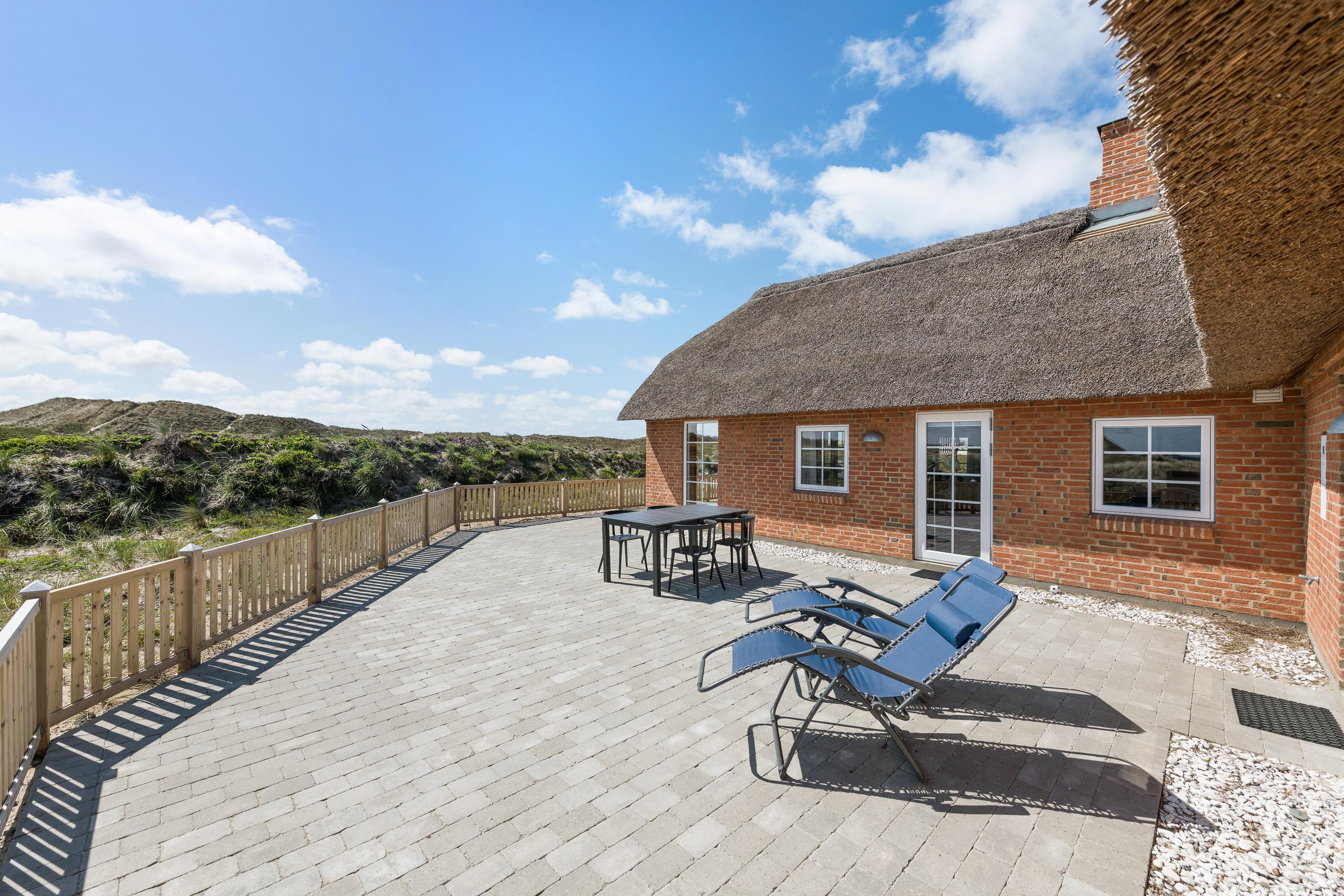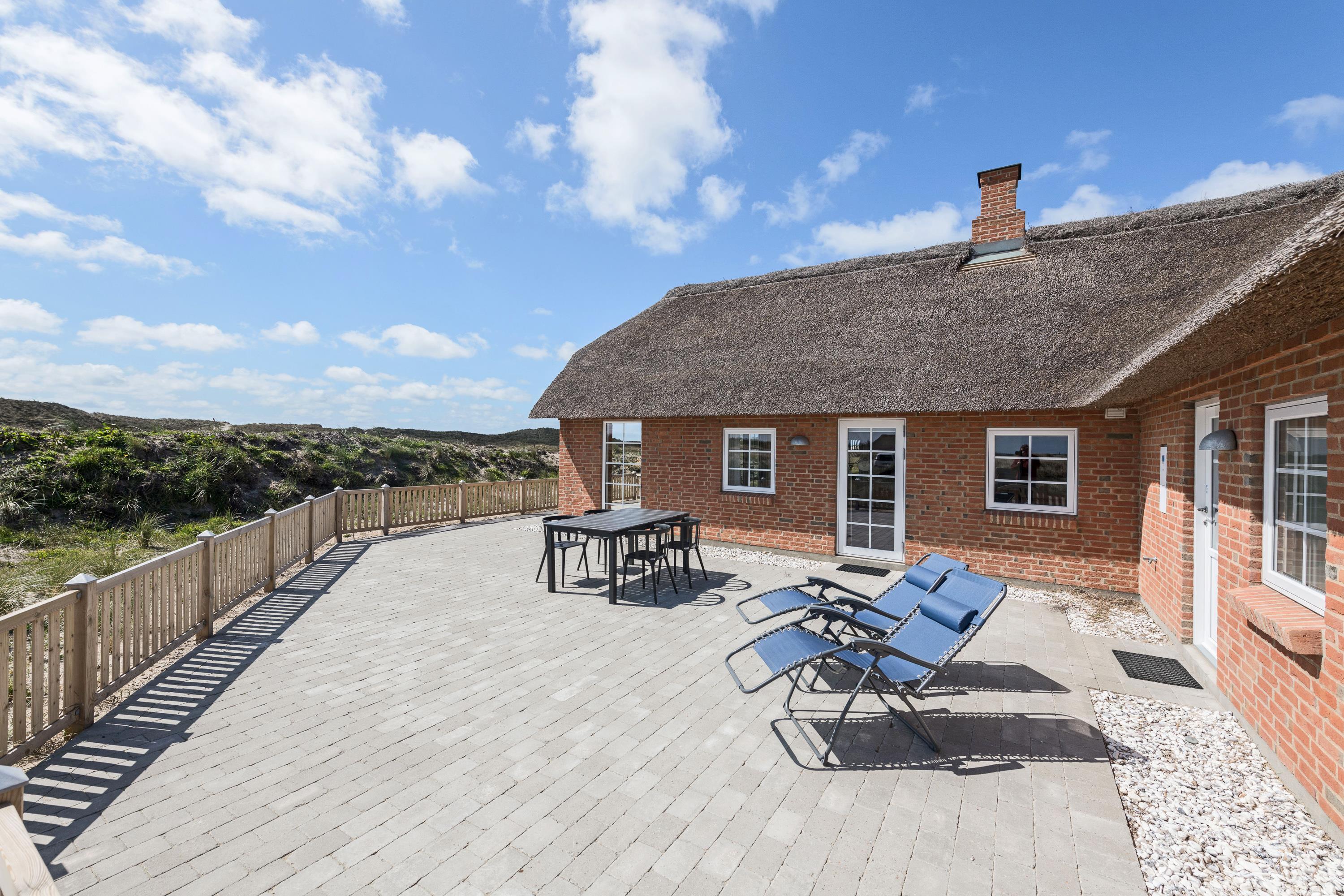 Udsigten taler for sig selv. Husets store terrasse ligger optimalt, så I både kan nyde solen, udsigten og har læ, og med et dejligt overdækket område foran stuen, er der ingen grund til at søge ind, når dagen går på hæld og duggen falder eller det drypper lidt. Beliggende i yderste klitrække med en grund helt ned til stranden er det ingen sag, lige at smutte ned og tage en afkølende dukkert engang imellem, men ellers bare slappe af på liggestolen i læ af huset. Rigtigt dejligt er det desuden, at terrassen er aflukket – så kan hundeejeren også slappe af.