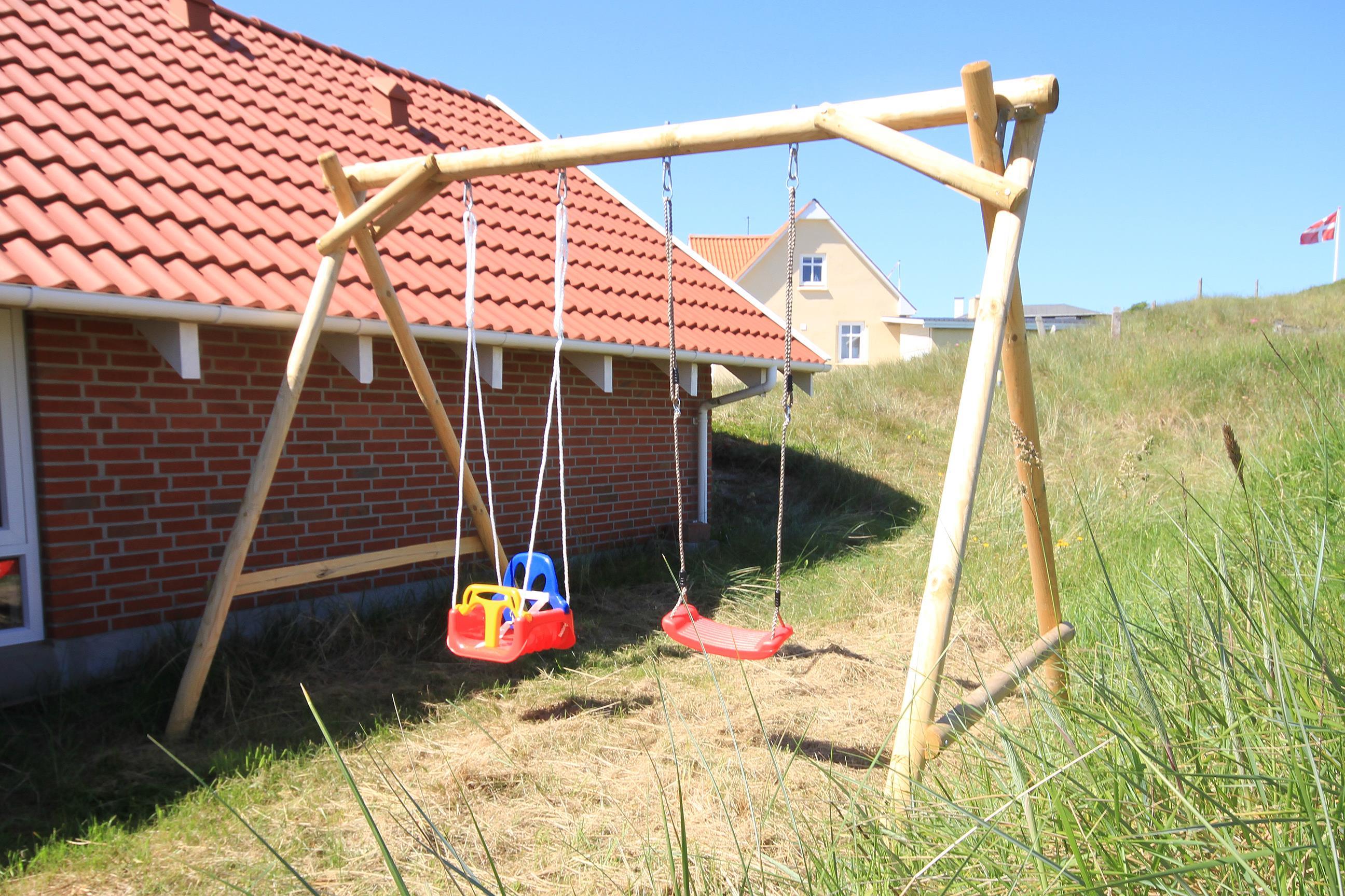 Der er selvfølgelig også tænkt på børnene. Derfor er der både sandkasse og gyngestativ til dem, hvor de kan lege og hygge sig dagen lang. Som dagens sidste sandslot bliver bygget, kan I klargøre aftensmaden på grillen.