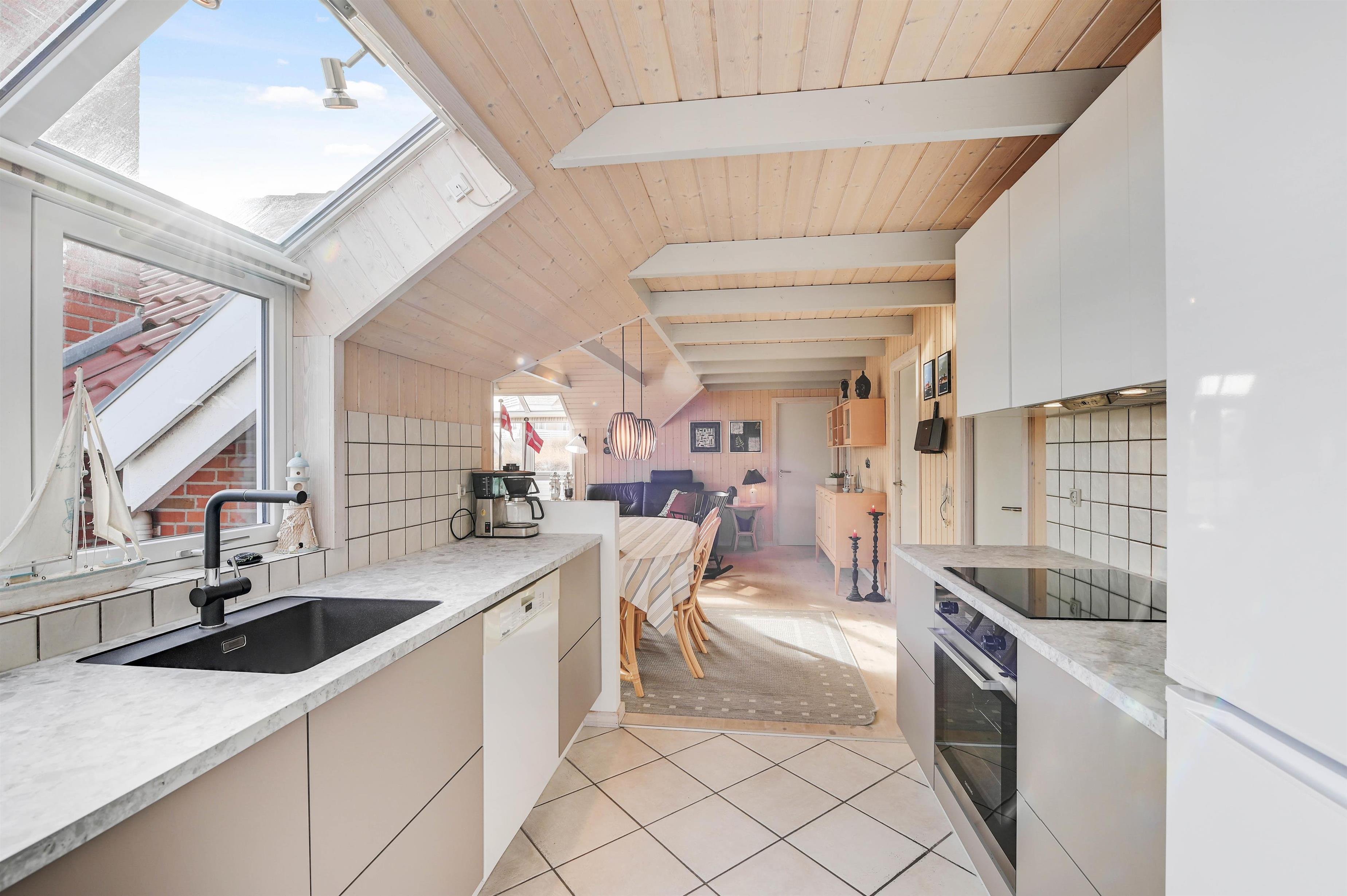 Feriehuset er senest renoveret i 2021, hvor det har fået nyt køkken. I køkkenet er der alt til feriens amatørkok. Selvfølgelig er der også en opvaskemaskine i køkkenet, så I ikke skal bruge jeres kostbare ferietid på opvasken. Desuden er der i sommerhuset også både vaskemaskine og tørretumbler.