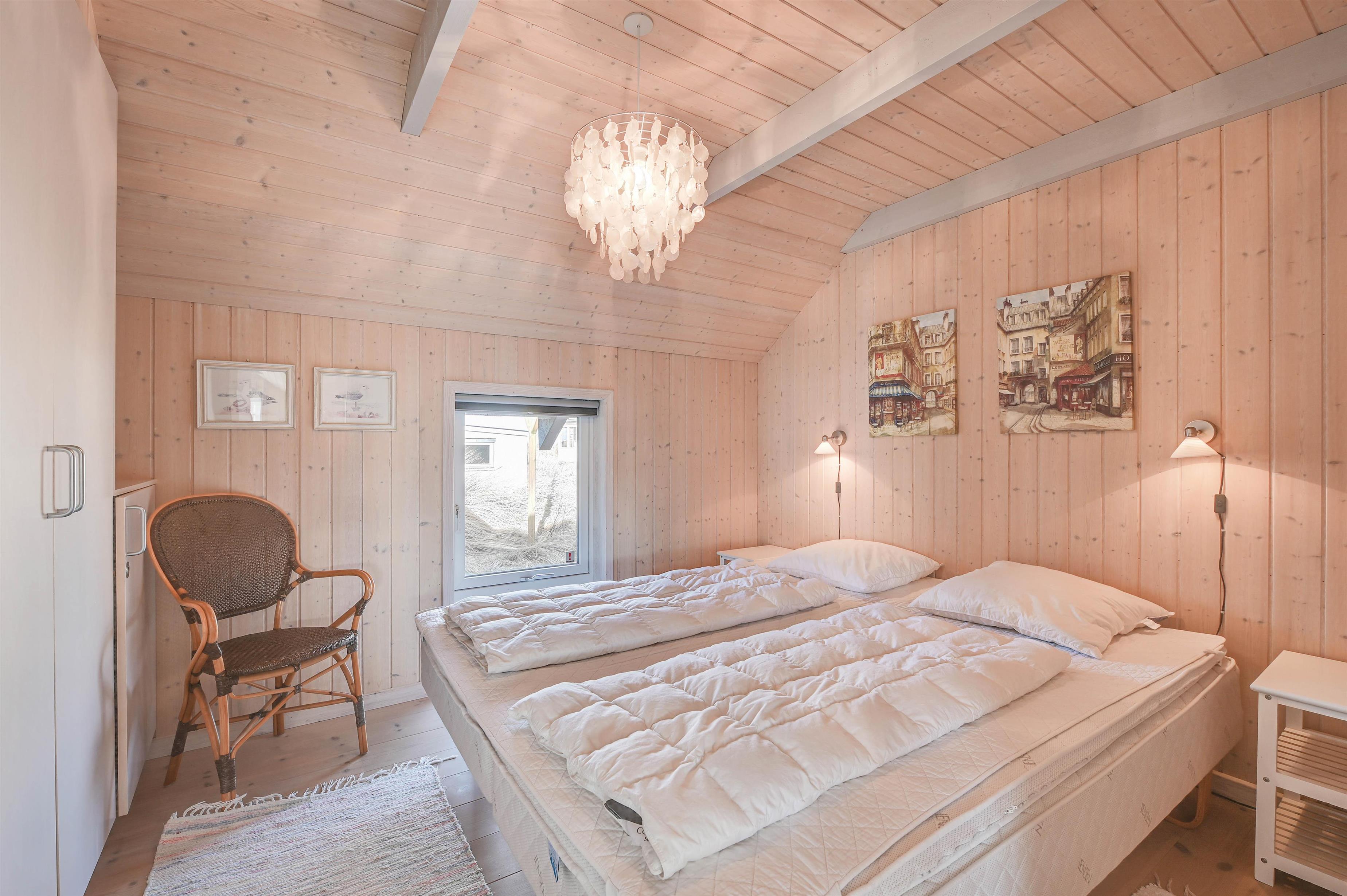 I sommerhuset er der ingen risiko for kødannelse til toilettet – her har I nemlig både et badeværelse og et gæstetoilet. På badeværelset kan I også holde en wellness-session i spaen og saunaen – der er garanti for masser af afslapning.