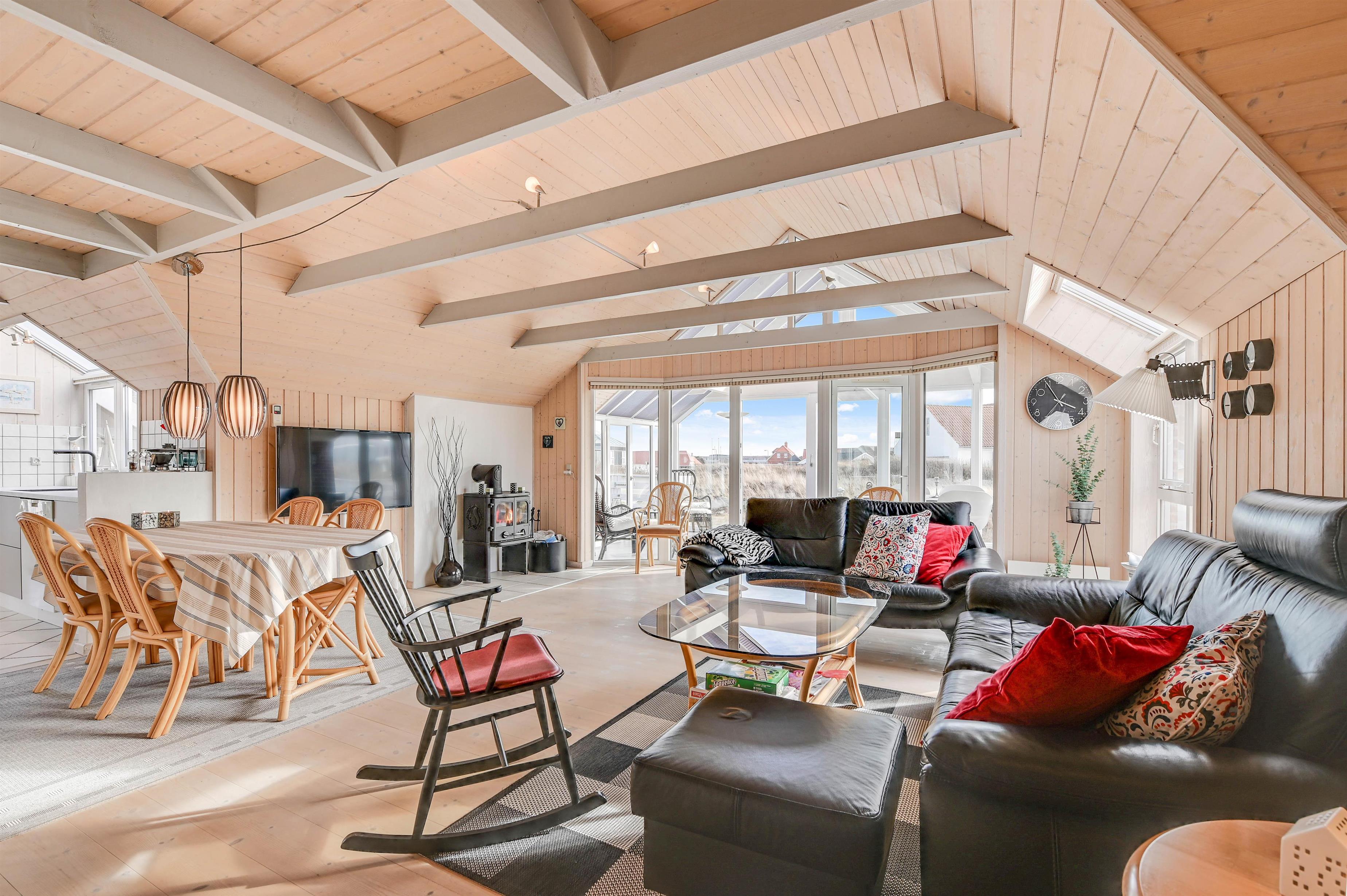 Kun 200 meter fra sommerhuset, bag en enkelt klitrække, finder I den skønneste sandstrand, som indbyder til badning, afslapning eller friske traveture. Dermed er sandstrandene og Vesterhavet også et oplagt udflugtspunkt på alle tider af året.