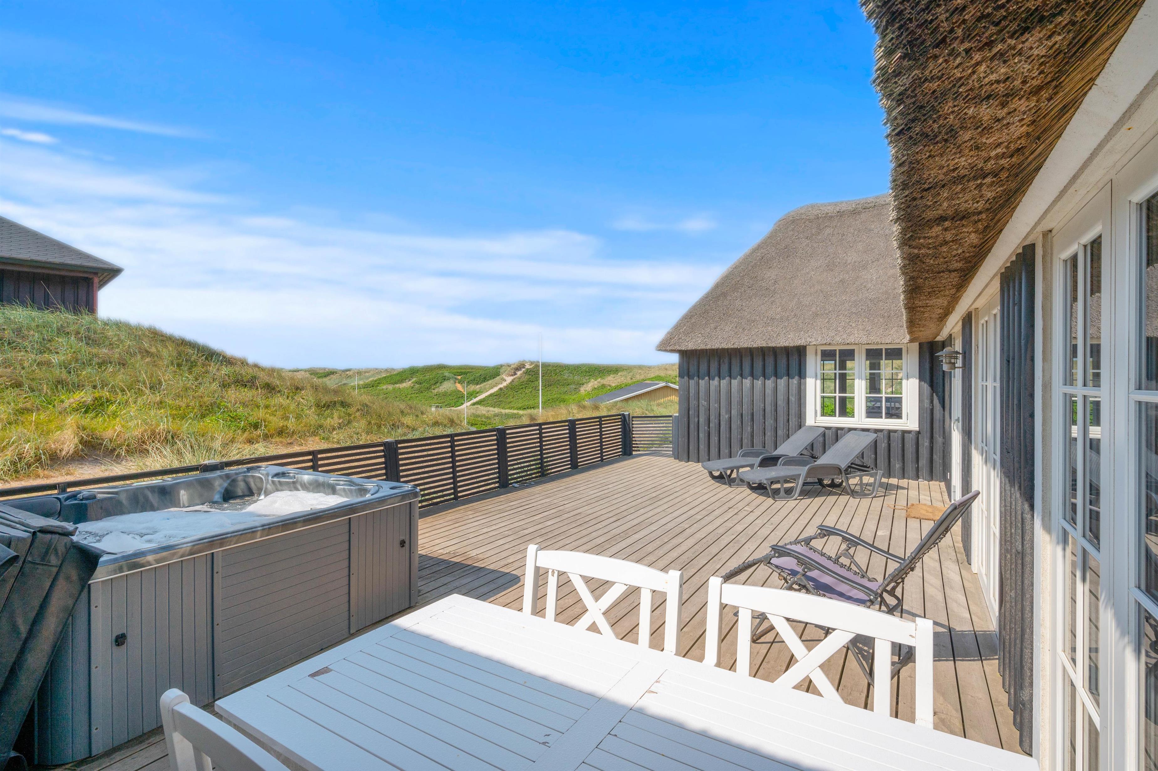 Fra den dejlige klit bagerst på sommerhusgrunden kan I nyde de dejlige solnedgange - så bliver det ikke meget bedre! Der er altså masser af udflugtsmuligheder lige i nærheden, men der er selvfølgelig også mulighed for at tage en slap af-dag derhjemme. På den store terrasse finder alle 12 feriegæster nemt en plads i solen, og der er både liggestole og havemøbler til jer.