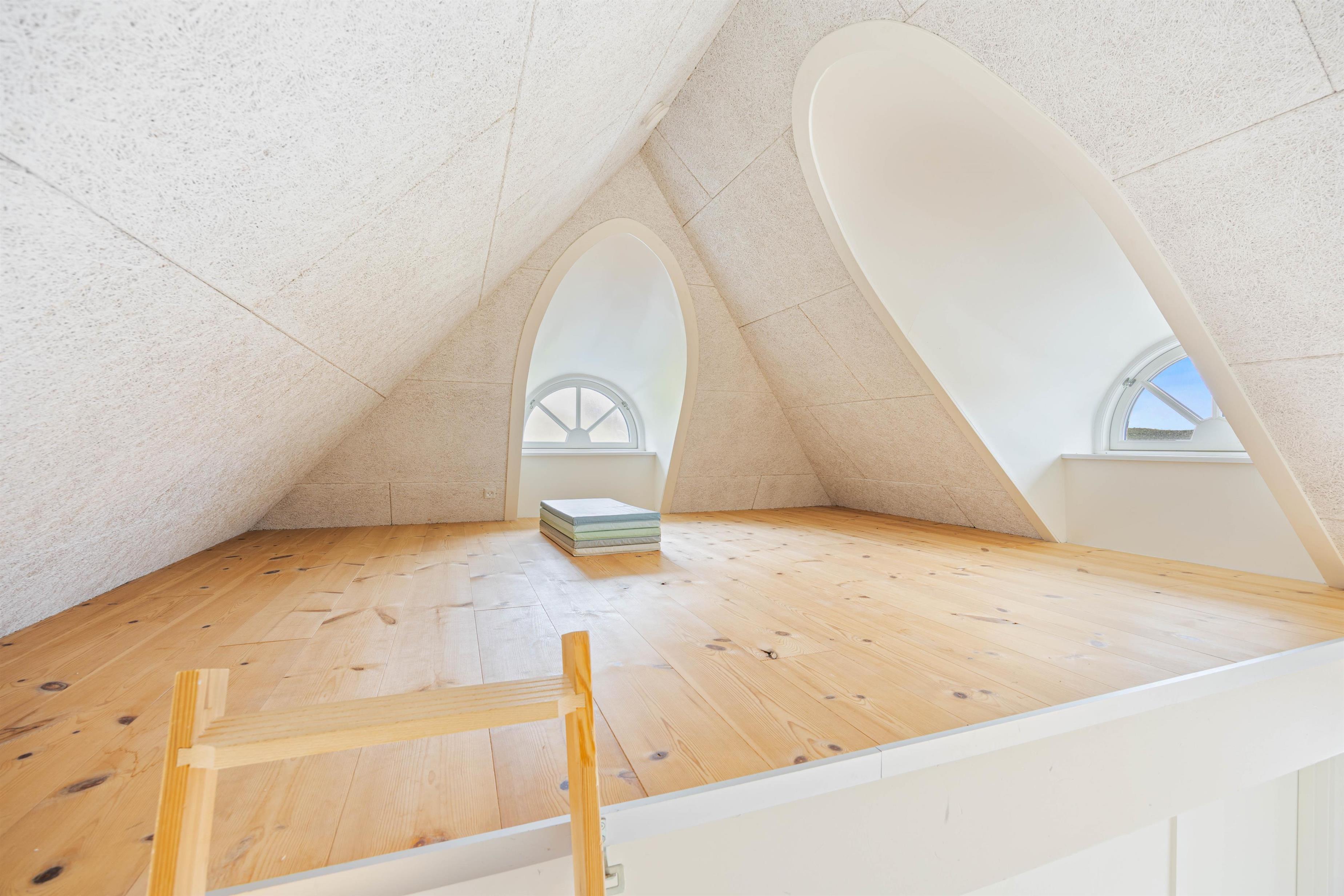 Det skønne feriehus i Søndervig er bygget i 2019 og opfylder selv den mest kræsne feriegæsts drømme. Kvalitet er et nøgleord i den moderne og stilfulde indretning, og de lyse farver på vægge og lofter samt de store vinduespartier skaber en behagelig atmosfære. Indretning er simpel, men utrolig gennemført og stilfuld. De synlige loftsbjælker bidrager virkelig også til den hyggelige atmosfære.