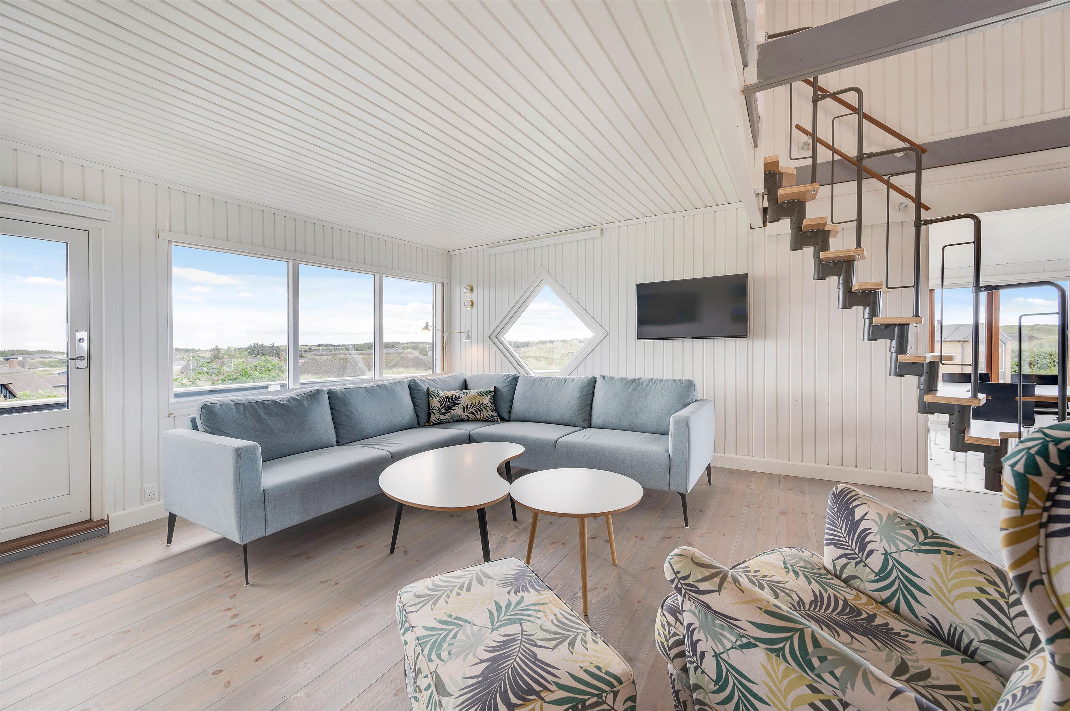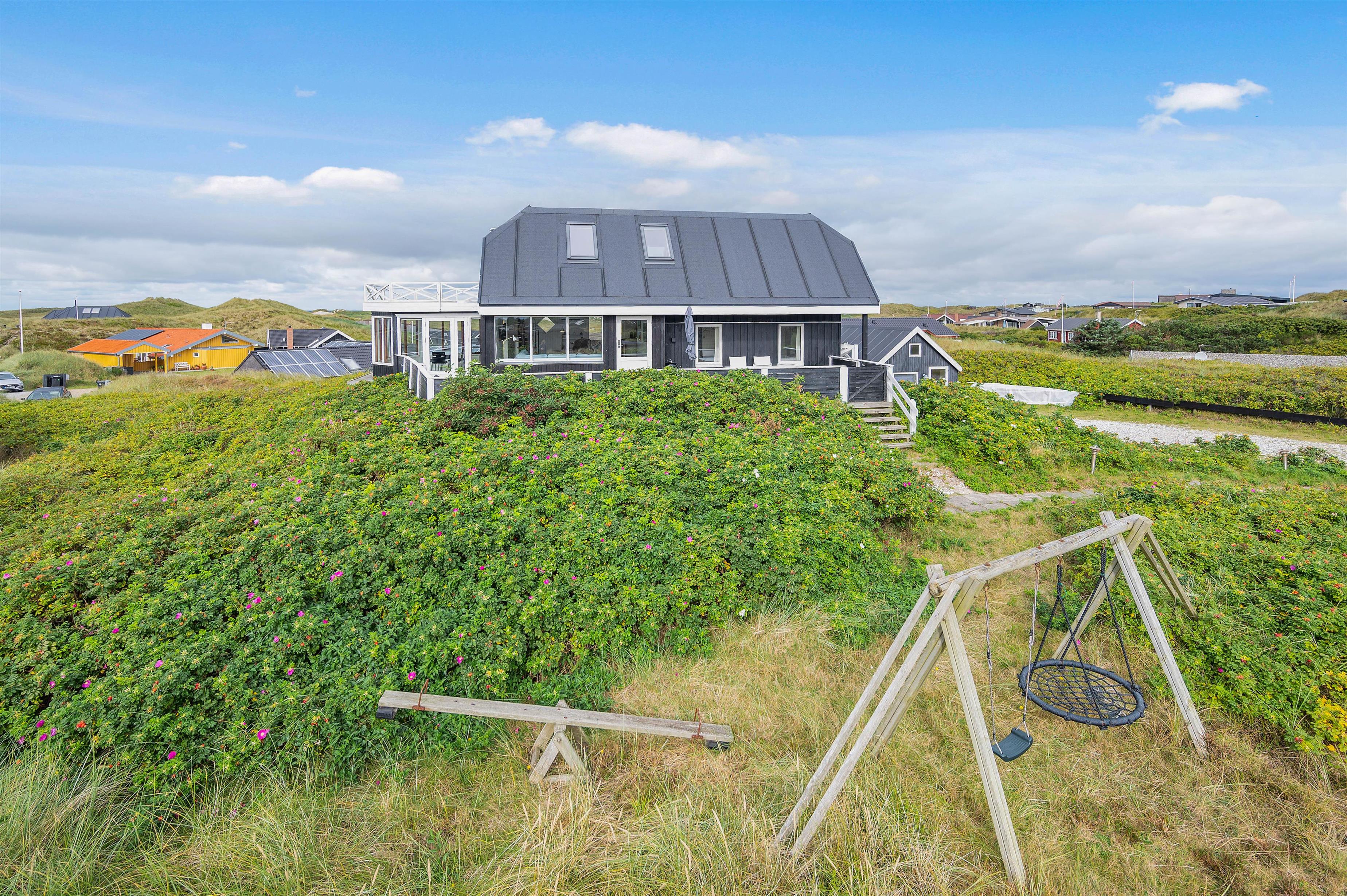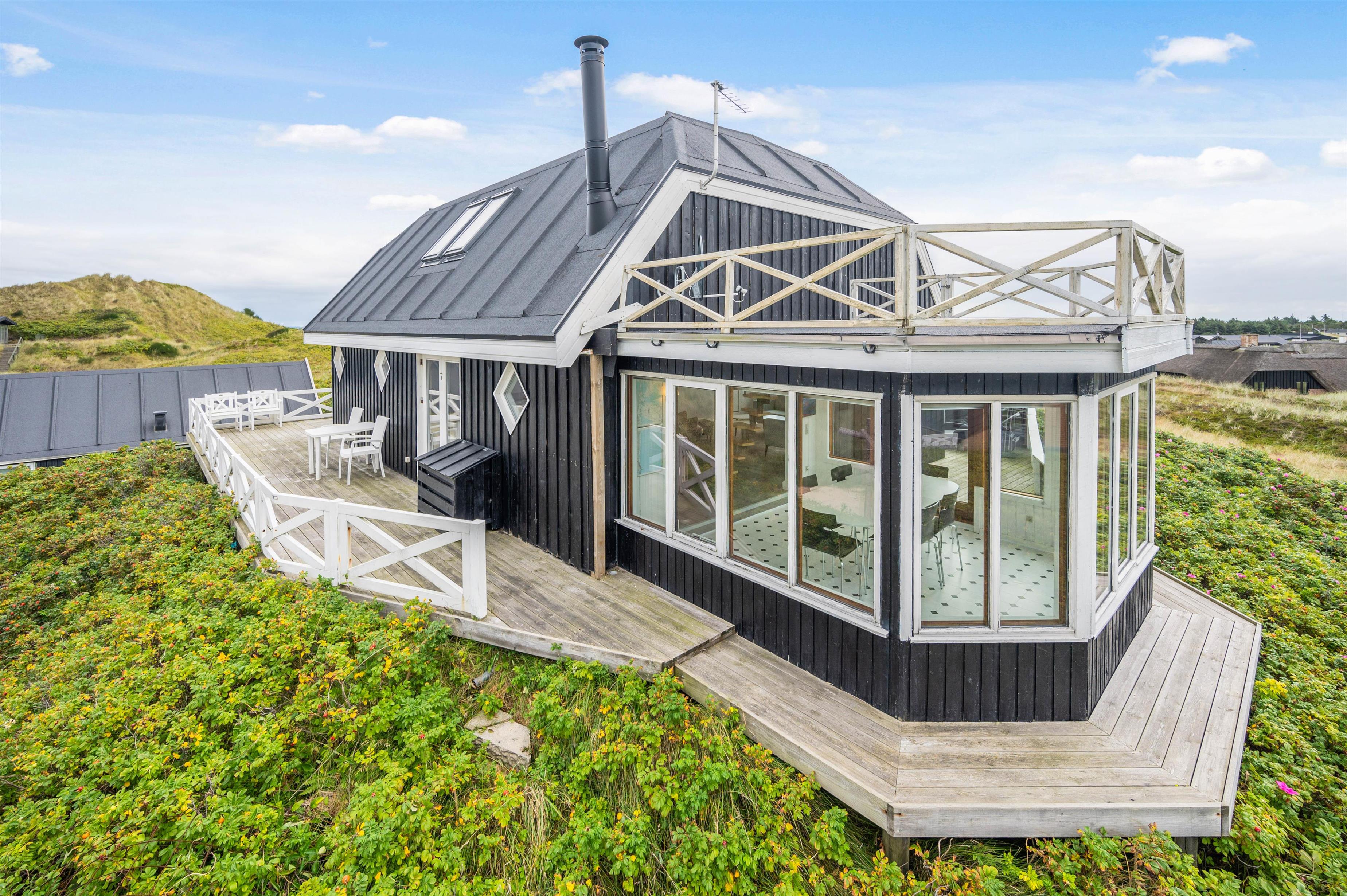 Dette dejlige sommerhus i Søndervig til 4 personer ligger højt i klitlandskabet og har en enestående havudsigt fra husets rum og terrasser. Sommerhuset på Hvidbjergvej 91 har en god lukket terrasse og havestue. Sommerhuset er for jer, som elsker at holde ferie tæt på naturen, og som gerne vil have et feriehus med gode uderum og gode faciliteter. Der er kun 300 meter til det brusende Vesterhav, så det er oplagt med gåture langs stranden i det fine hvide sand.