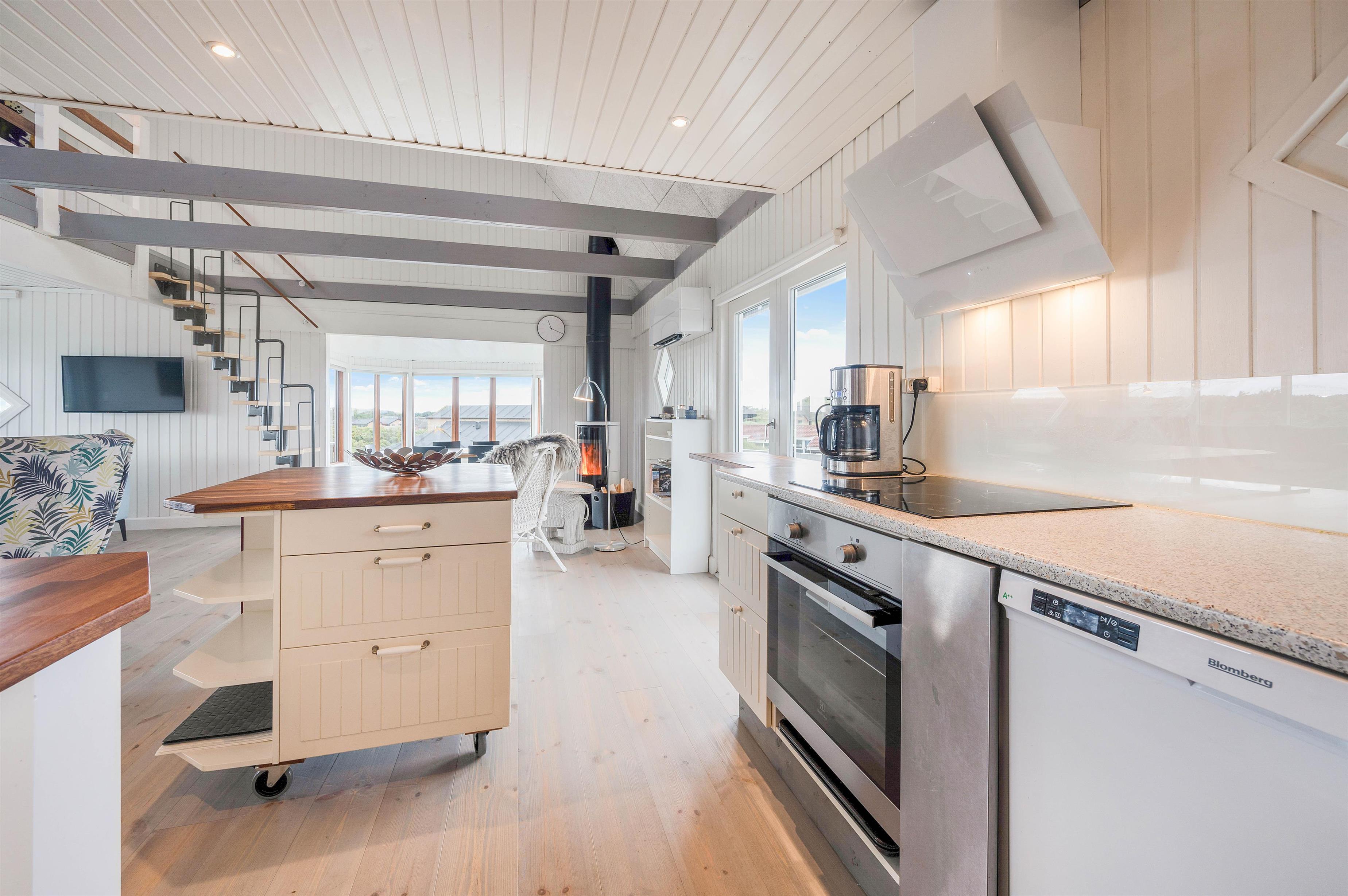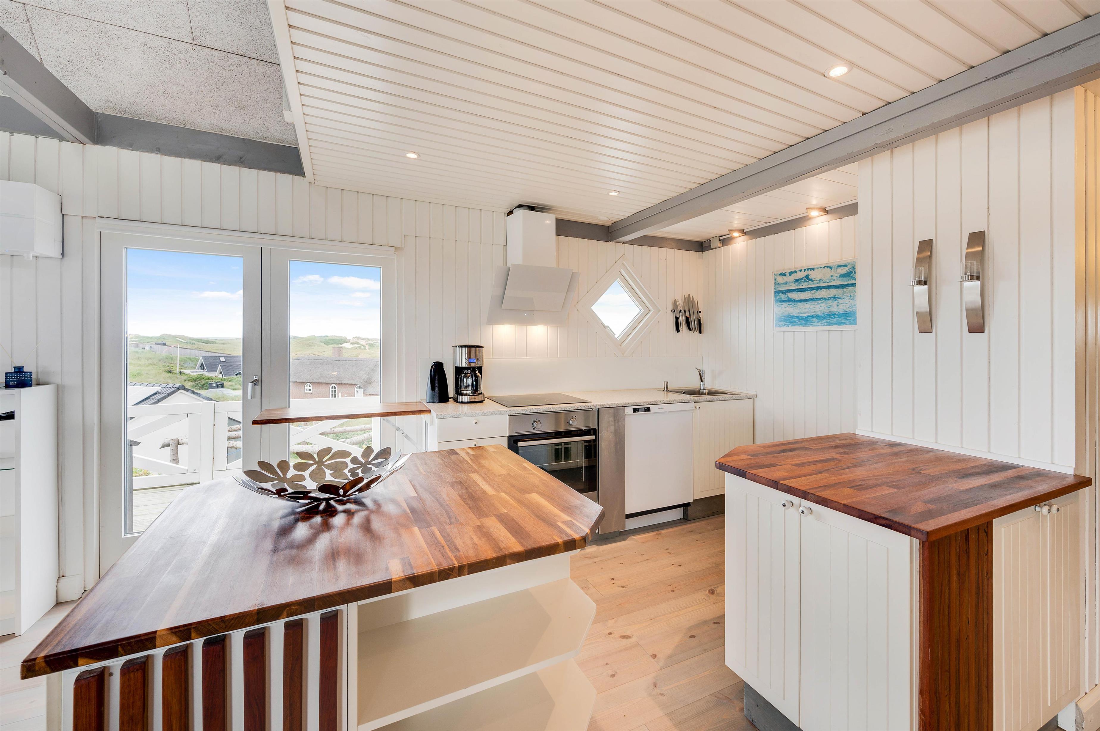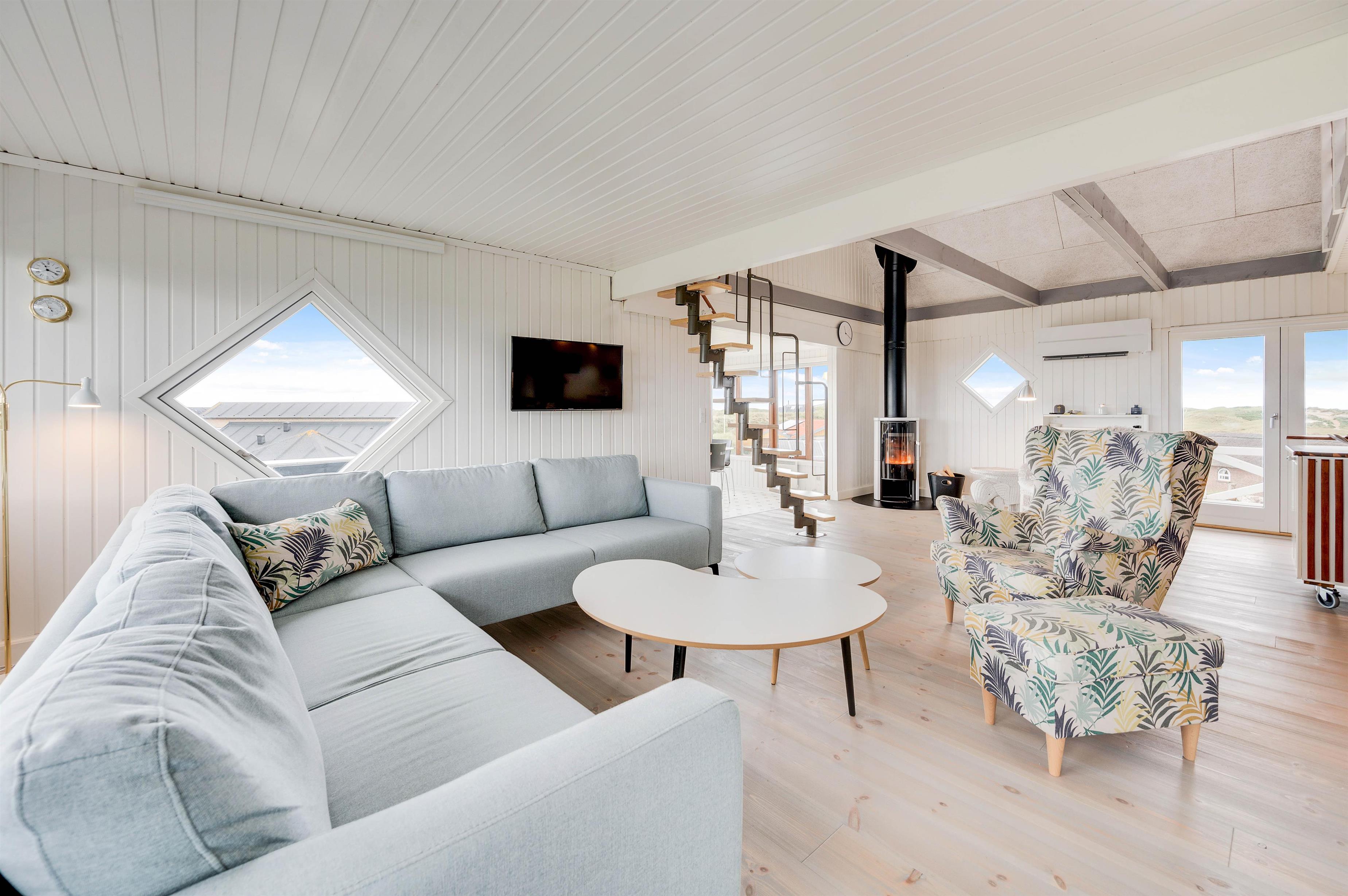 Dette dejlige sommerhus i Søndervig til 4 personer ligger højt i klitlandskabet og har en enestående havudsigt fra husets rum og terrasser. Sommerhuset på Hvidbjergvej 91 har en god lukket terrasse og havestue. Sommerhuset er for jer, som elsker at holde ferie tæt på naturen, og som gerne vil have et feriehus med gode uderum og gode faciliteter. Der er kun 300 meter til det brusende Vesterhav, så det er oplagt med gåture langs stranden i det fine hvide sand.
