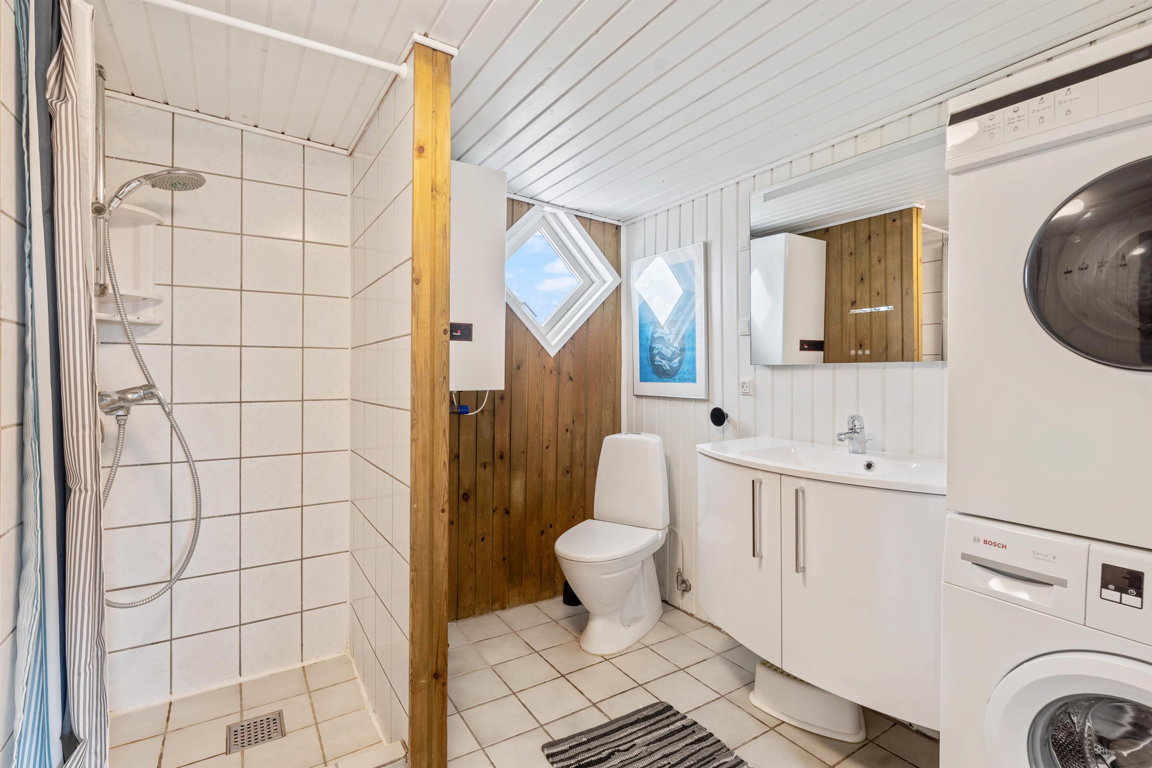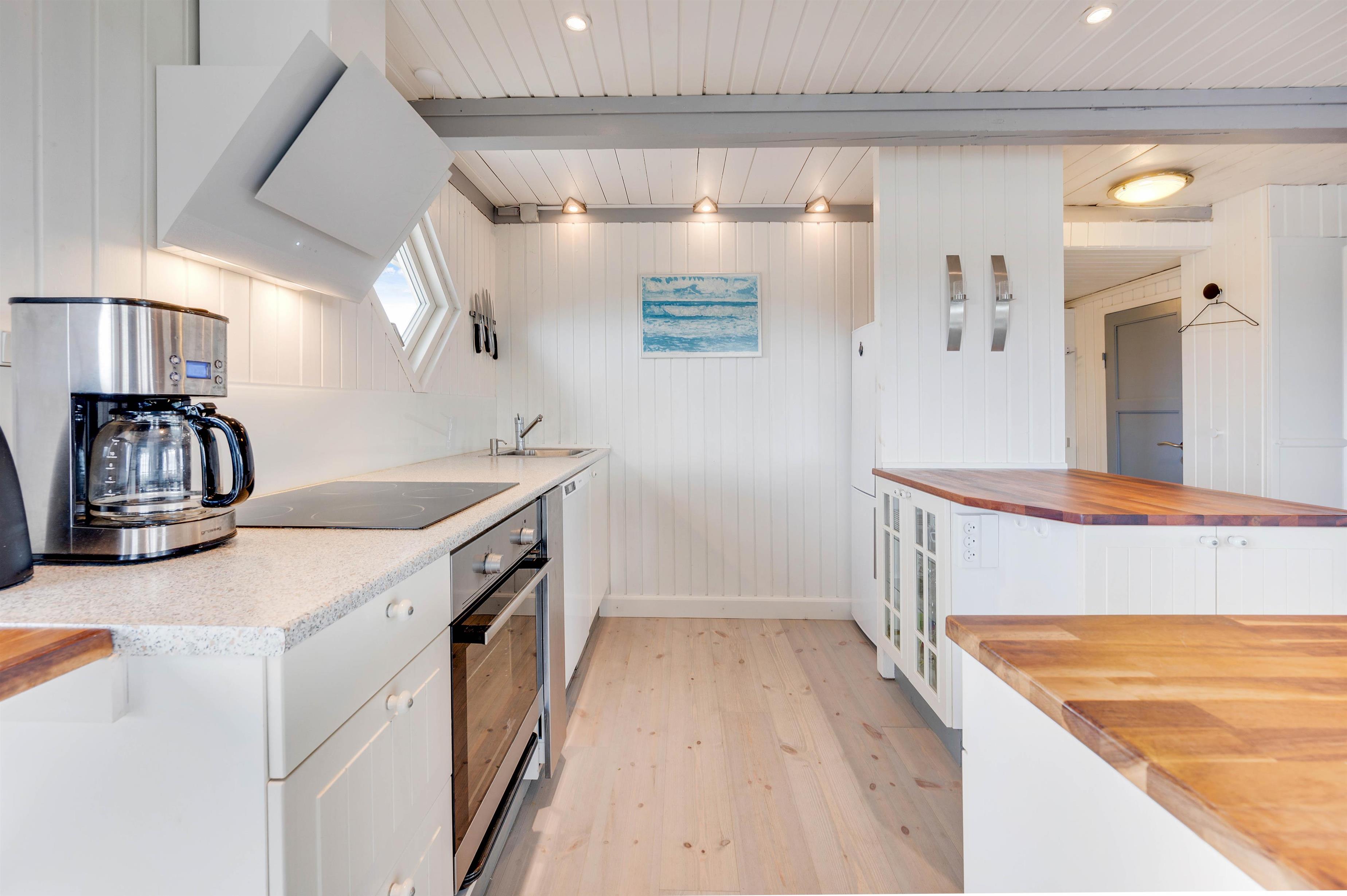 Når du træder ind i huset, får du fornemmelsen af et rigtigt sommerhus. Sommerhuset er blevet renoveret i 2021 og de hvide trævægge og de synlige loftbjælker skaber sammen med det fantastiske lys, der kommer ind i alle feriehusets rum, en rigtig rar stemning. Her kan I hurtigt føle jer hjemme og bare nyde naturen omkring jer. Feriehuset har 2 gode soverum, hvoraf det ene råder over en dobbeltseng og det andet 2 enkeltsenge. Derudover finder I i feriehuset et dejligt lyst badeværelse.