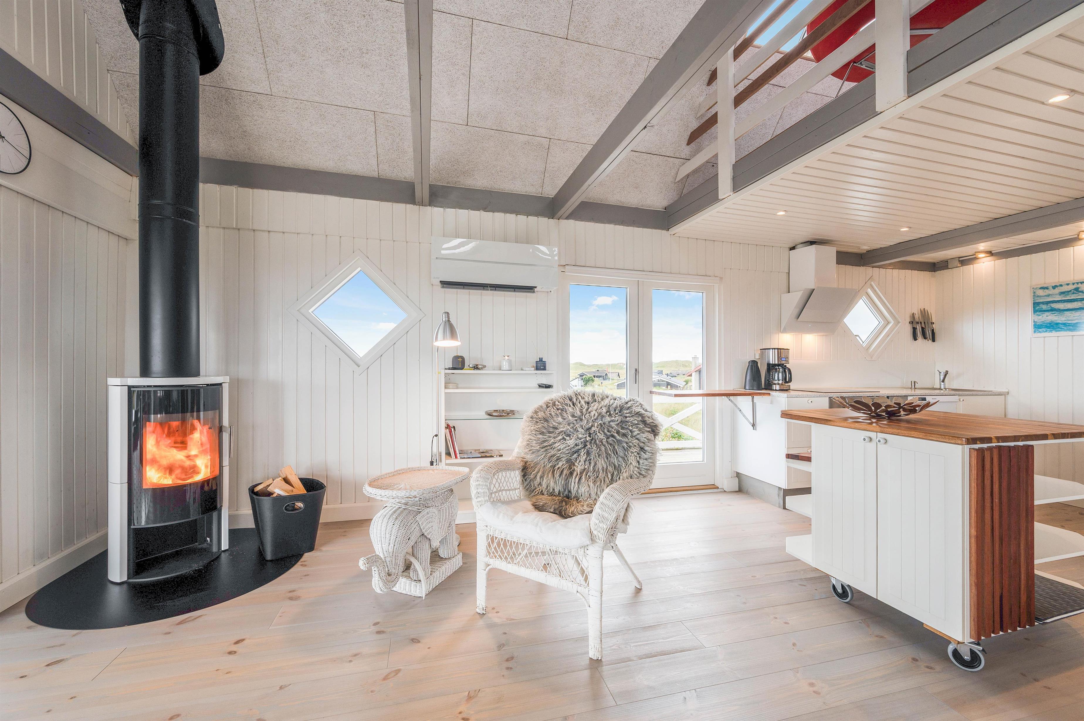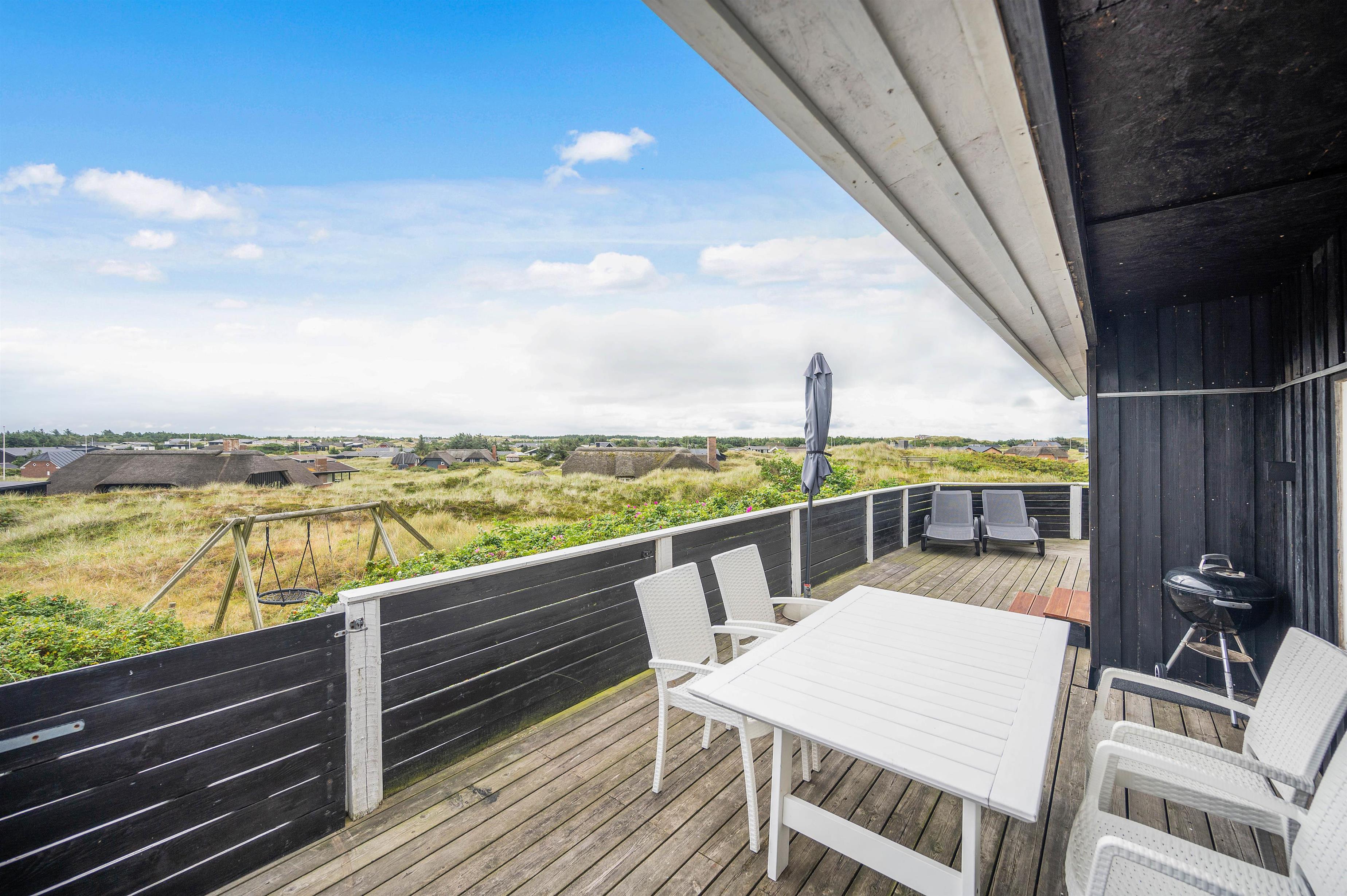 Det dejlige træhus har en god lukket terrasse, som gør, at du kan sidde ugeneret og nyde duften af den danske sommer. Har I mindre børn, så behøver I heller ikke bekymre jer om, at de kan løbe væk. Udsigten fra terrassen er noget for sig. Da huset ligger hævet i landskabet, kan I nemlig se langt ud i horisonten. Her er der mulighed for at nyde den skønne natur ved Vesterhavet.