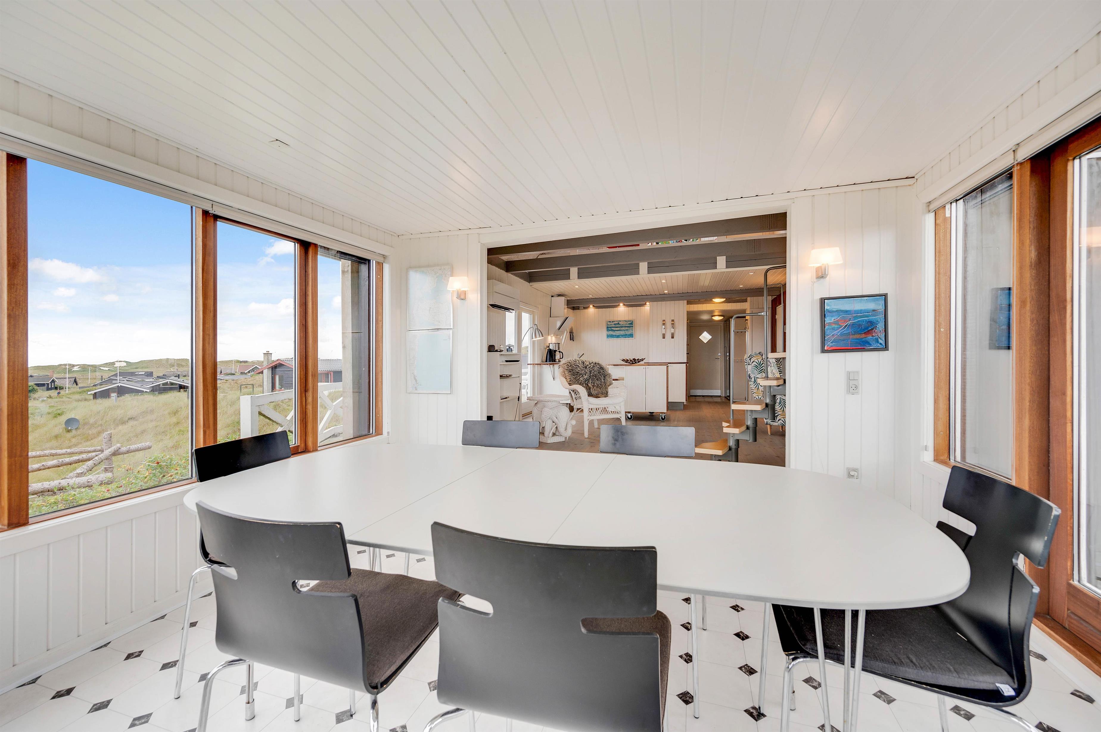 Fra den fine udestue i feriehuset har I rig mulighed for at nyde den smukke udsigt til den unikke omkringliggende natur og det smukke landskab uanset vejret. Samtidig med kan I samles om et brætspil, et spil kort eller blot planlægge ugens aktiviteter imens I nyder et glas koldt at drikke.