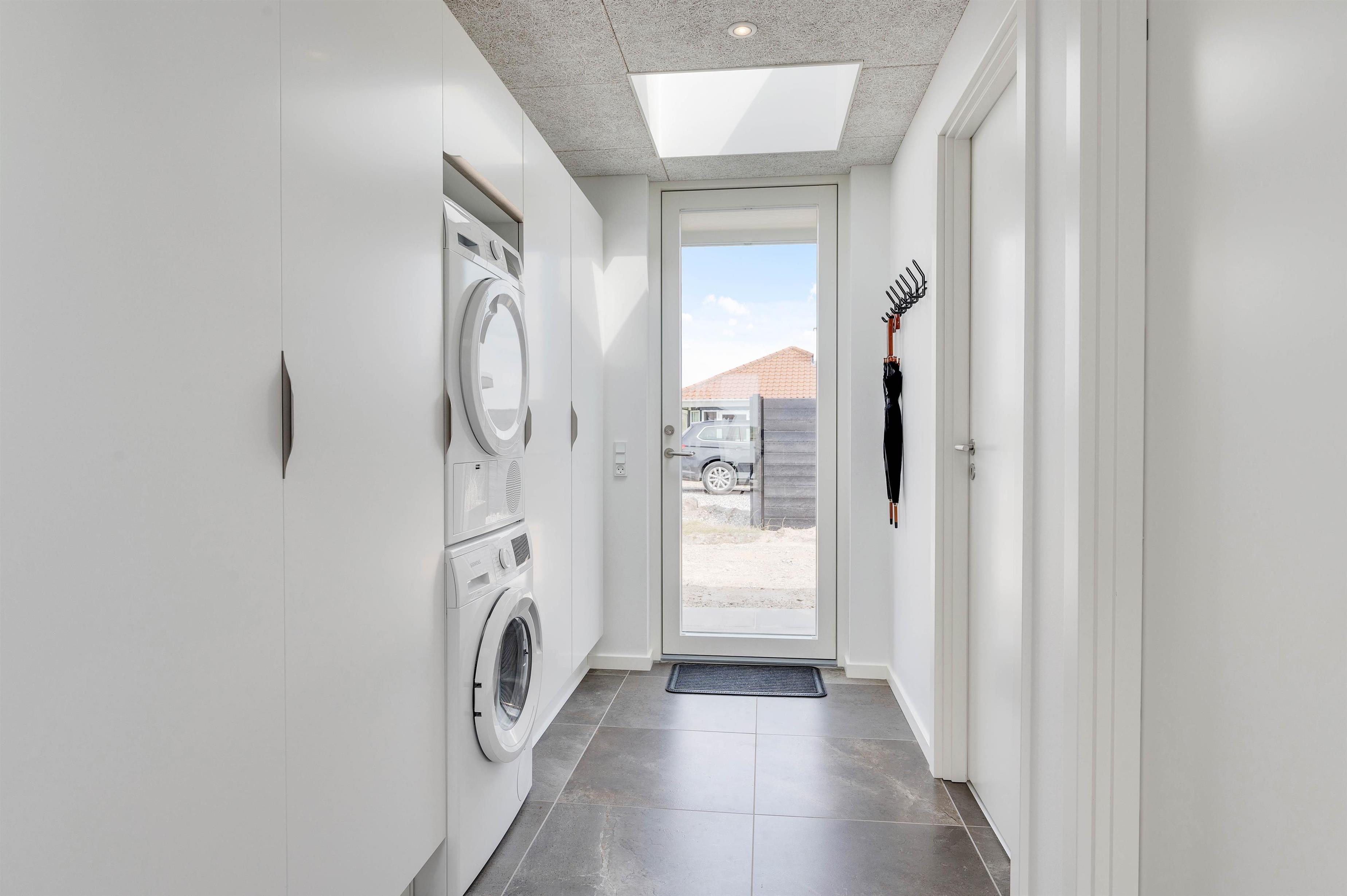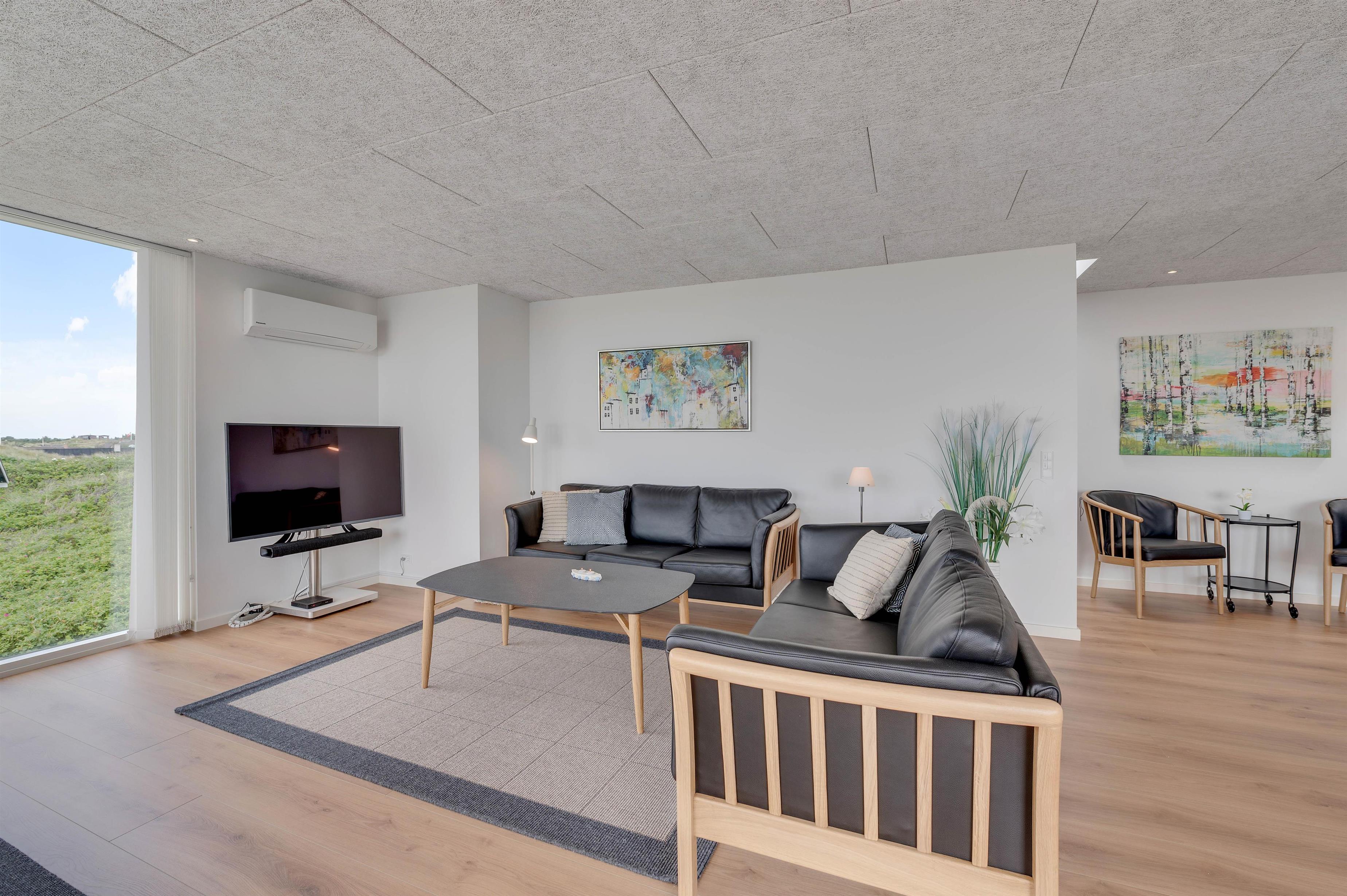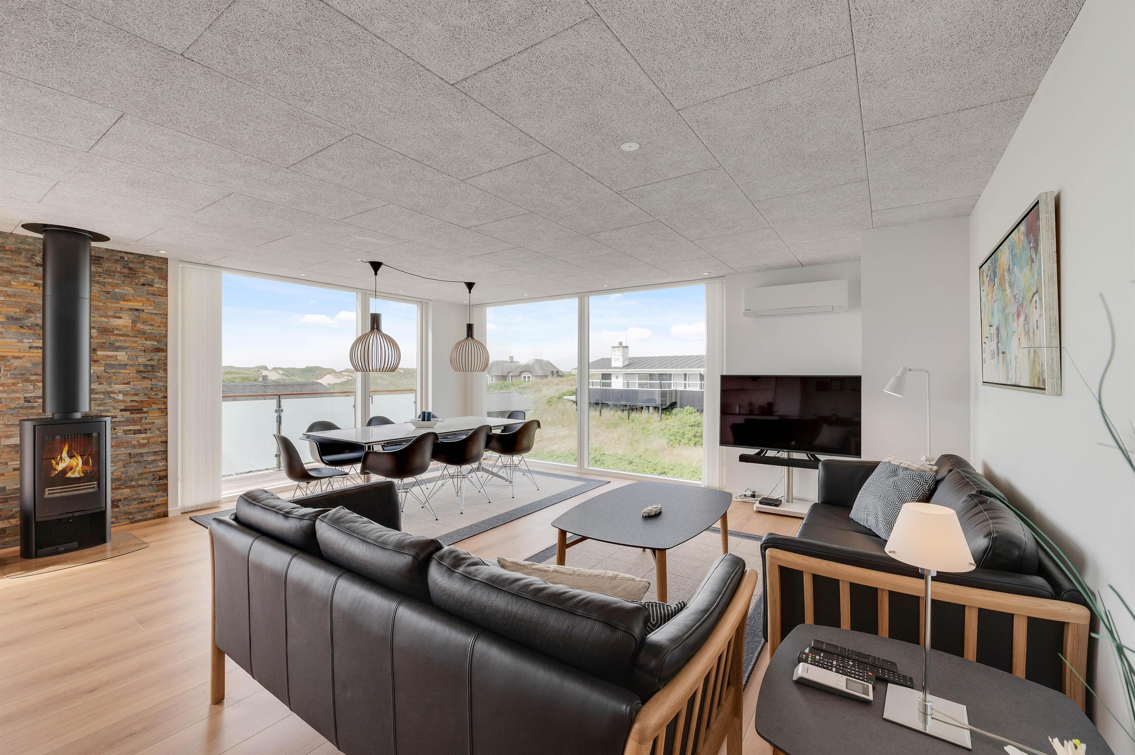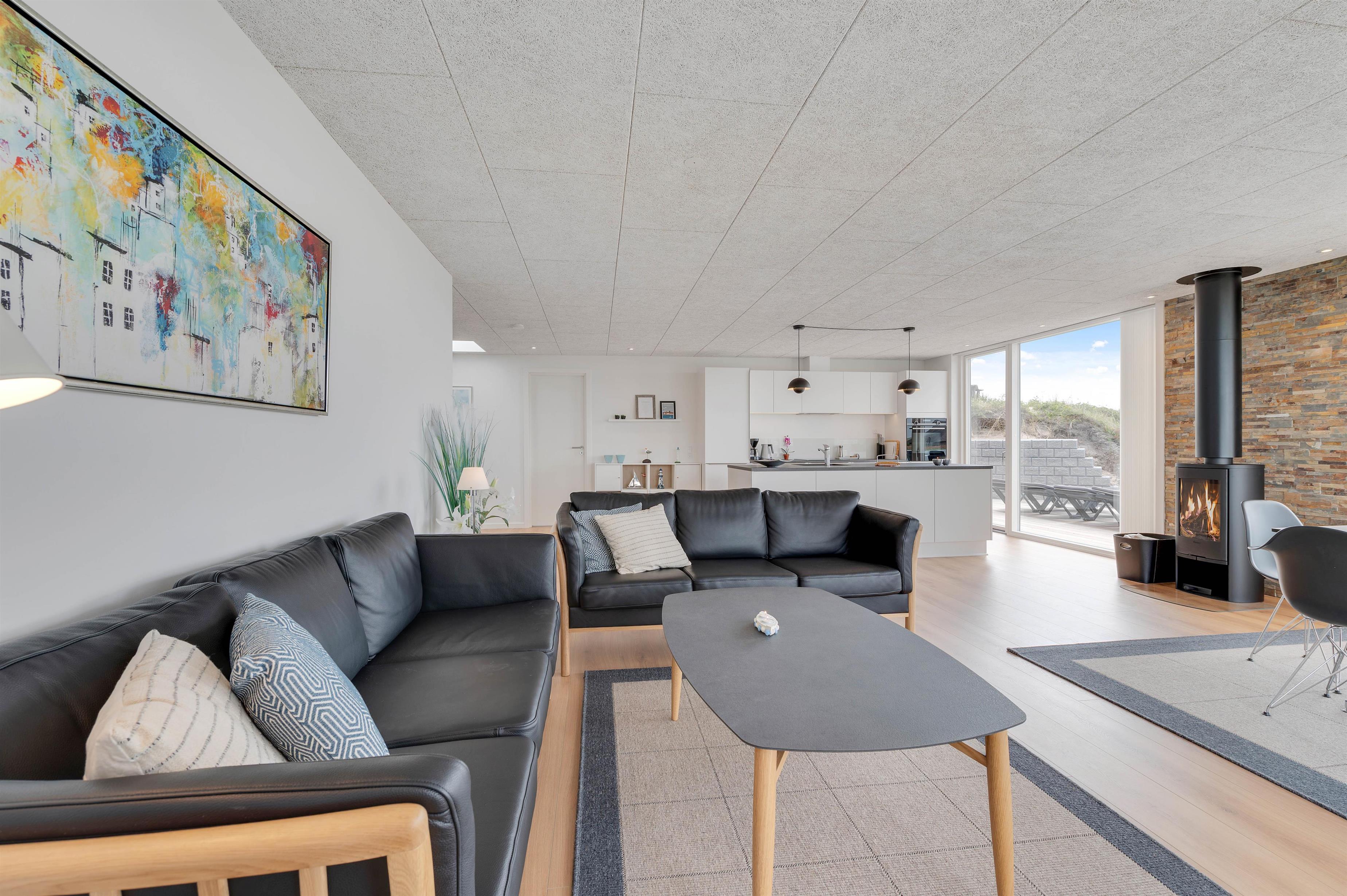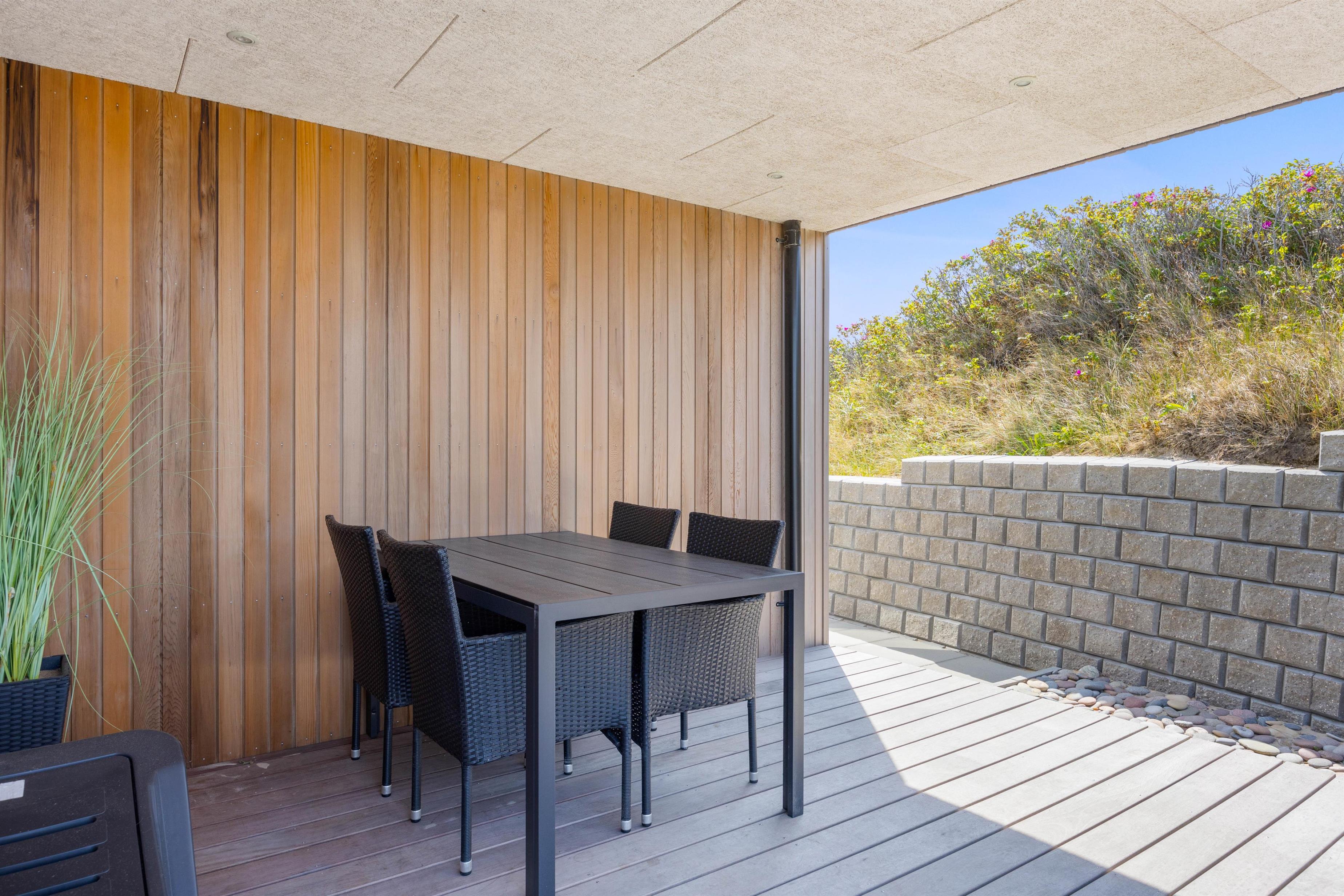 Feriehuset ligger kun 300 meter fra det brusende Vesterhav og har en skøn udsigt fra toppen af klitten ud over havet. Der er mange små stier, som fører fra feriehuset gennem klitlandskabet ned til stranden. Feriehuset har desuden en skøn udebruser, hvor man kan skylle sandet af fødderne eller blot køle kroppen af efter en hed dag i solen. Udebruseren kan benyttes fra april månede frem til november måned. Den afskærmede og åbne terrasse på 42m2 indbyder til afslapning med solvogne og havemøbler, og I kan samles om grillen om aftenen, mens I nyder solnedgangen over den jyske vestkyst.