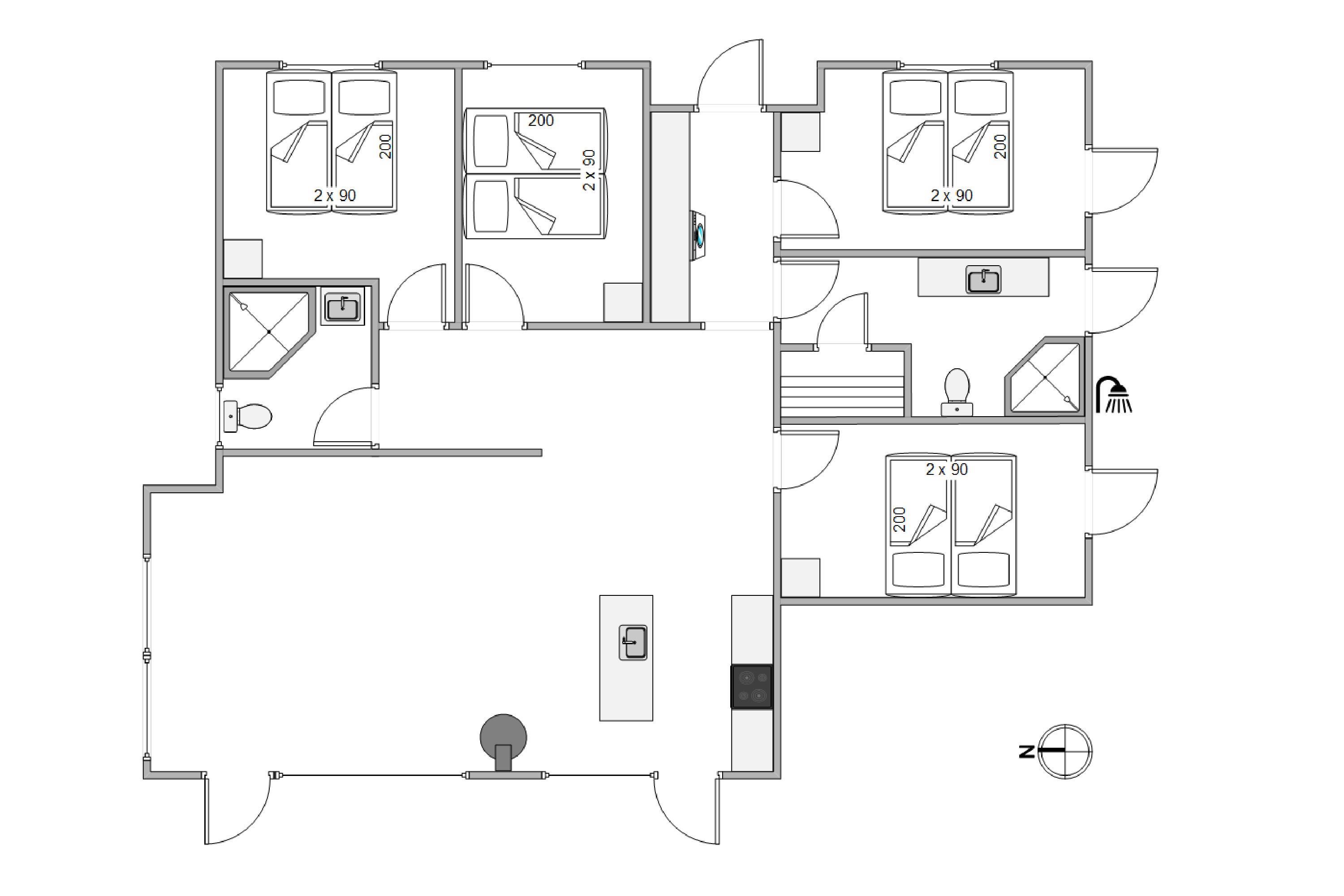 Det 129m2 store sommerhus ligger på en 1201 m2 stor naturgrund og fordeler sig på 4 gode soveværelser samt 2 badeværelser og en stue med integreret køkken. Der er et skønt havkig fra både stuen og terrassen, og de store vinduespartier på feriehuset lader masser af lys komme ind i feriehuset, hvor I kan tilbringe mange hyggelige feriestunder sammen. Er vejret ikke til udendørs aktiviteter, kan I tilbringe tiden på sofaen med spil eller en god bog, hvor brændeovnen og varmepumpen sørger for, I ikke fryser. Begge badeværelser har gulvvarme, og den infrarøde sauna varmer kroppen op og giver jer mulighed for at tanke energi og lade op.