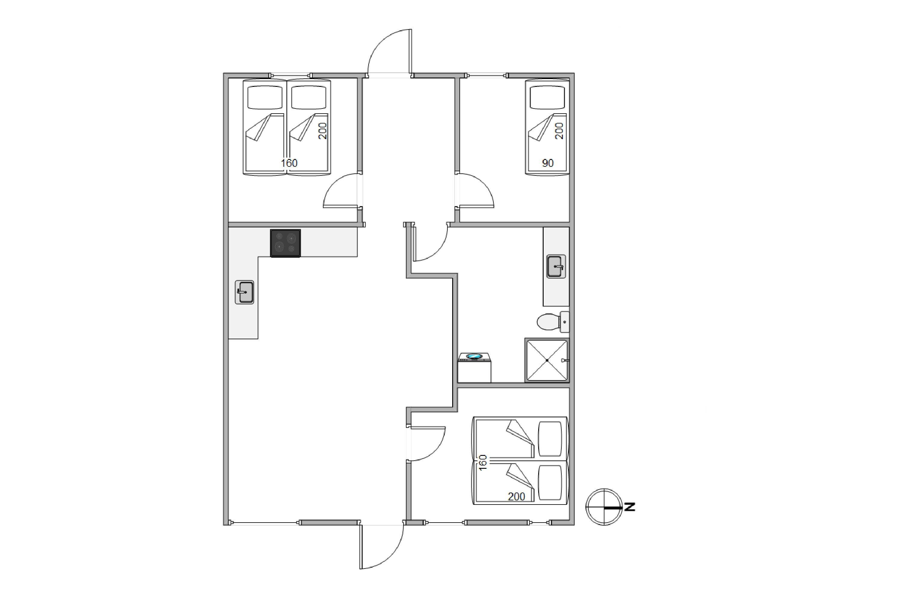 Ferielejlighedens 85 kvadratmeter fordeler sig på en entré, tre soveværelser, et badeværelse og et alrum med både køkken, spiseafdeling og stue. Den moderne og stilfulde indretning tilføjer et interessant touch til ferien. Lejligheden der er opført i 2021 er moderne, og kan snildt huse op til fem feriegæster.