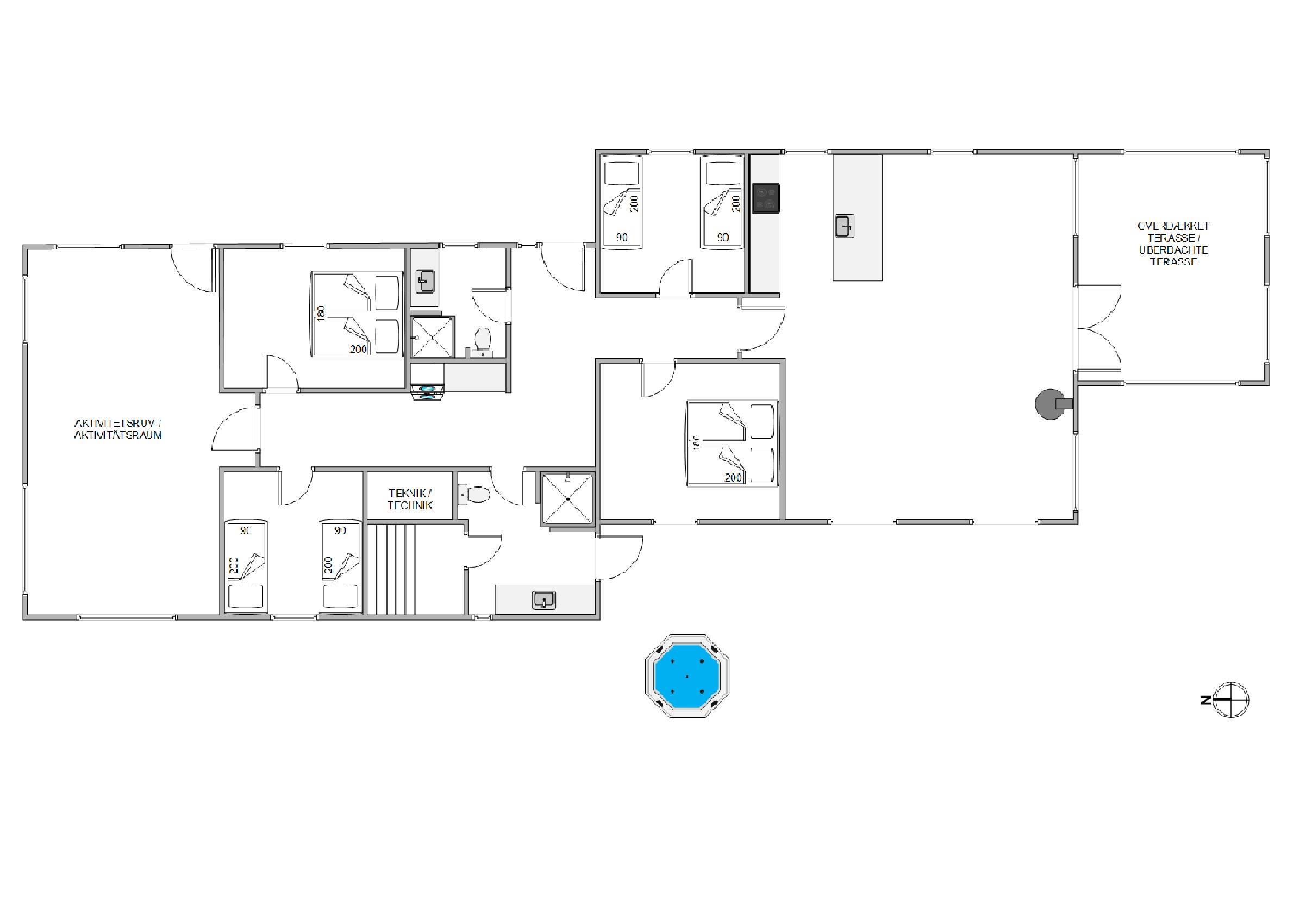 Det dejlige sommerhus råder over 4 soverum, heraf 2 med dobbeltsenge. Blandt husets faciliteter finder I bl.a. et aktivitetsrum med billard, hvor I kan tilbringe mange hyggestunder sammen. Der er etableret en udespa, så I rigtig kan få en fornemmelse af wellness på ferien og få ladet batterierne op, mens I kigger på stjernehimmelen.