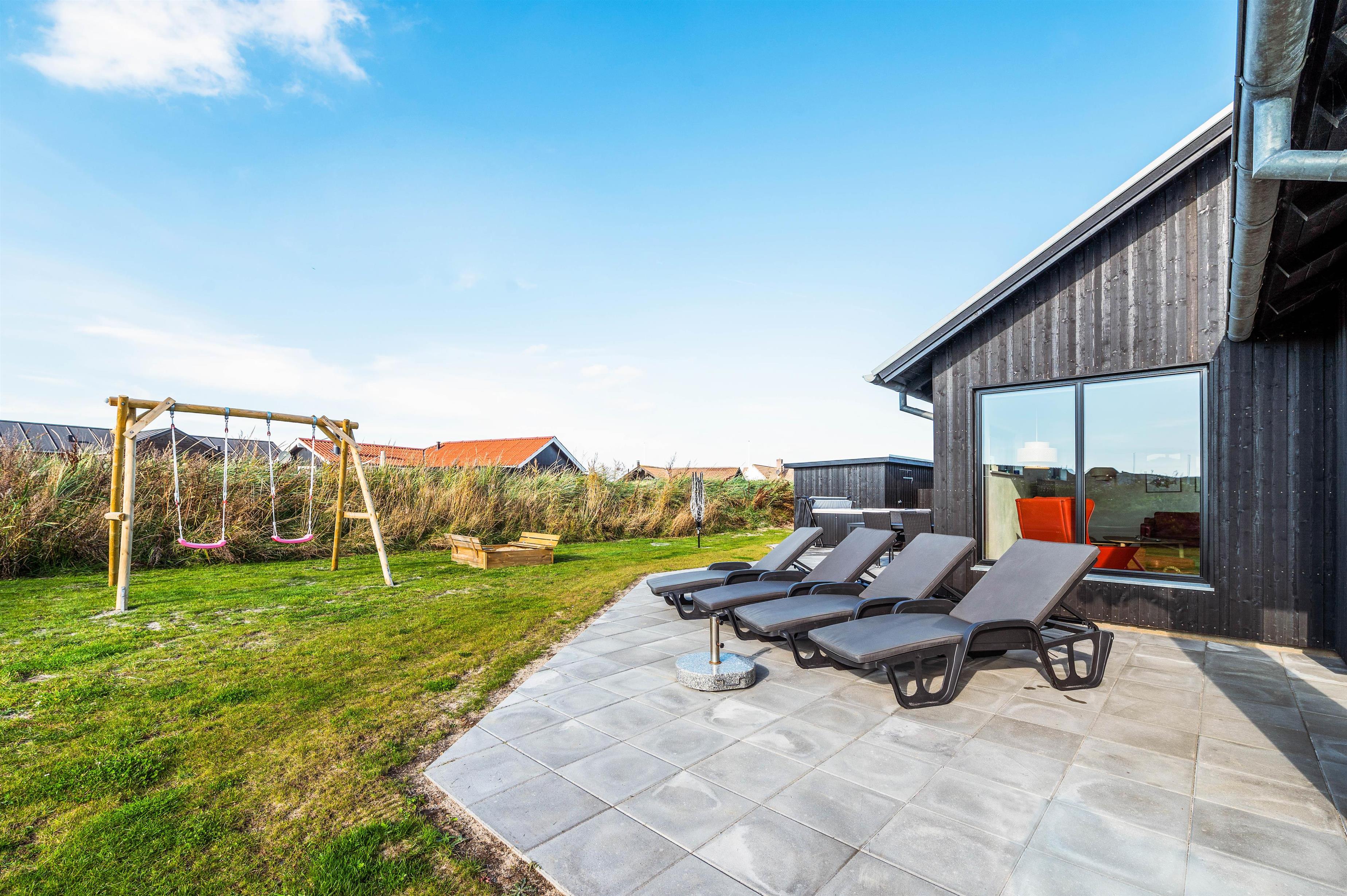 Drømmer I om en sommerhusferie ud over det sædvanlige i det vestjyske klitlandskab så tæt på havet, at I kan høre bølgebrus fra terrassen? Så er dette femstjernede sommerhus på Hafavej 26 i Søndervig bestemt værd at se nærmere på! Sommerhuset er opført i 2021, og beliggenheden er helt fantastisk på en stor naturgrund med kun 200 meter til Vesterhavet. Det flotte sommerhus har plads til 8 personer, og der er sørget for underholdning for alle aldre med både aktivitetsrum og udespa. Hunde er også velkomne! Der er mulighed for at lade jeres elbil ved feriehuset med 16 amp kraftstik.