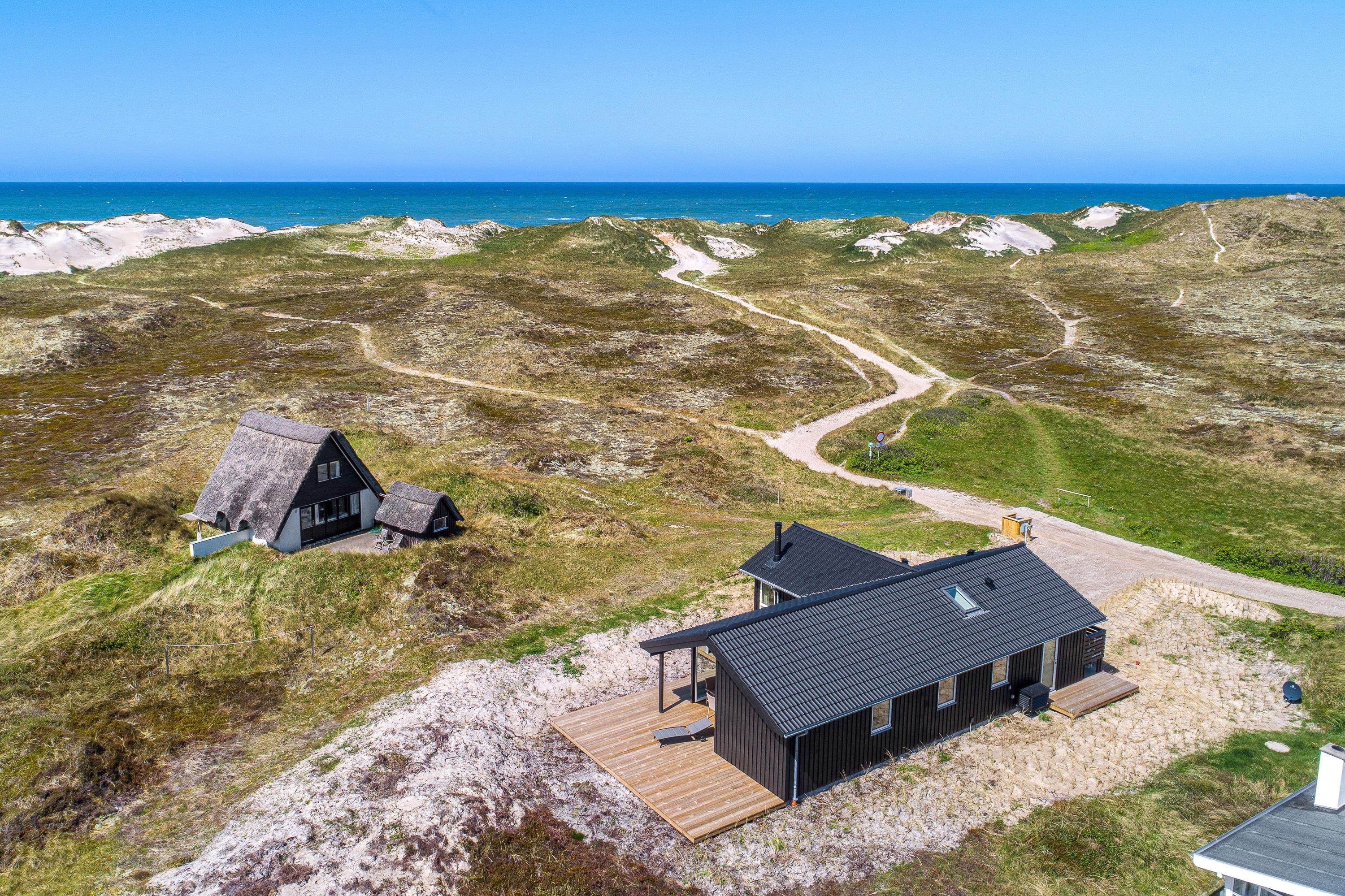 Sommerhusets beliggenhed er fantastisk: Naturgrunden er placeret i den yderste klitrække kun 200 meter fra Vesterhavet. I vil kunne høre de brusende bølger bag klitterne, mens I sidder i ly og læ på den overdækkede og afskærmede terrasse. På terrassen kan I nyde den friske havluft i al slags vejr.