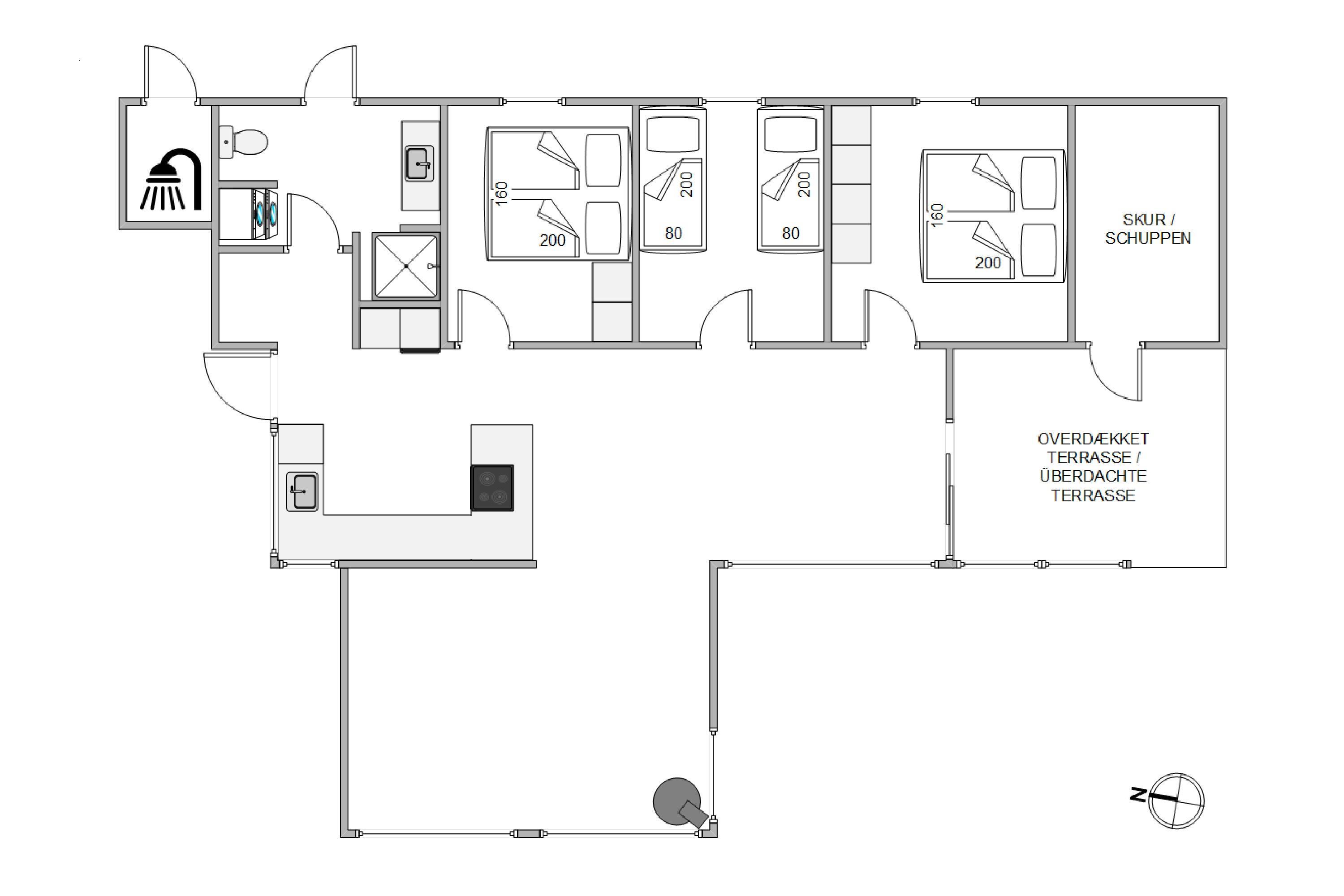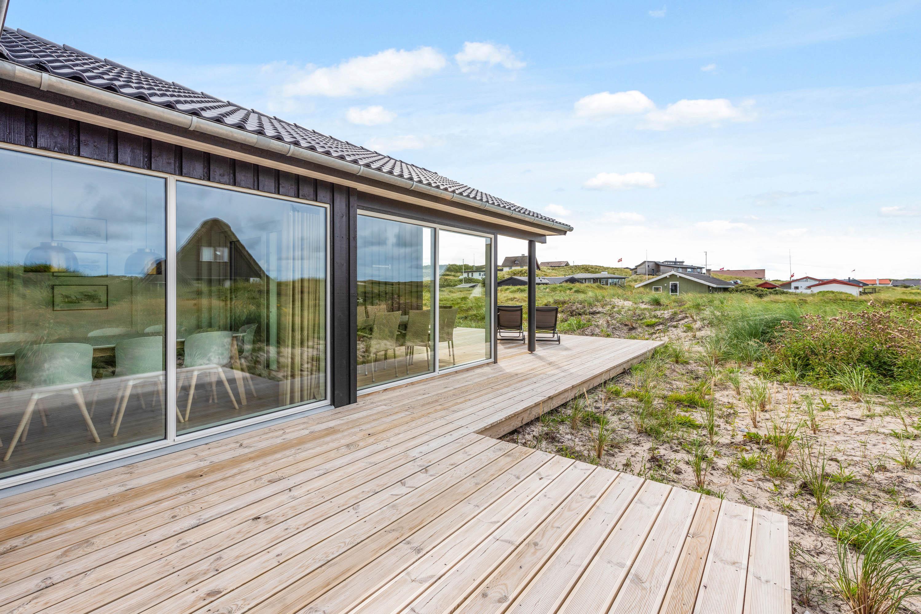 Efter en kort gåtur over klitterne står I på den lange hvide sandstrand, som indbyder til lange gåture eller en frisk dukkert. Stranden egner sig også godt til drageflyvning, og der er masser af plads til at bygge sandslotte. Når I kommer tilbage til sommerhuset, kan I skylle sand og salt af under udebruser – den har både varmt og koldt vand! Udebruseren kan benyttes i perioden april til november. Ud på aftenen står grillen klar, sådan at I kan nyde en dejlig grillmiddag med solnedgangen som flot kulisse.