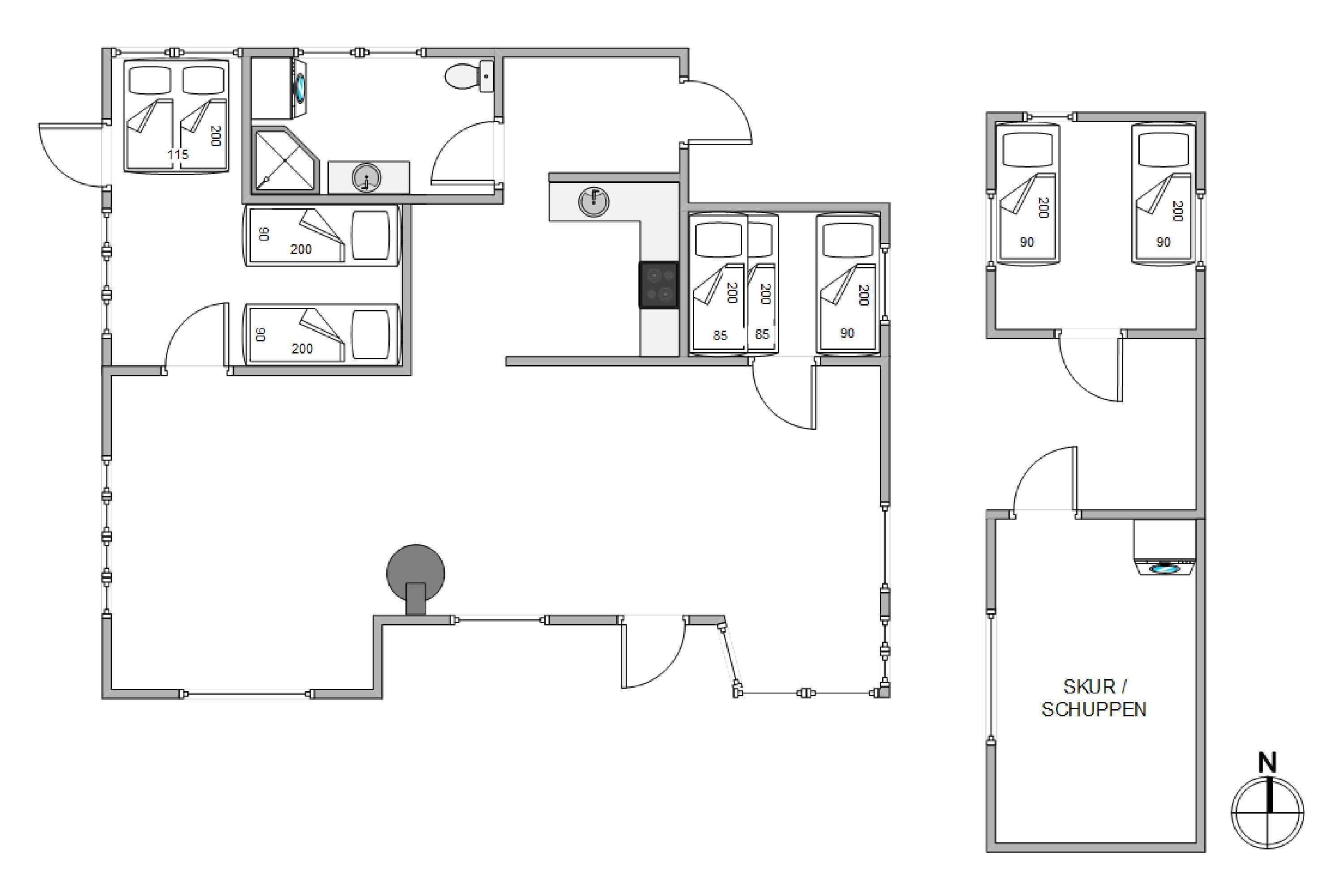 2. soverum/sengestørrelser2 x 85 x 200, 1 x 90 x 200