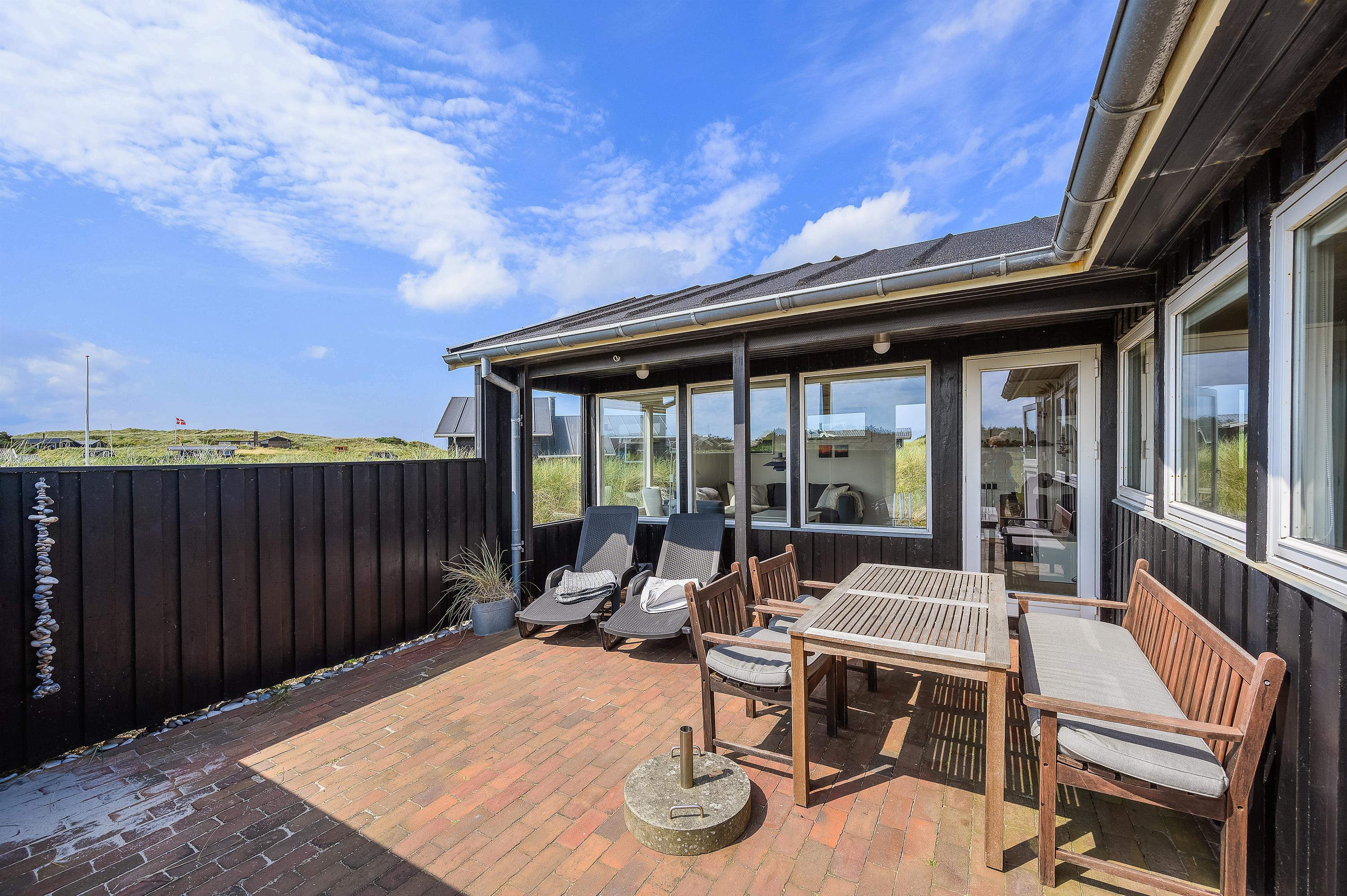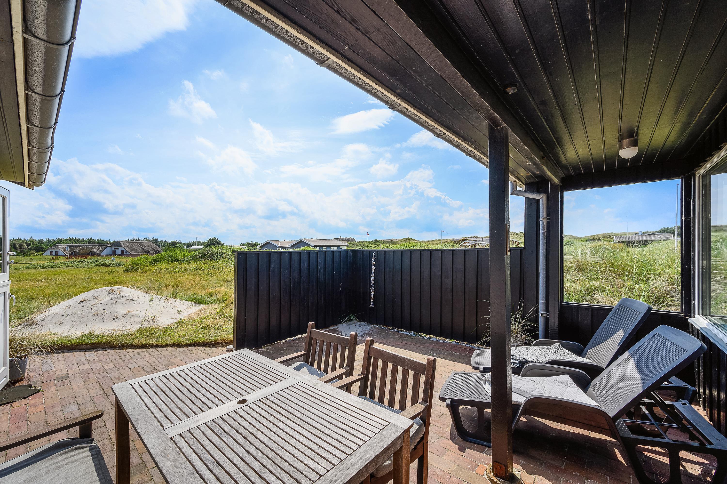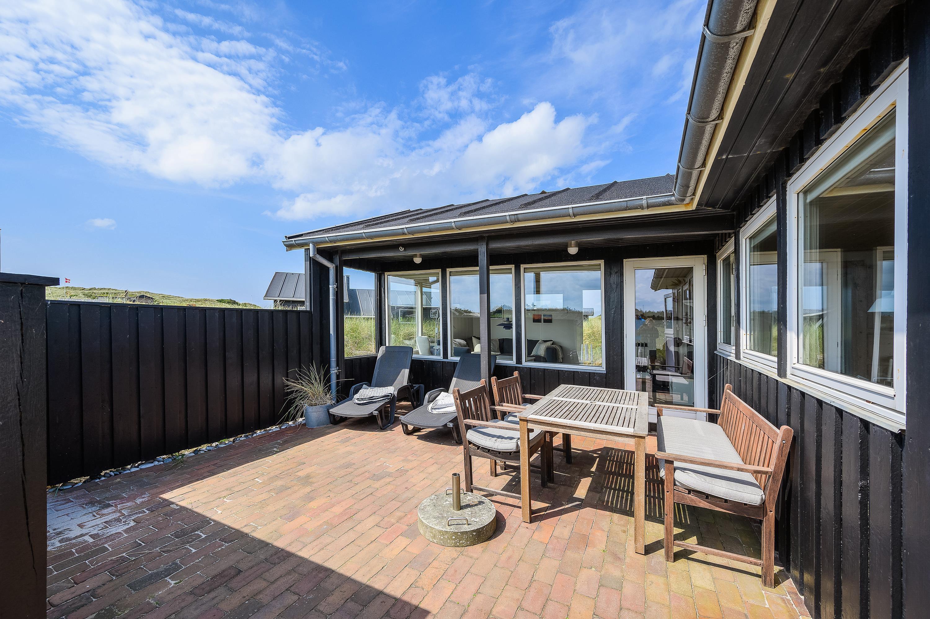 Sommerhuset har hele to terrasser, som er udstyret med alt det I behøver for at nyde nogle dejlige feriedage. Her finder I bl.a. diverse havemøbler, liggestole og ikke mindst en grill, som kan benyttes til at tilberede et lækkert måltid. Fra køkkenet og spisestuen er der direkte udgang til den hyggelige syd- vestvendte terrasse. Sommerhuset har også en overdækket nordvendt terrasse, hvor I har helt uforstyrret kan slappe af og nyde den friske vesterhavsluft.