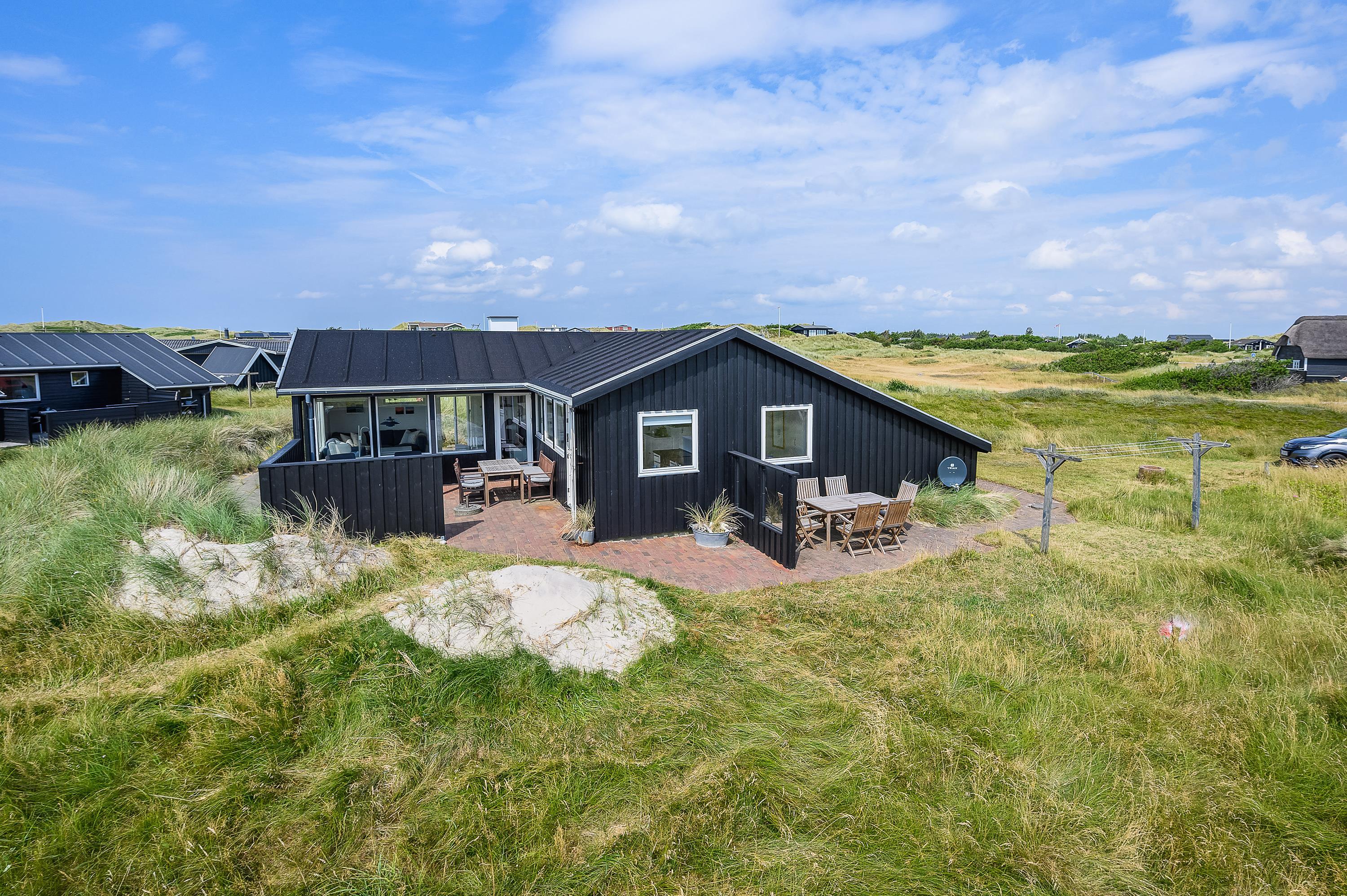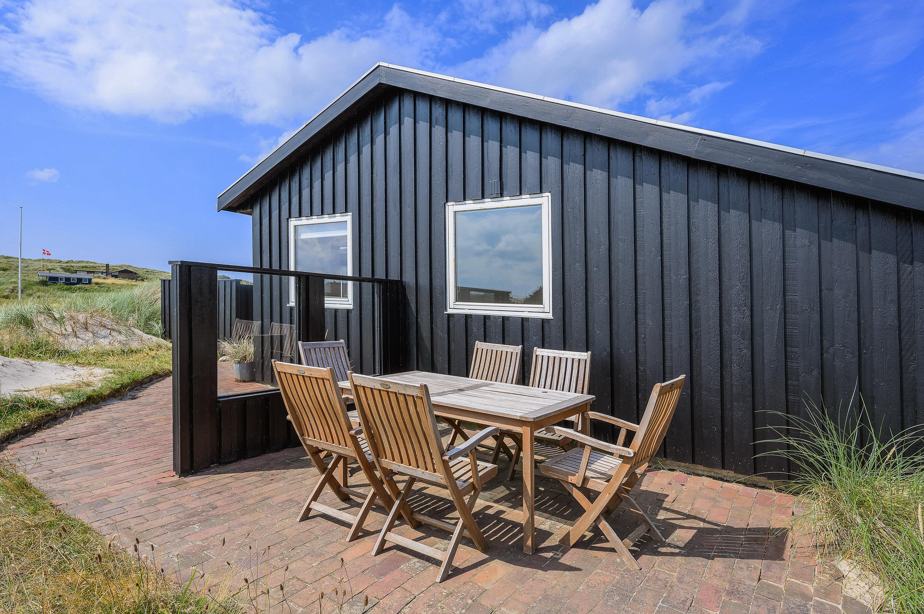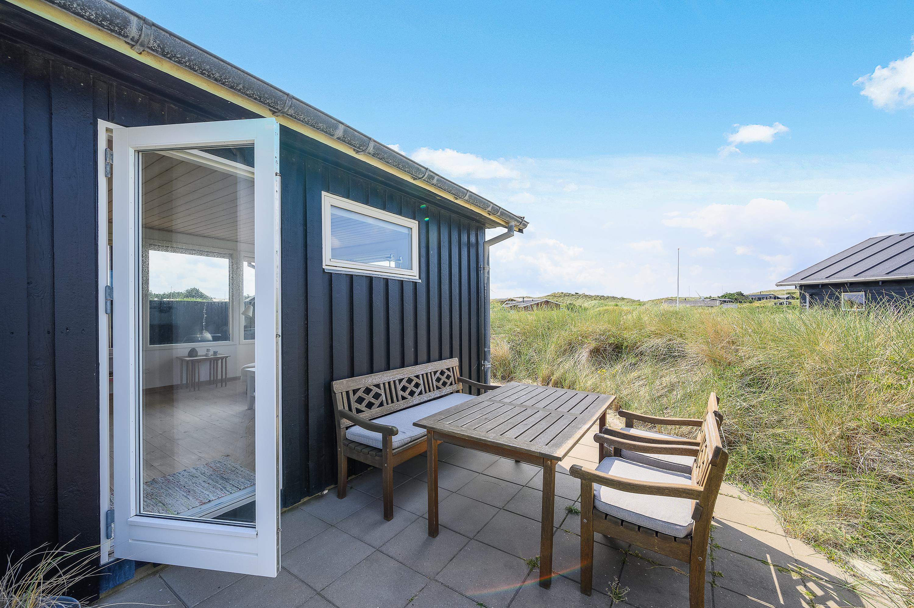 Sommerhuset har hele to terrasser, som er udstyret med alt det I behøver for at nyde nogle dejlige feriedage. Her finder I bl.a. diverse havemøbler, liggestole og ikke mindst en grill, som kan benyttes til at tilberede et lækkert måltid. Fra køkkenet og spisestuen er der direkte udgang til den hyggelige syd- vestvendte terrasse. Sommerhuset har også en overdækket nordvendt terrasse, hvor I har helt uforstyrret kan slappe af og nyde den friske vesterhavsluft.