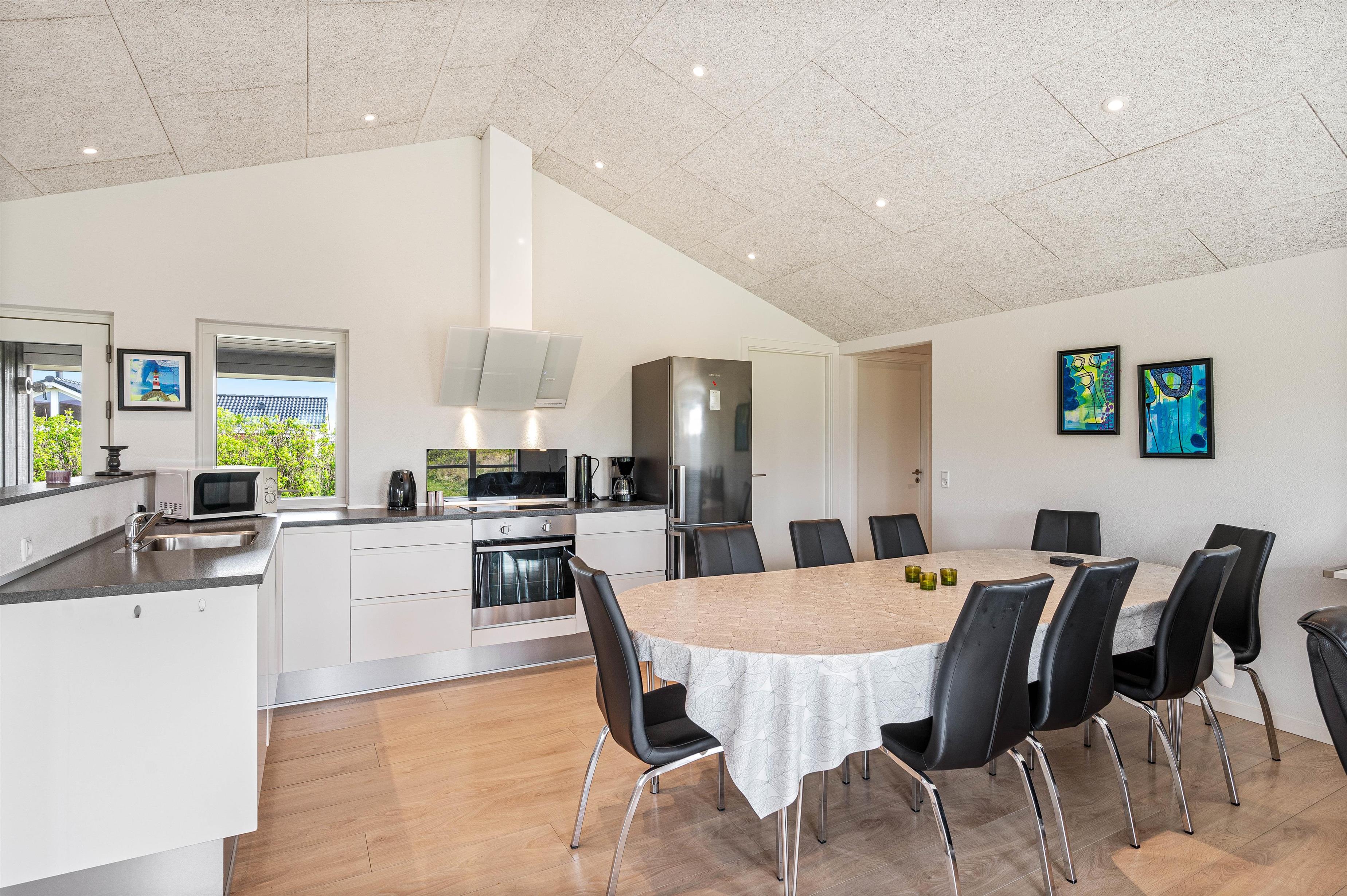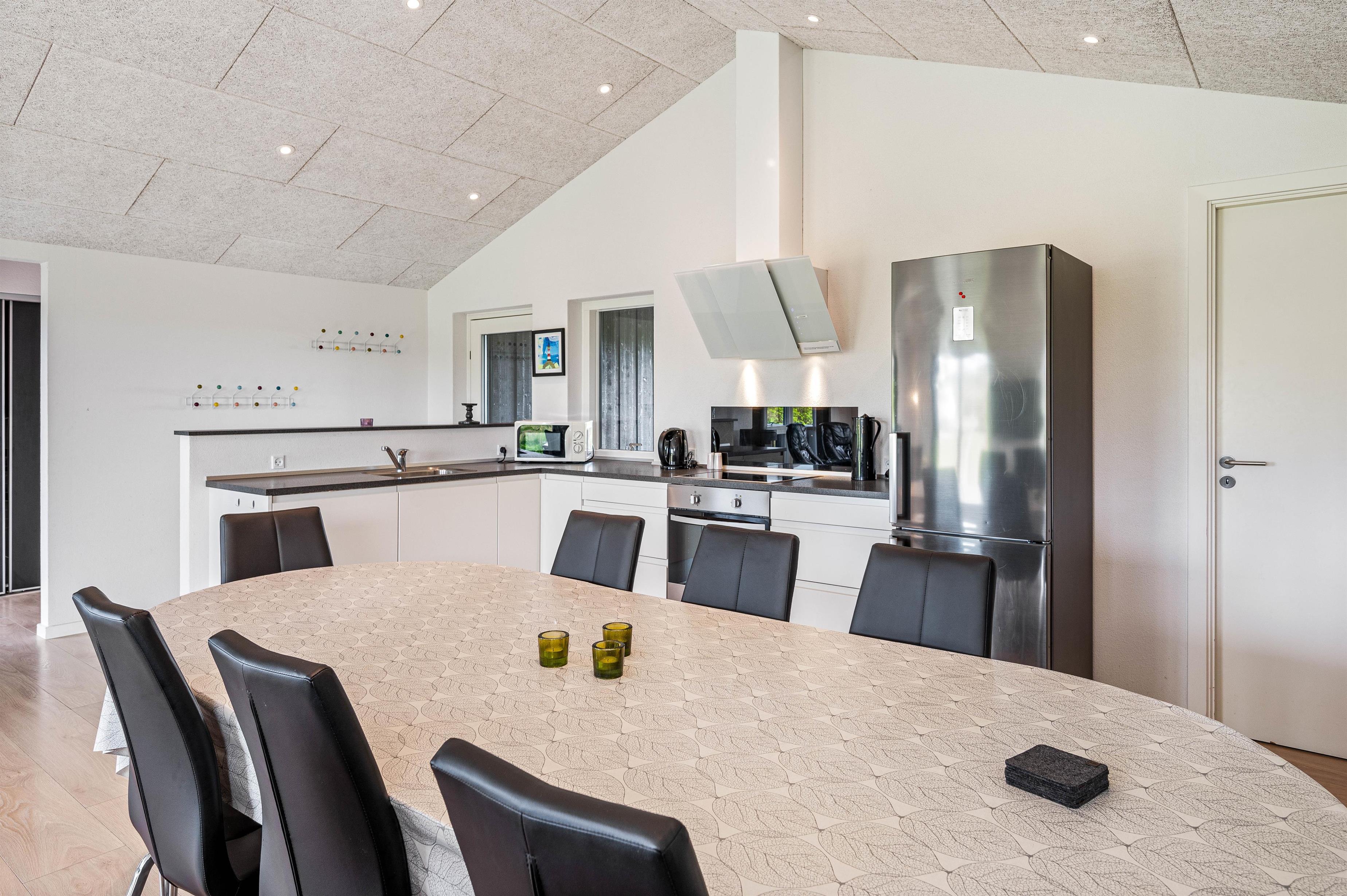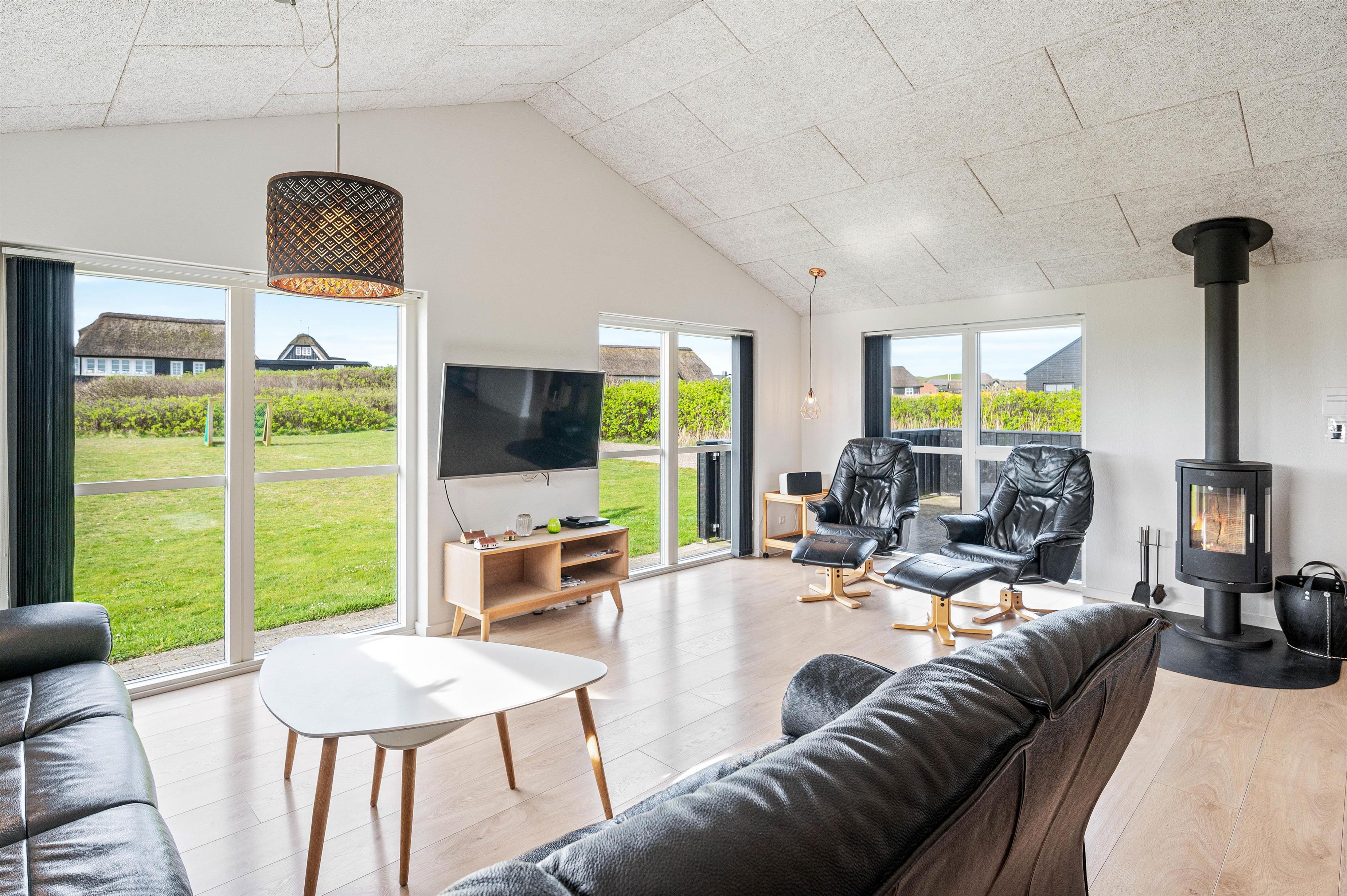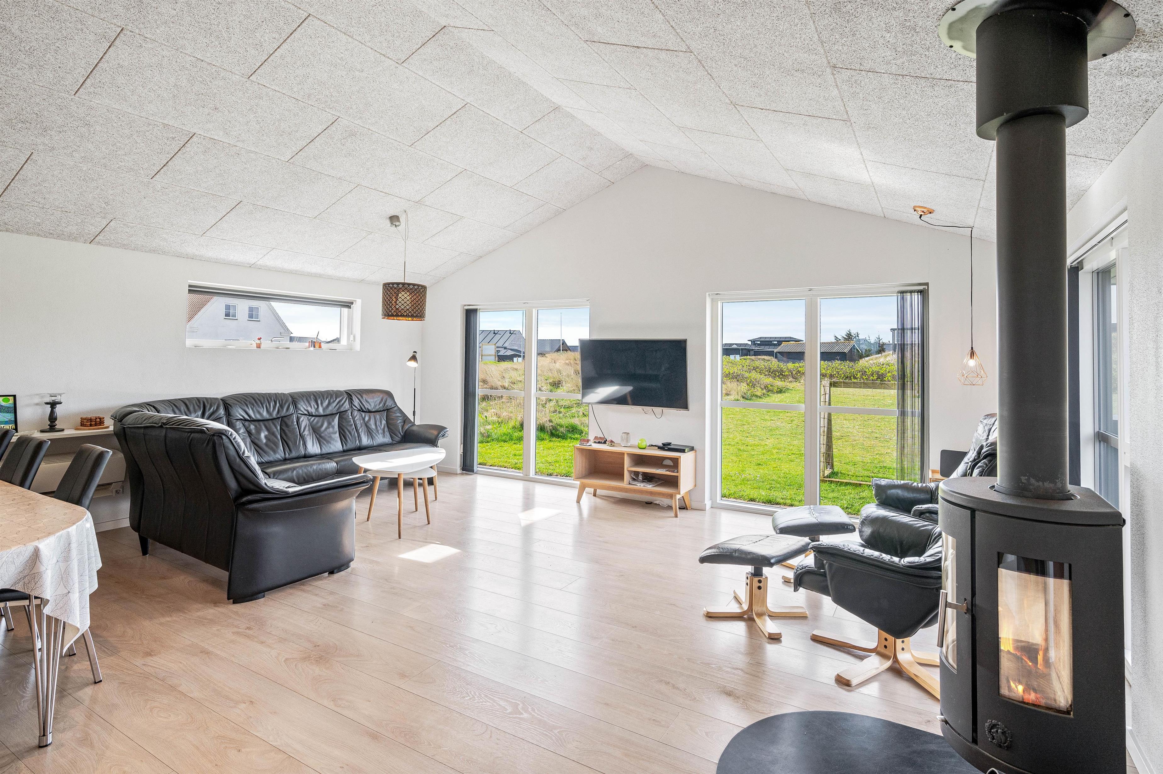 Sommerhusets moderne faciliteter sikrer, at jeres ophold vil være komfortabelt og bekvemt. Køkkenet er udstyret med en opvaskemaskine og en 90 L separat fryser, hvilket især er ideelt ved længere ophold og sikrer at I kan bruge tid på at nyde jeres ferie. Der er desuden en vaskemaskine og en tørretumbler til rådighed, således I kun behøver at pakke jeres yndlingstøj. Brændeovnen skaber en fantastisk hyggelig og varm atmosfære, som også komplementeres af husets økonomiske luft-til-luft varmepumpe.