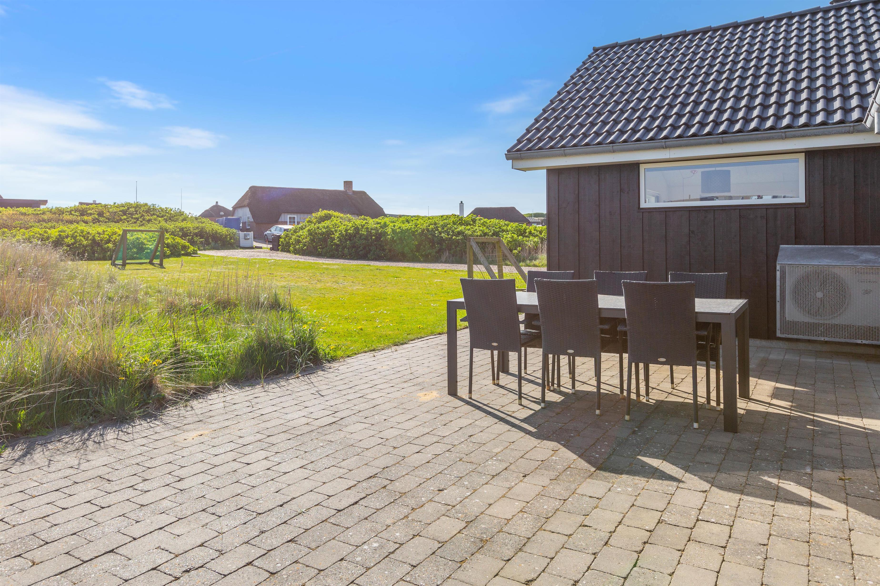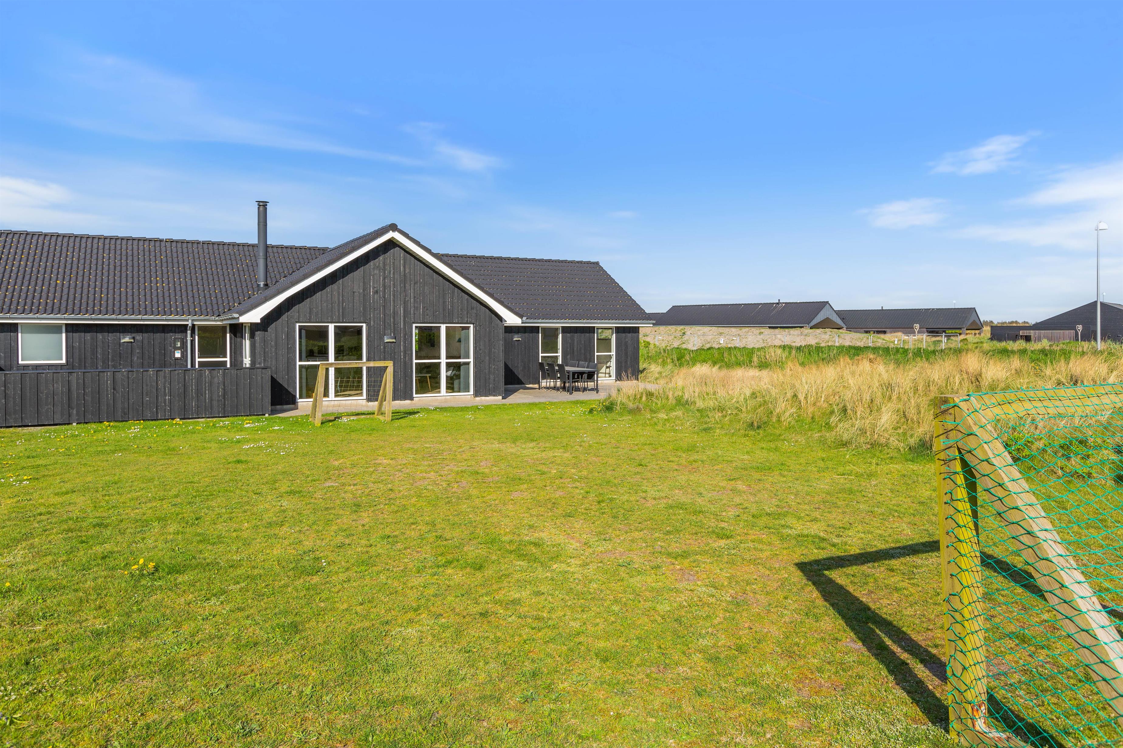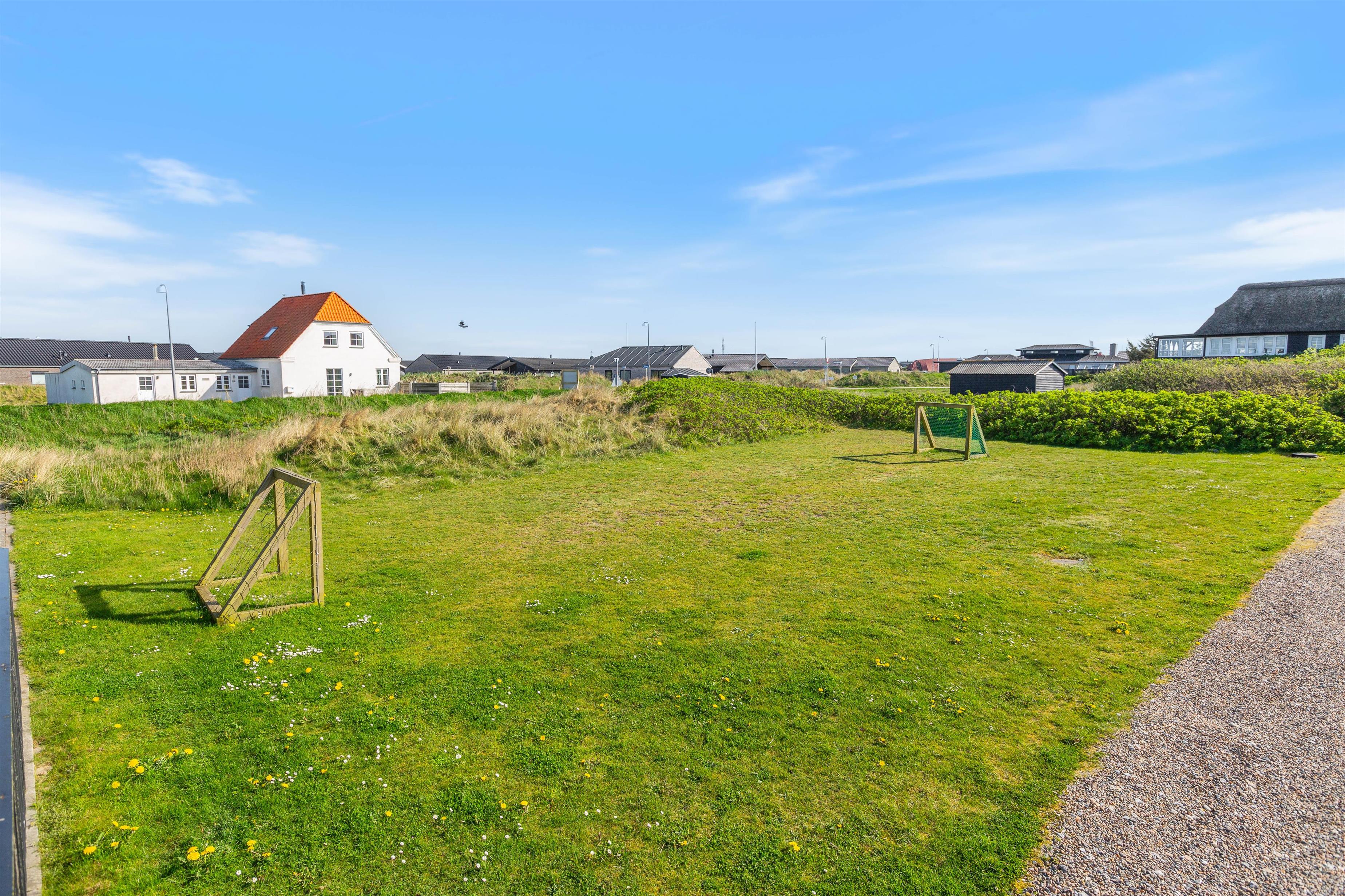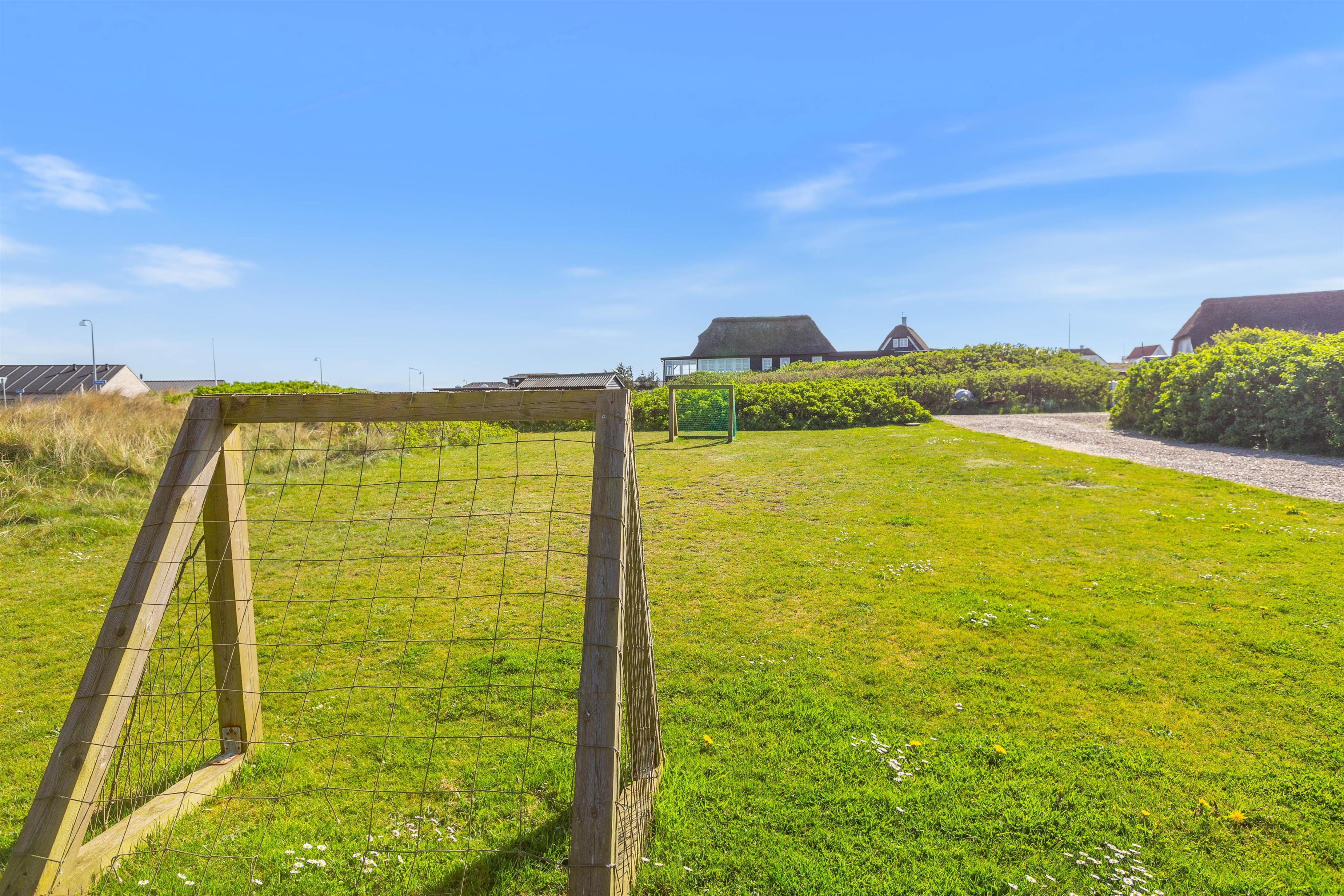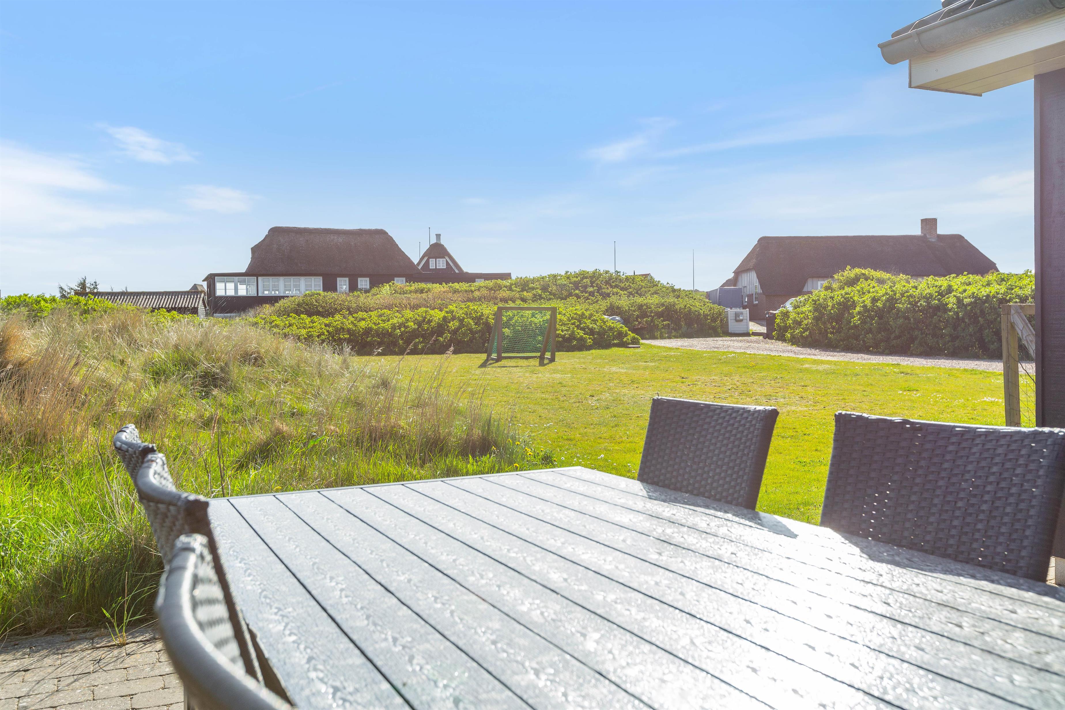 Feriehuset er placeret på en stor grund og med gode og afskærmende volde, så du ugeneret kan sidde udenfor. Der er et par fodboldmål, så børnene kan lege og spille bold, mens du slapper af på de skønne terrasser. Den ene terrasse er endda lukket, hvilket især er perfekt, hvis der er børn eller hund med på ferien.