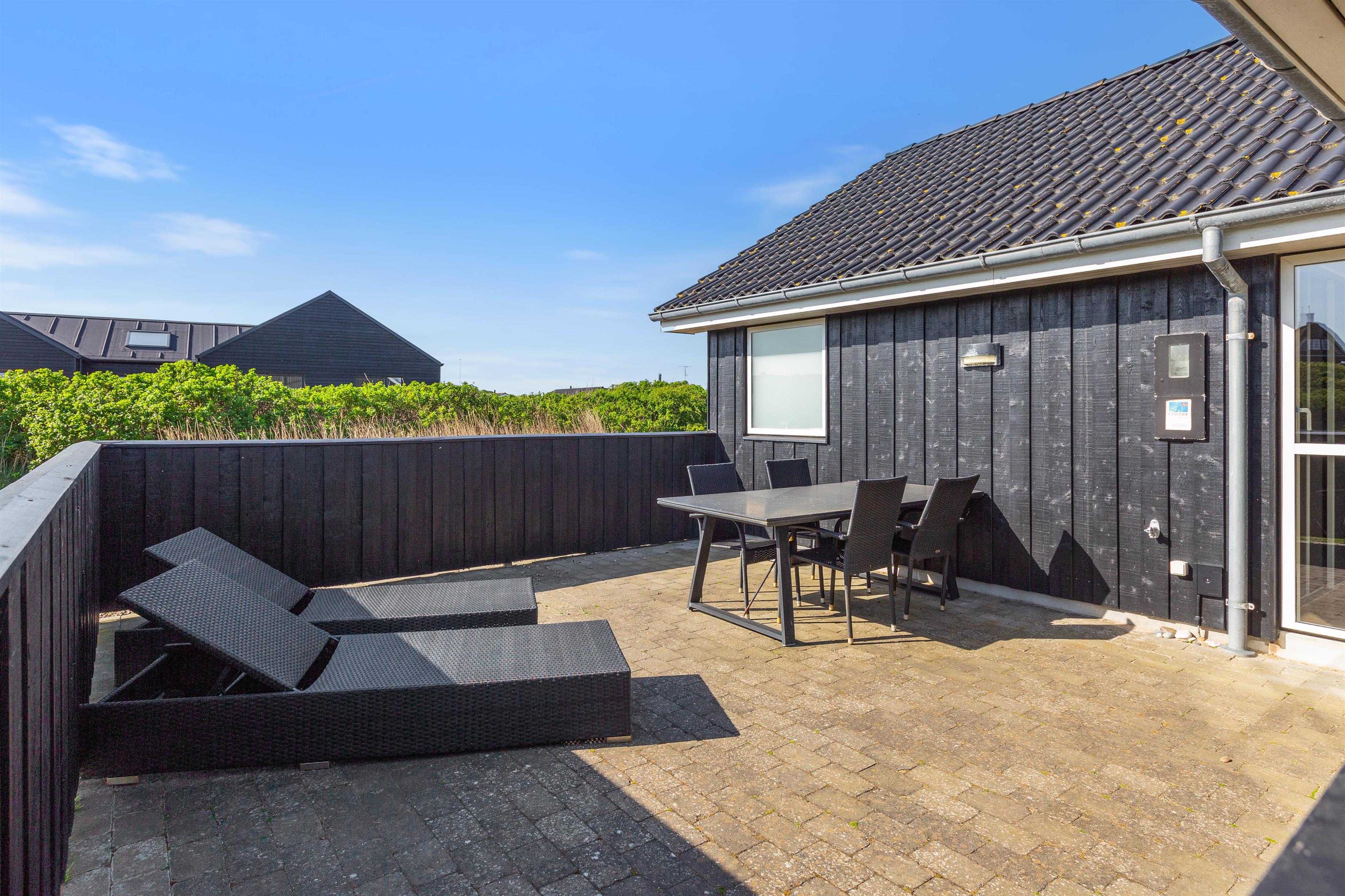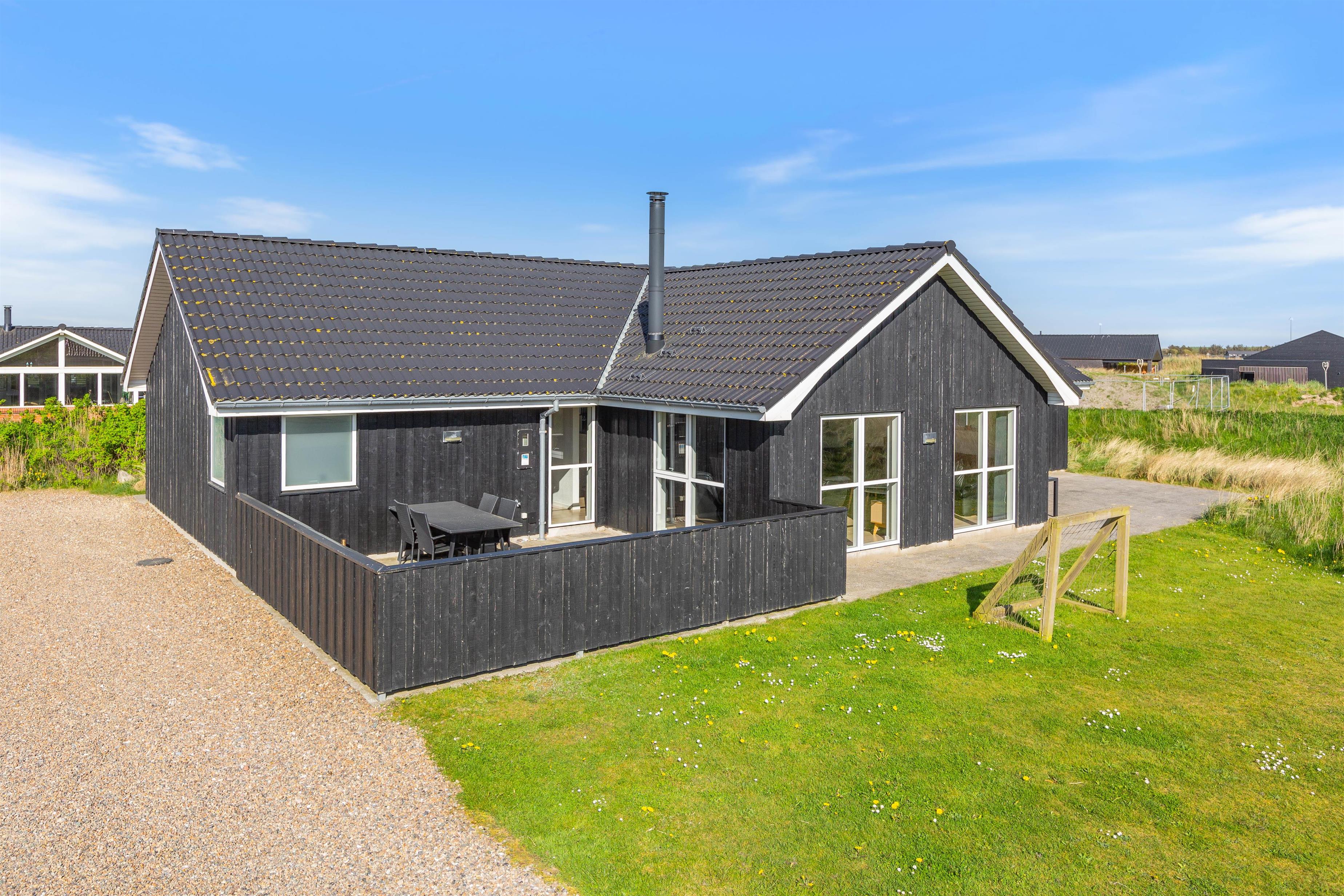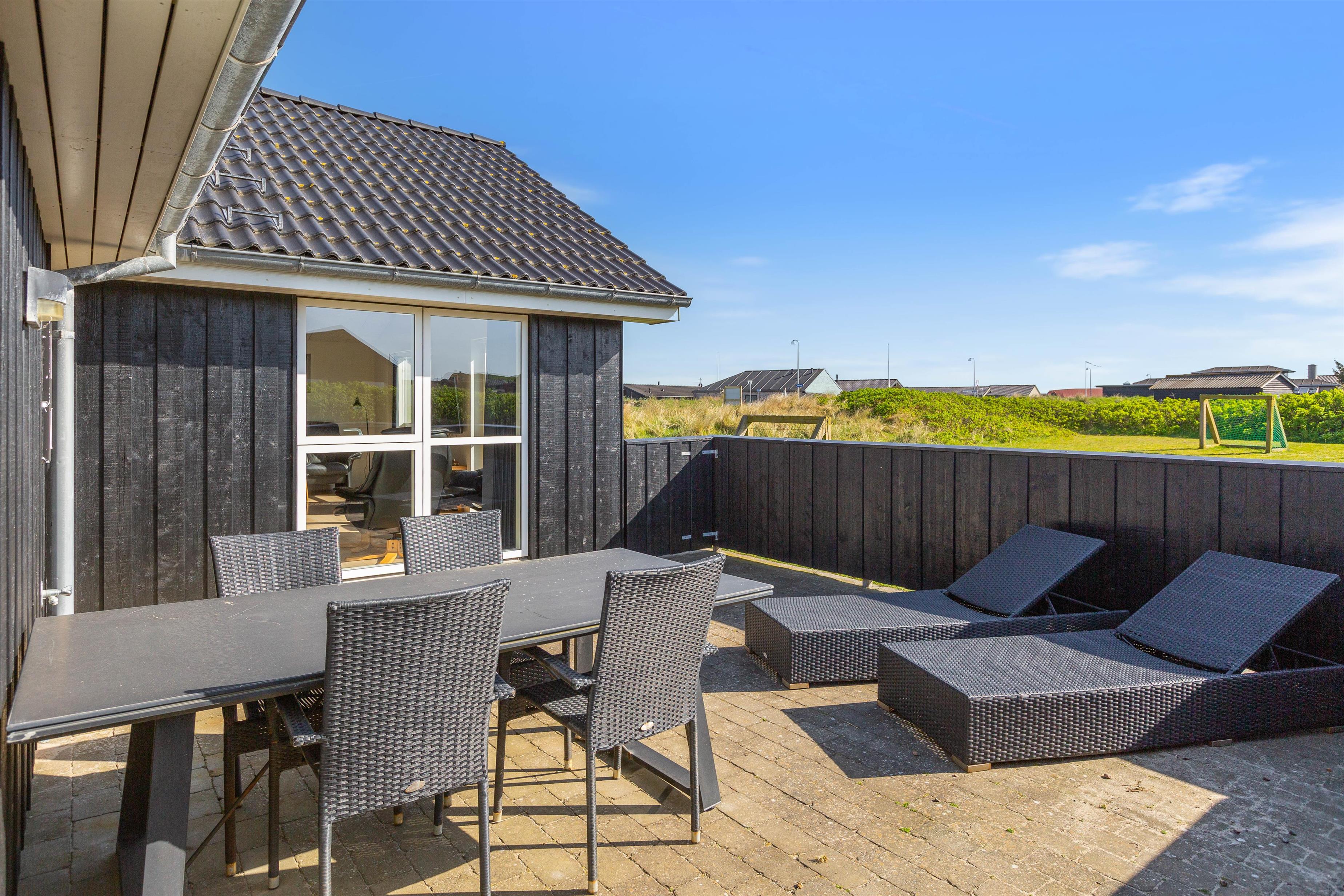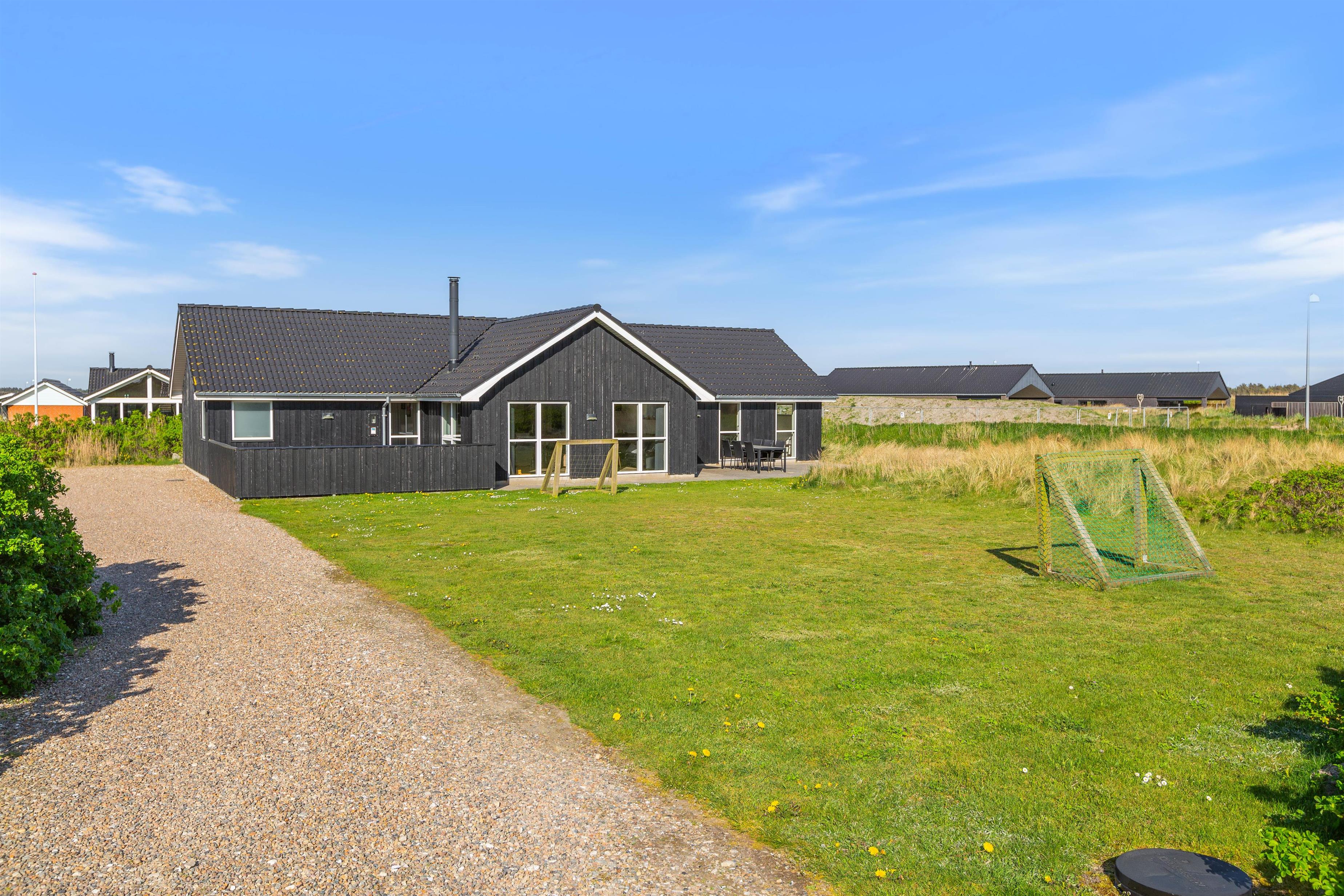 Feriehuset er placeret på en stor grund og med gode og afskærmende volde, så du ugeneret kan sidde udenfor. Der er et par fodboldmål, så børnene kan lege og spille bold, mens du slapper af på de skønne terrasser. Den ene terrasse er endda lukket, hvilket især er perfekt, hvis der er børn eller hund med på ferien.
