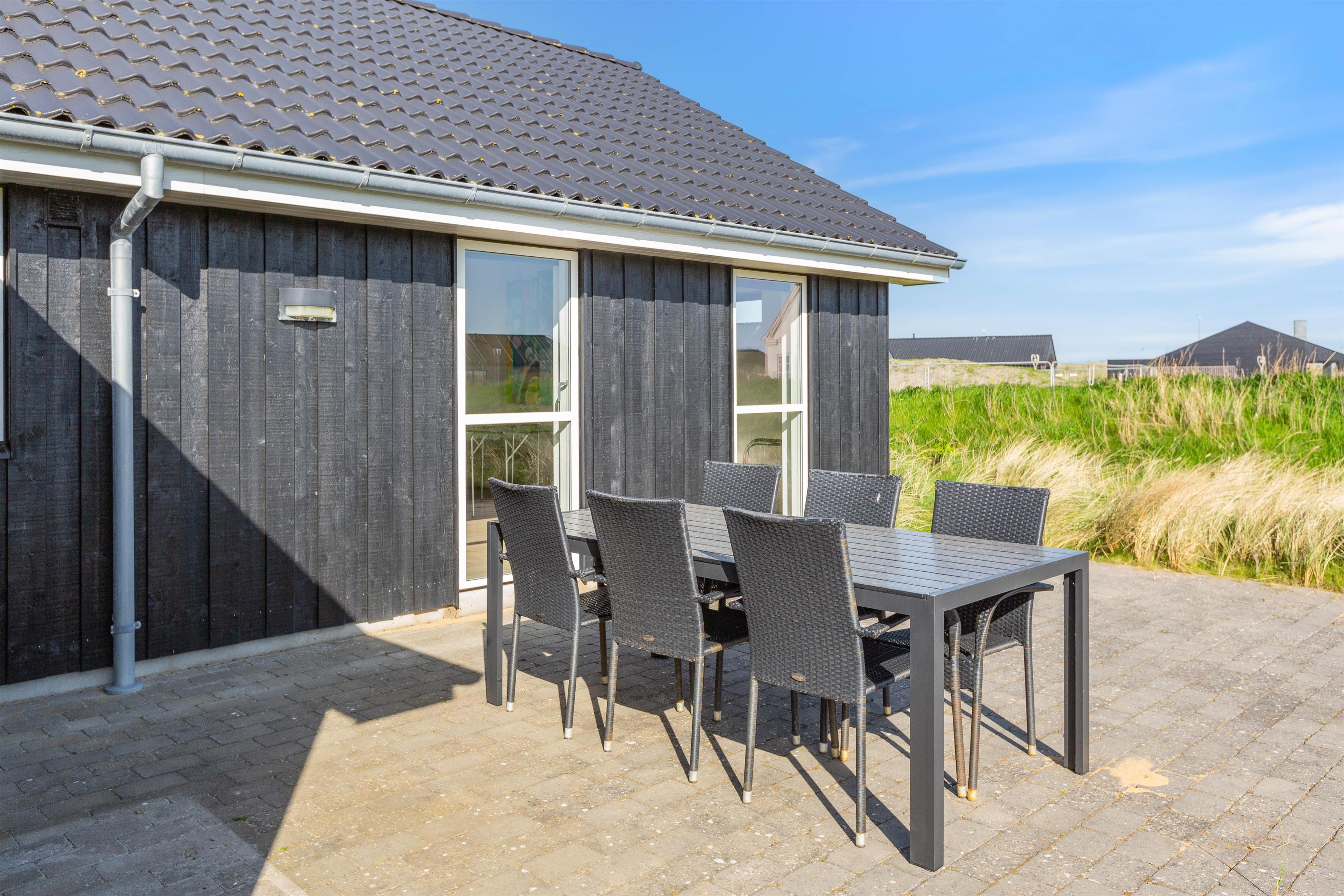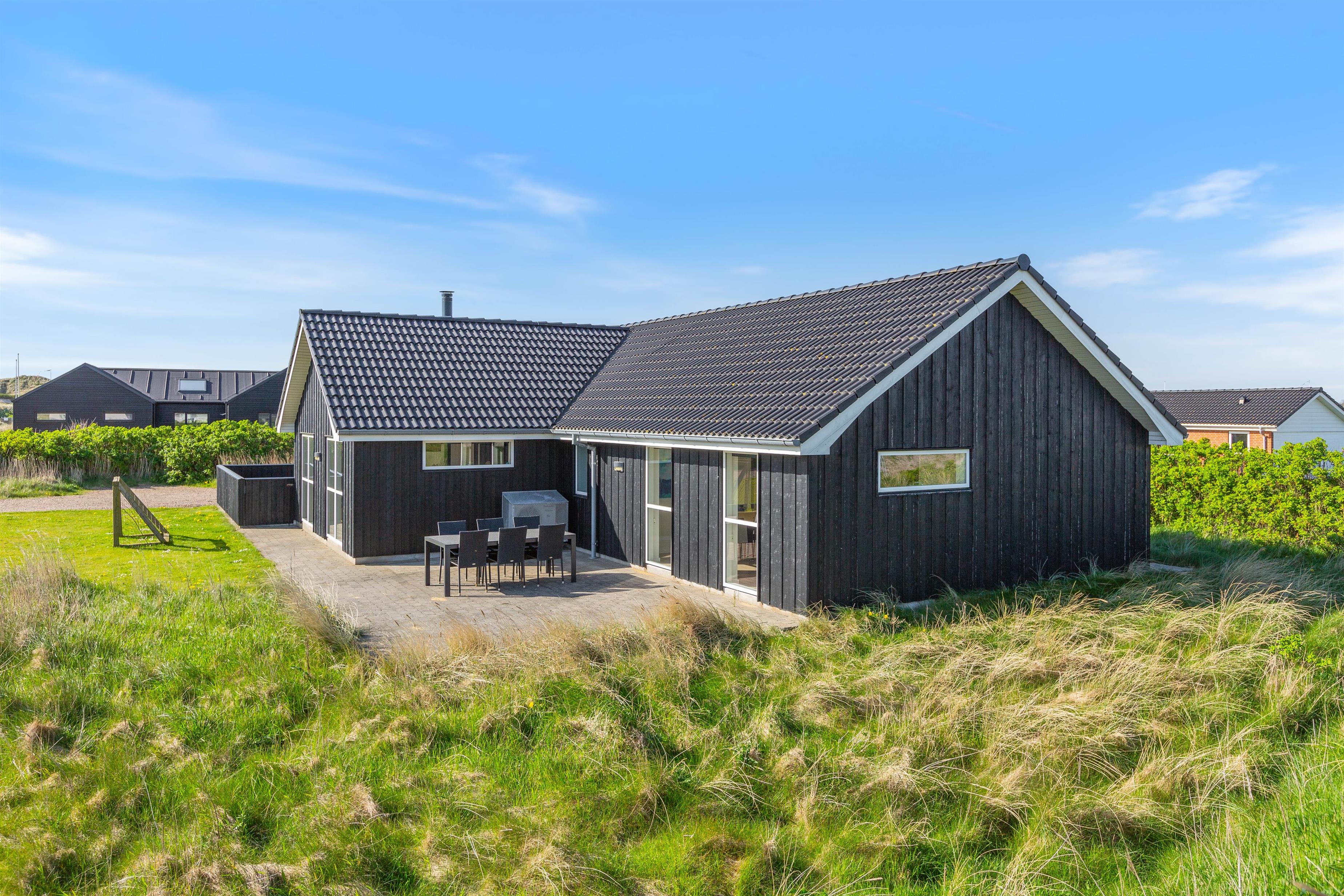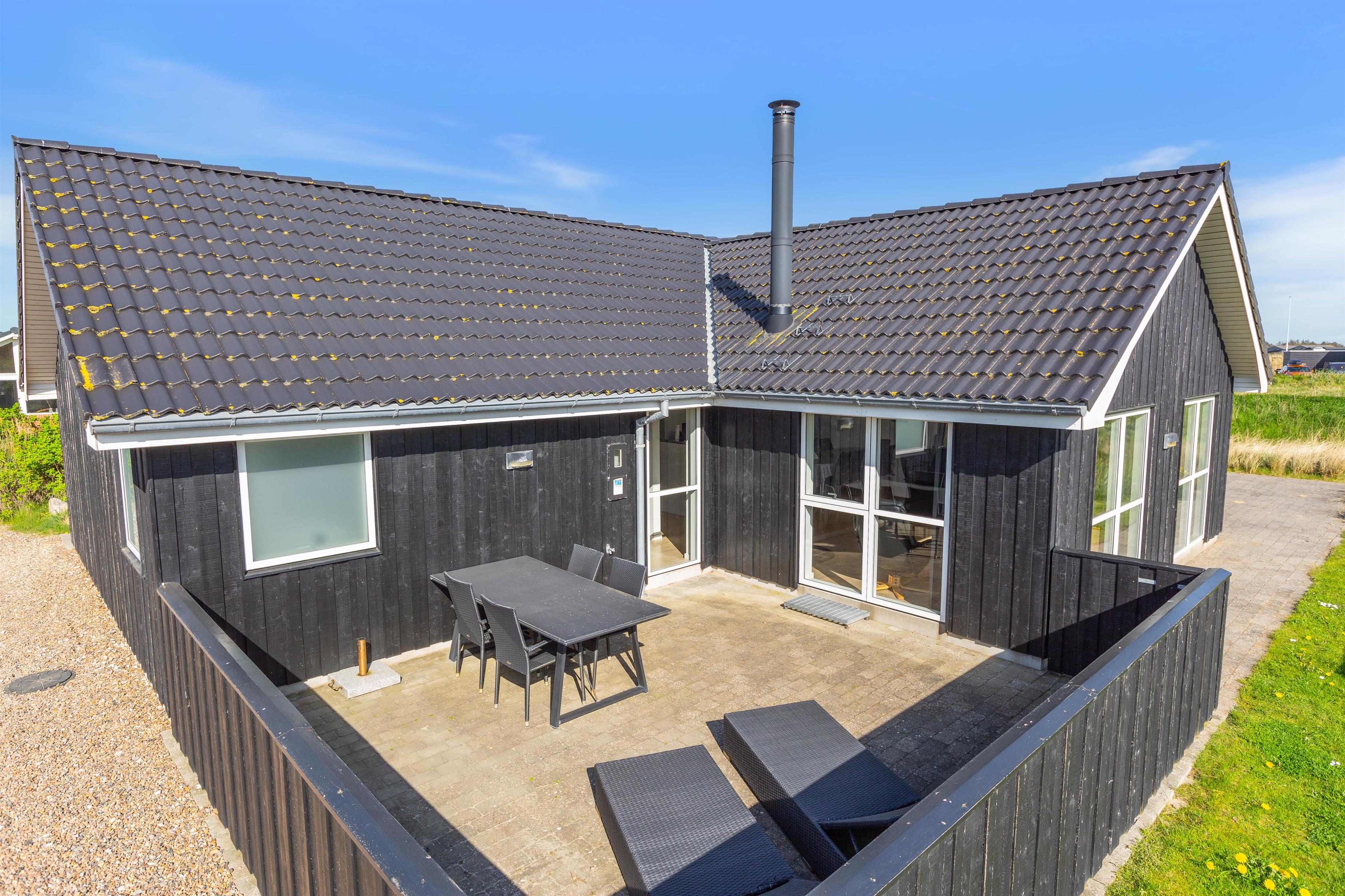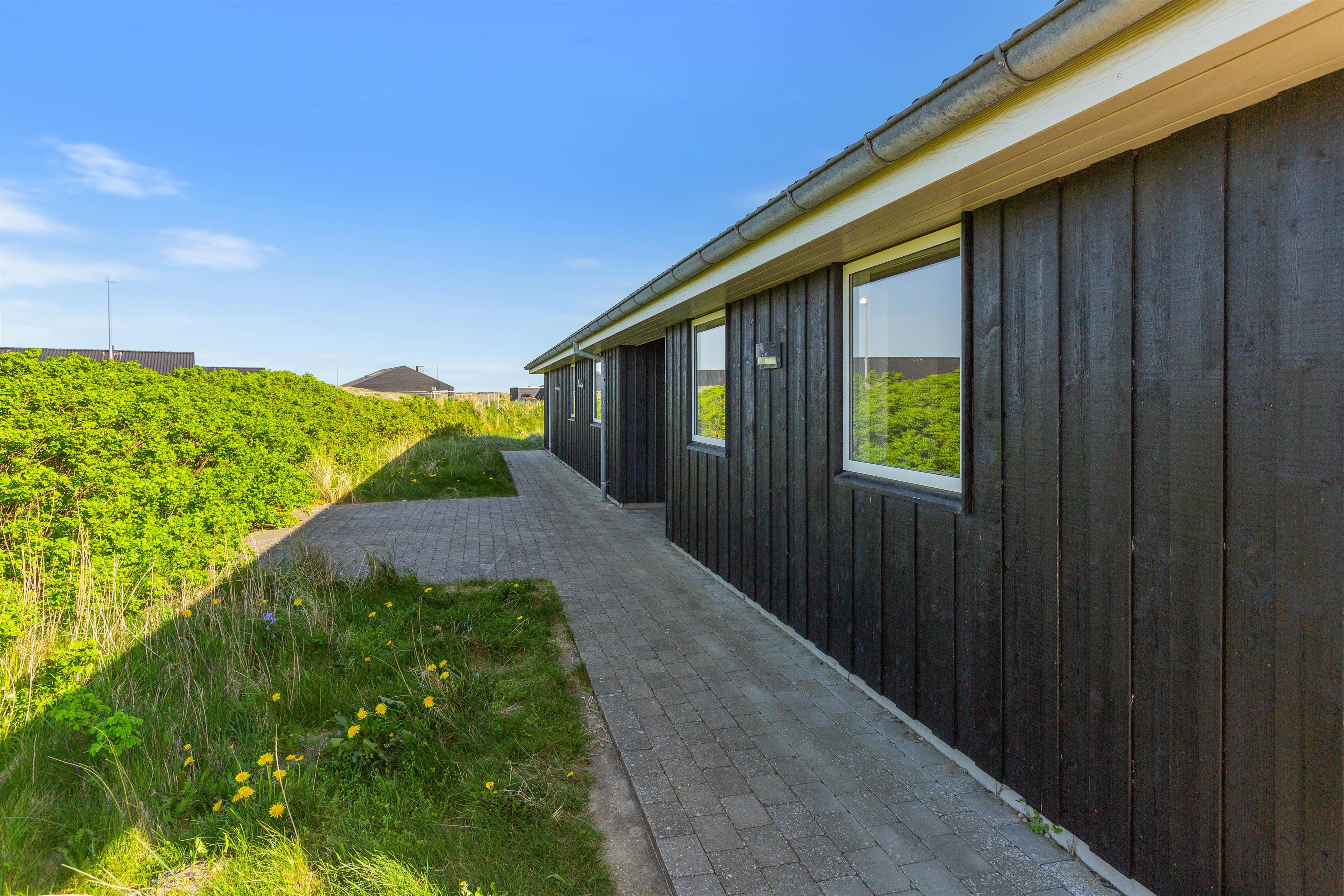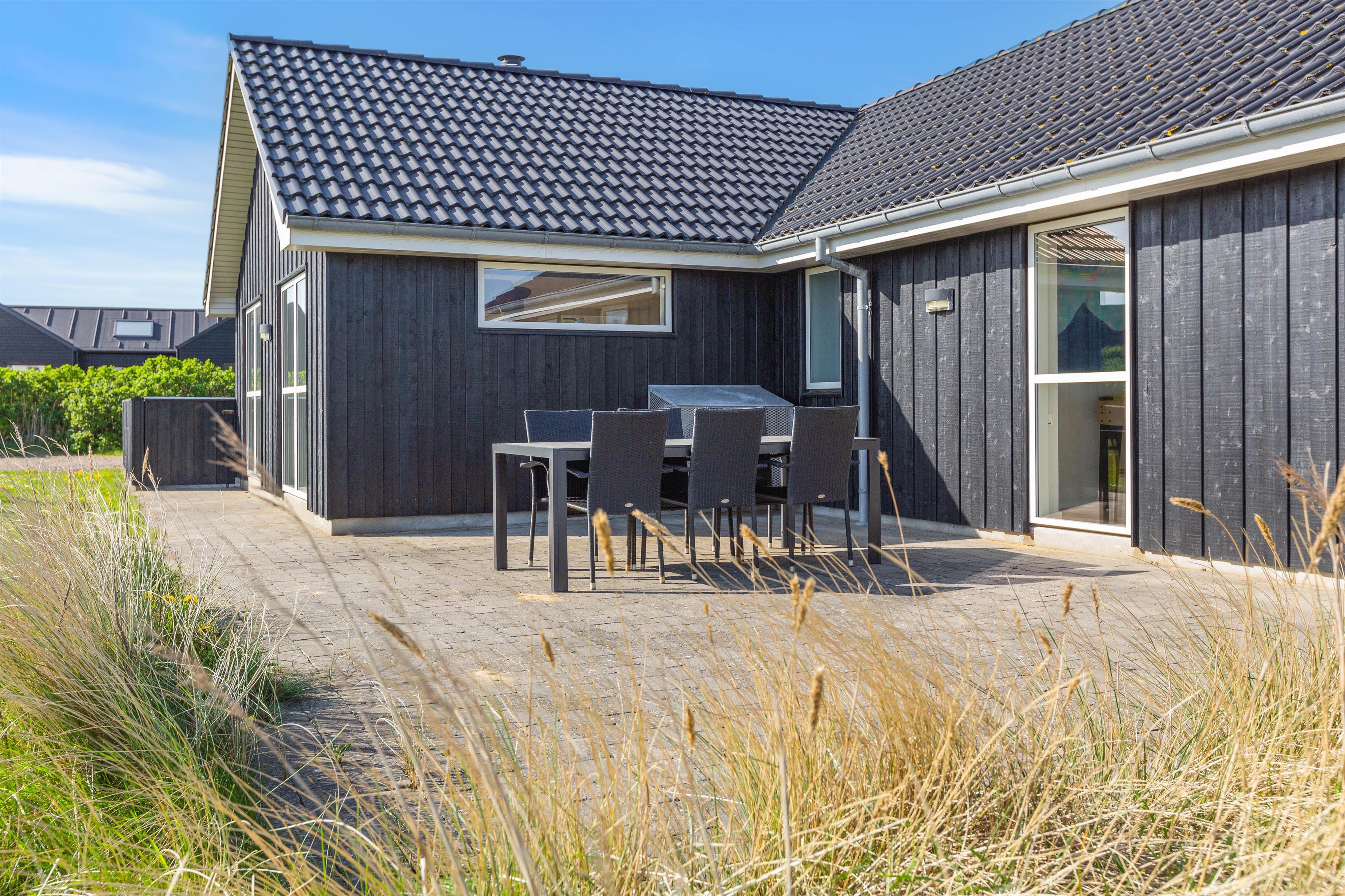 Feriehuset er placeret på en stor grund og med gode og afskærmende volde, så du ugeneret kan sidde udenfor. Der er et par fodboldmål, så børnene kan lege og spille bold, mens du slapper af på de skønne terrasser. Den ene terrasse er endda lukket, hvilket især er perfekt, hvis der er børn eller hund med på ferien.